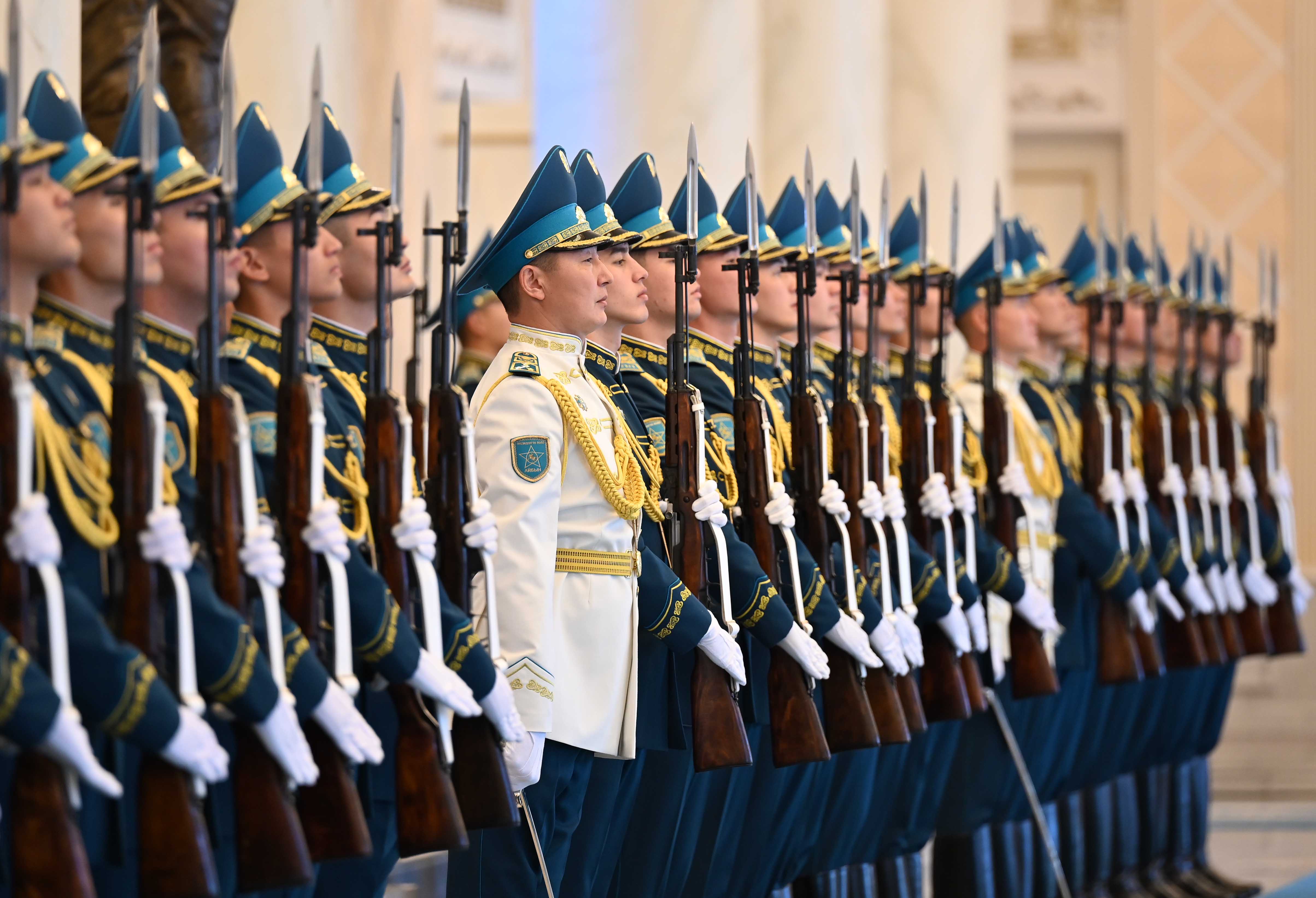 The Kazakh President and the German Chancellor introduced members of their delegations. The Head of the Honor Guard performed a welcome ceremony, followed by the national anthems of the two countries.