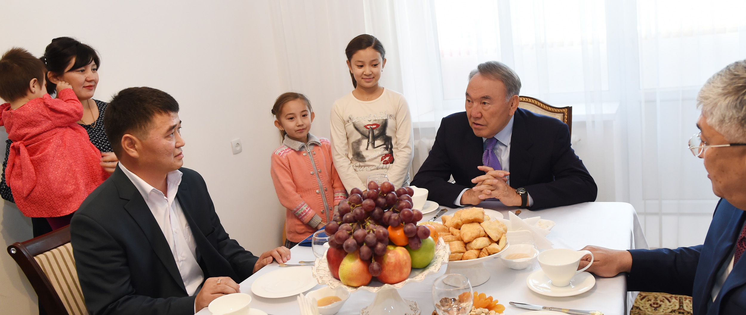 He also met with the residents of the houses. Kazakhstan’s President also visited the Demes family in their new apartment who are bringing up two children.
