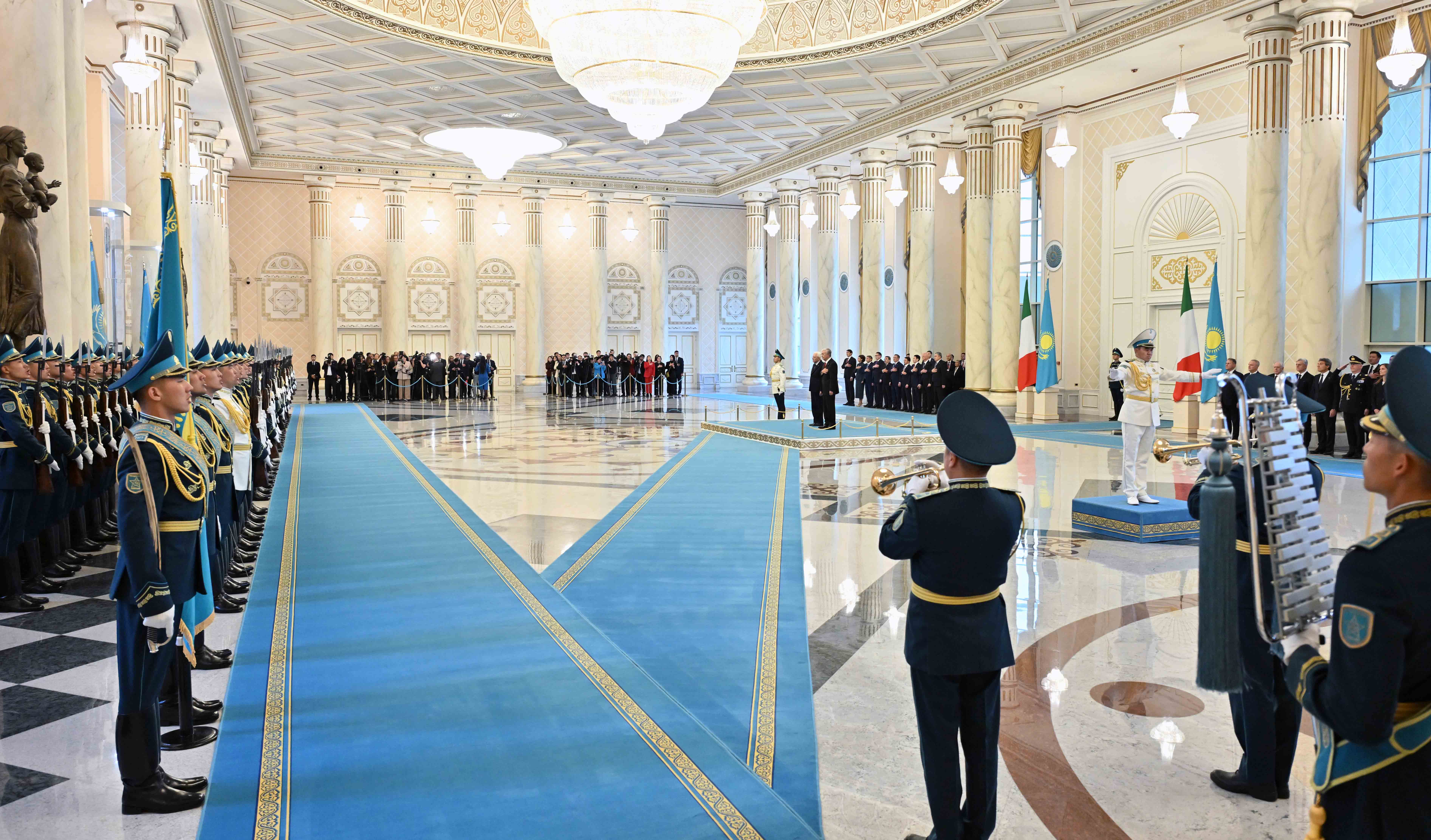 A ceremonial welcome was held at the Akorda residence for President of Italy Sergio Mattarella, who arrived in Astana on an official visit.