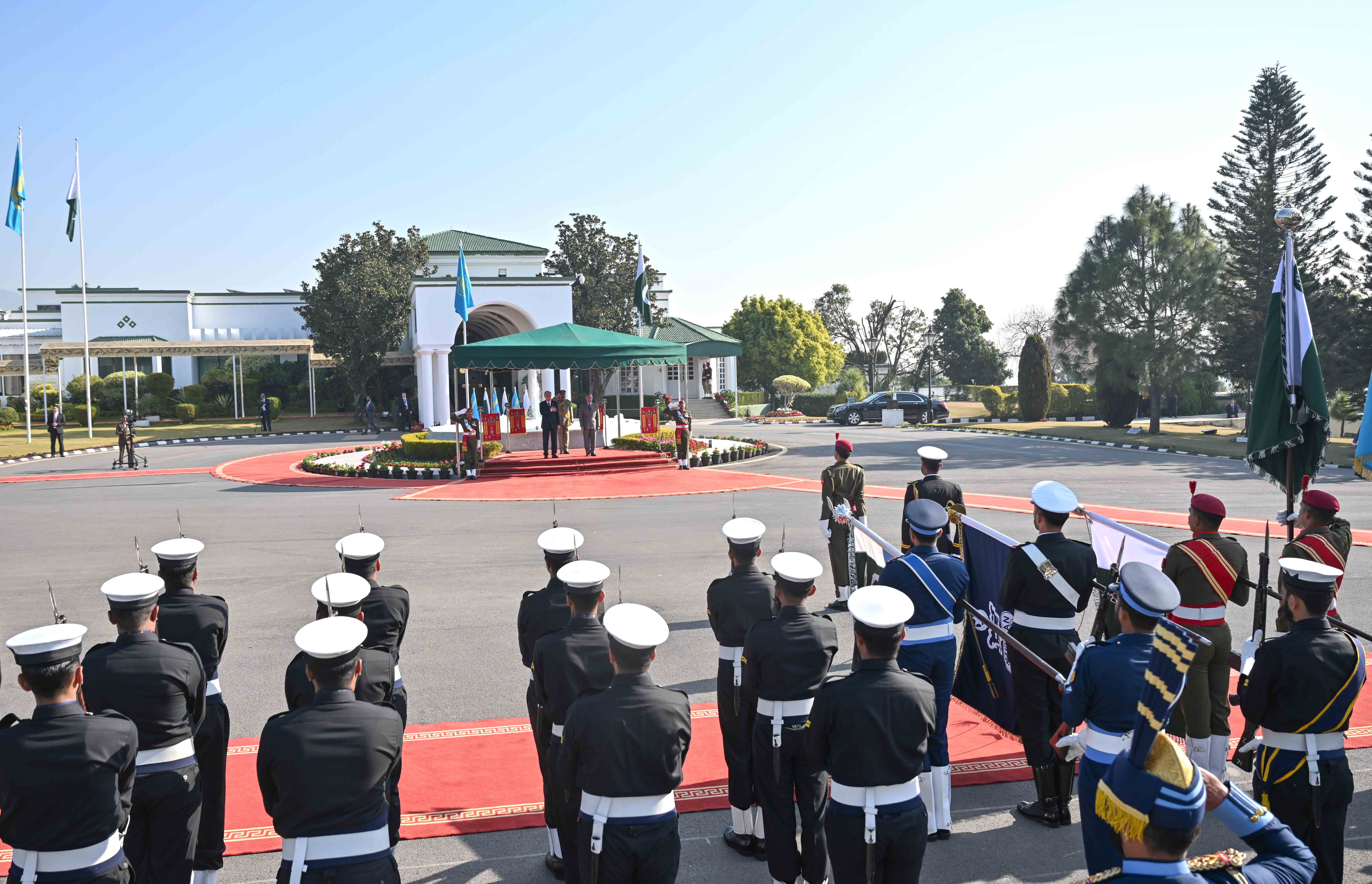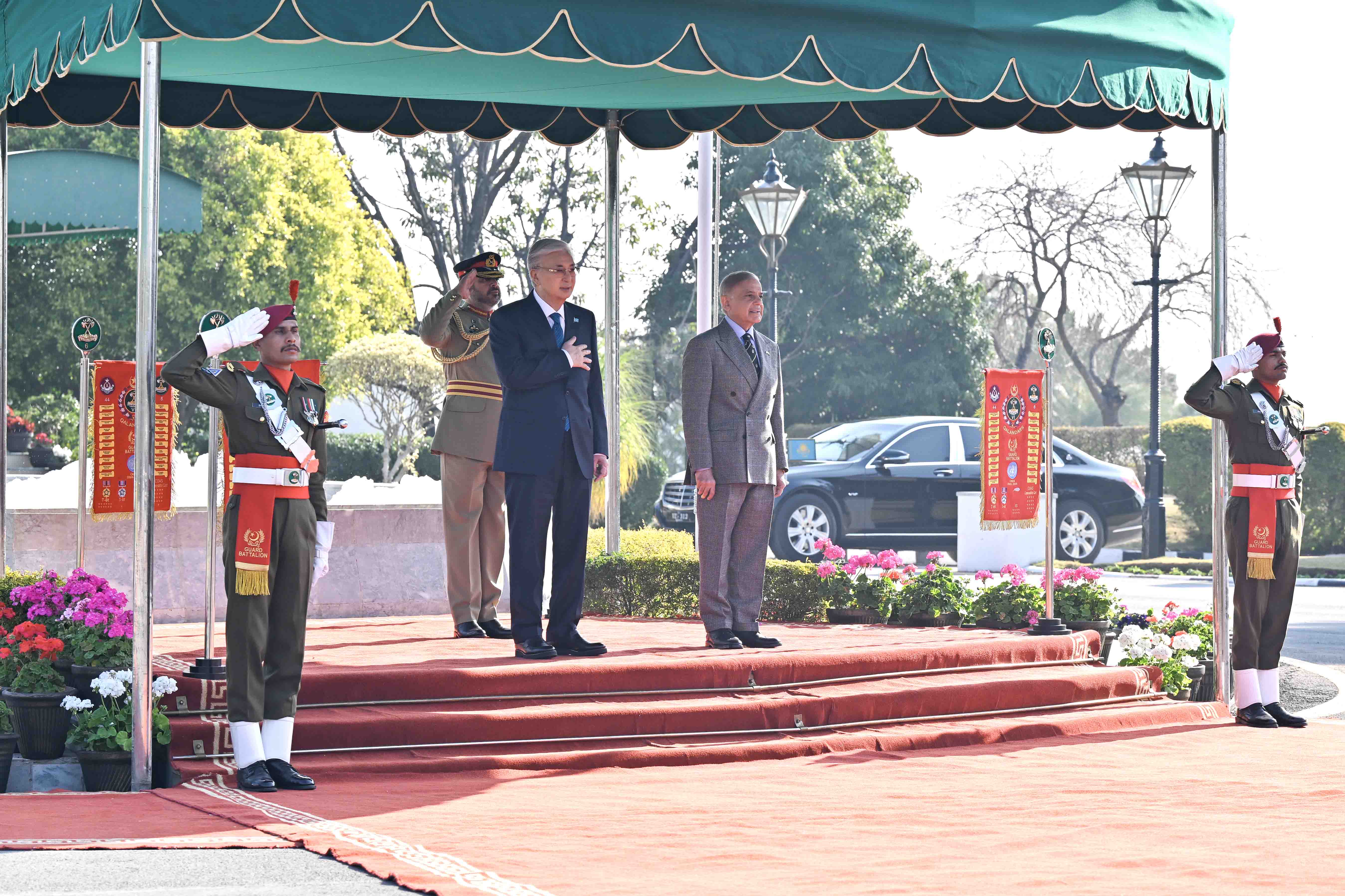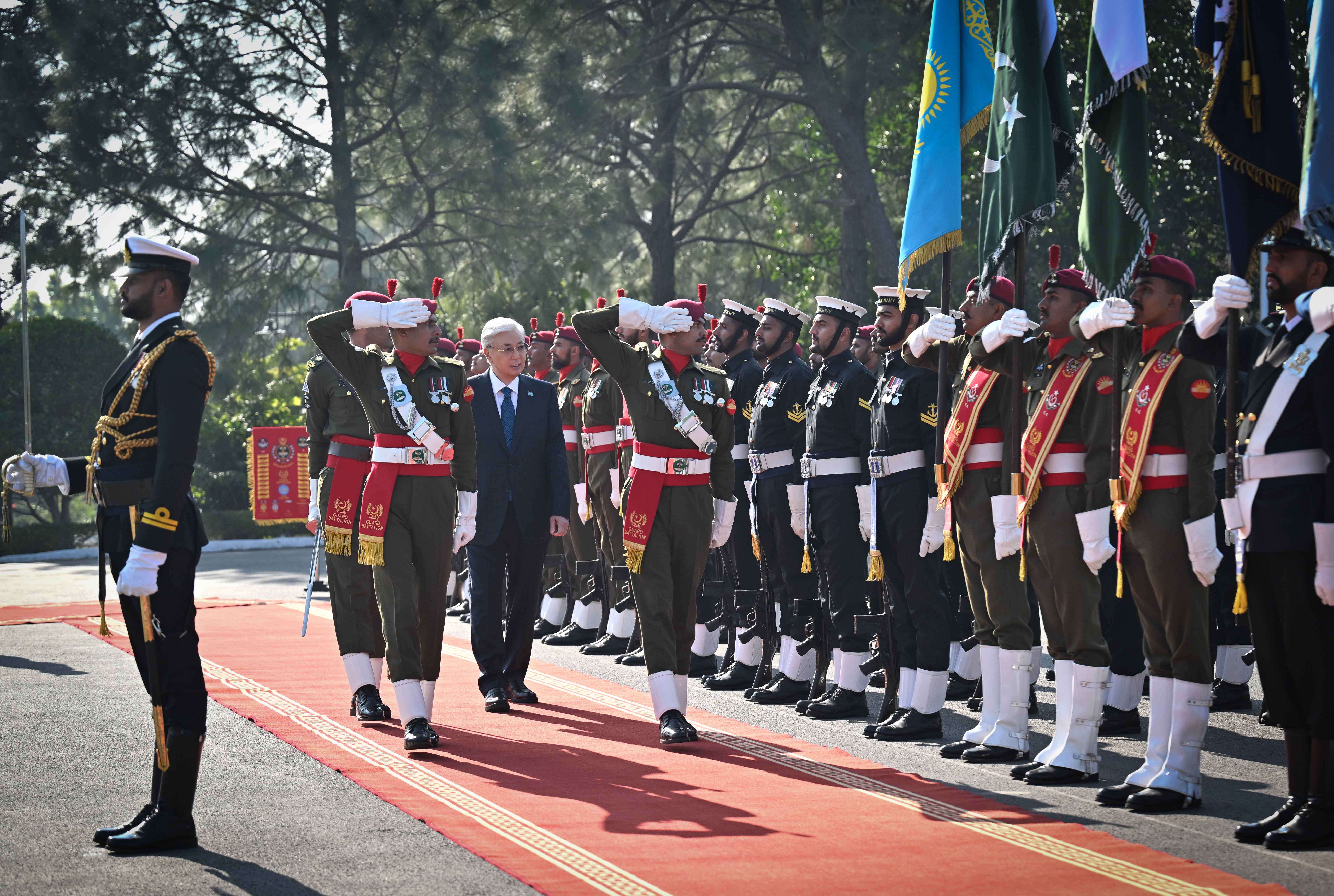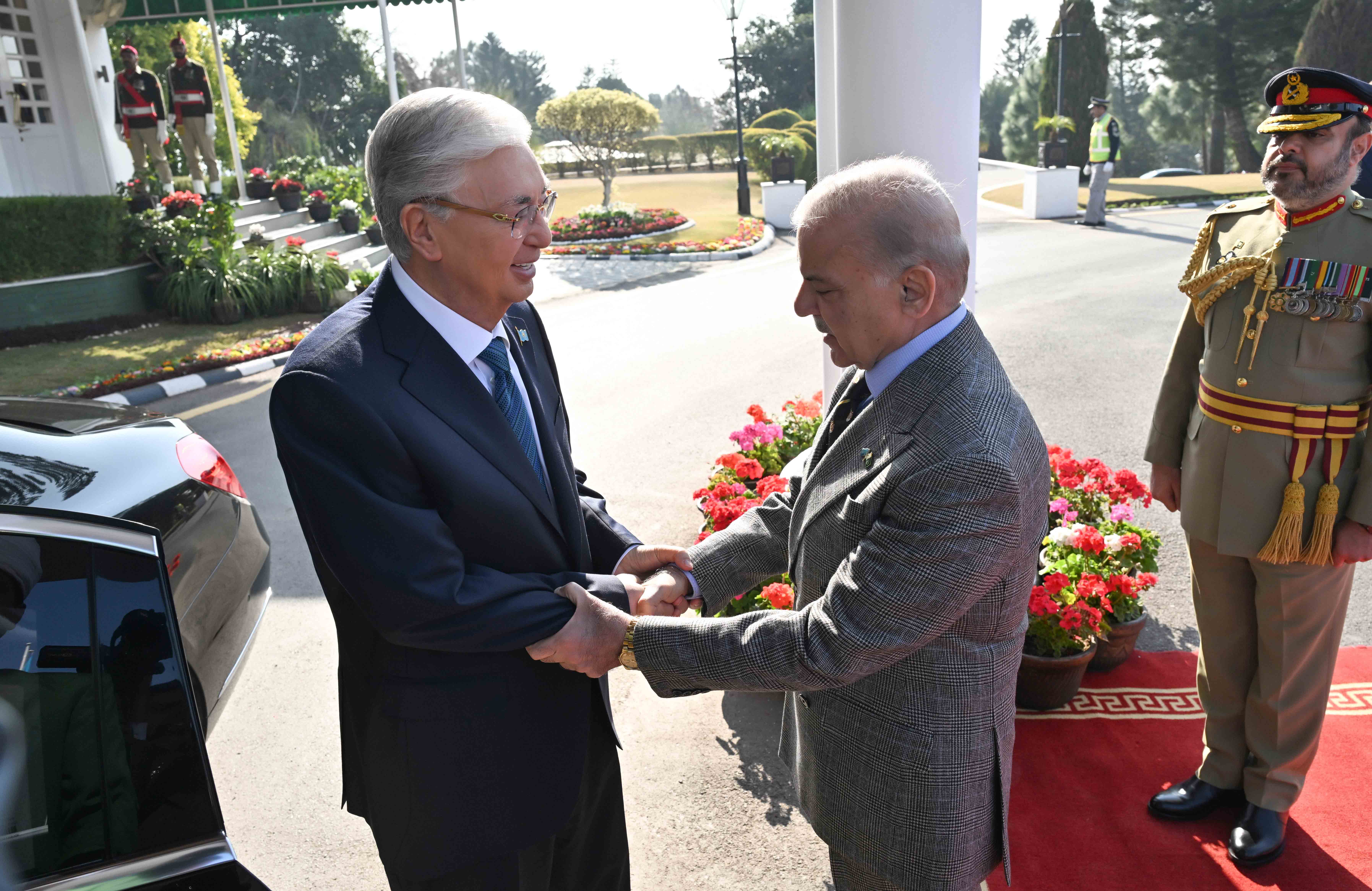 The meeting followed an official welcoming ceremony at the Prime Minister’s residence, where President Tokayev was received by Prime Minister Sharif. After the joint photo session, the national anthems of Kazakhstan and Pakistan were played, and the commander of the honor guard delivered a report. The two leaders then introduced members of their official delegations.