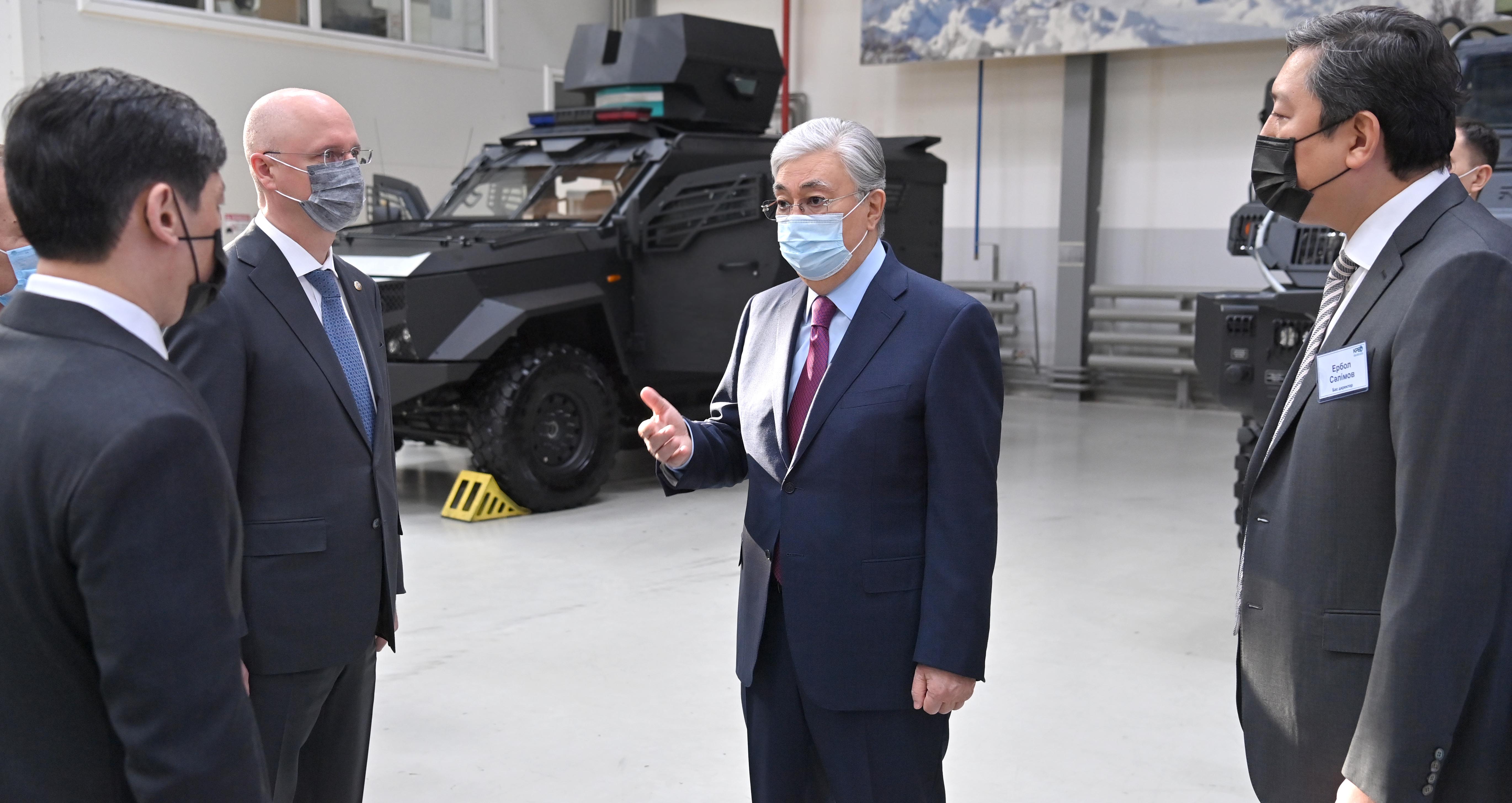 The President visited the plant producing and modernizing armored wheeled vehicles “Kazakhstan Paramount Engineering” LLP, based in Nur-Sultan.