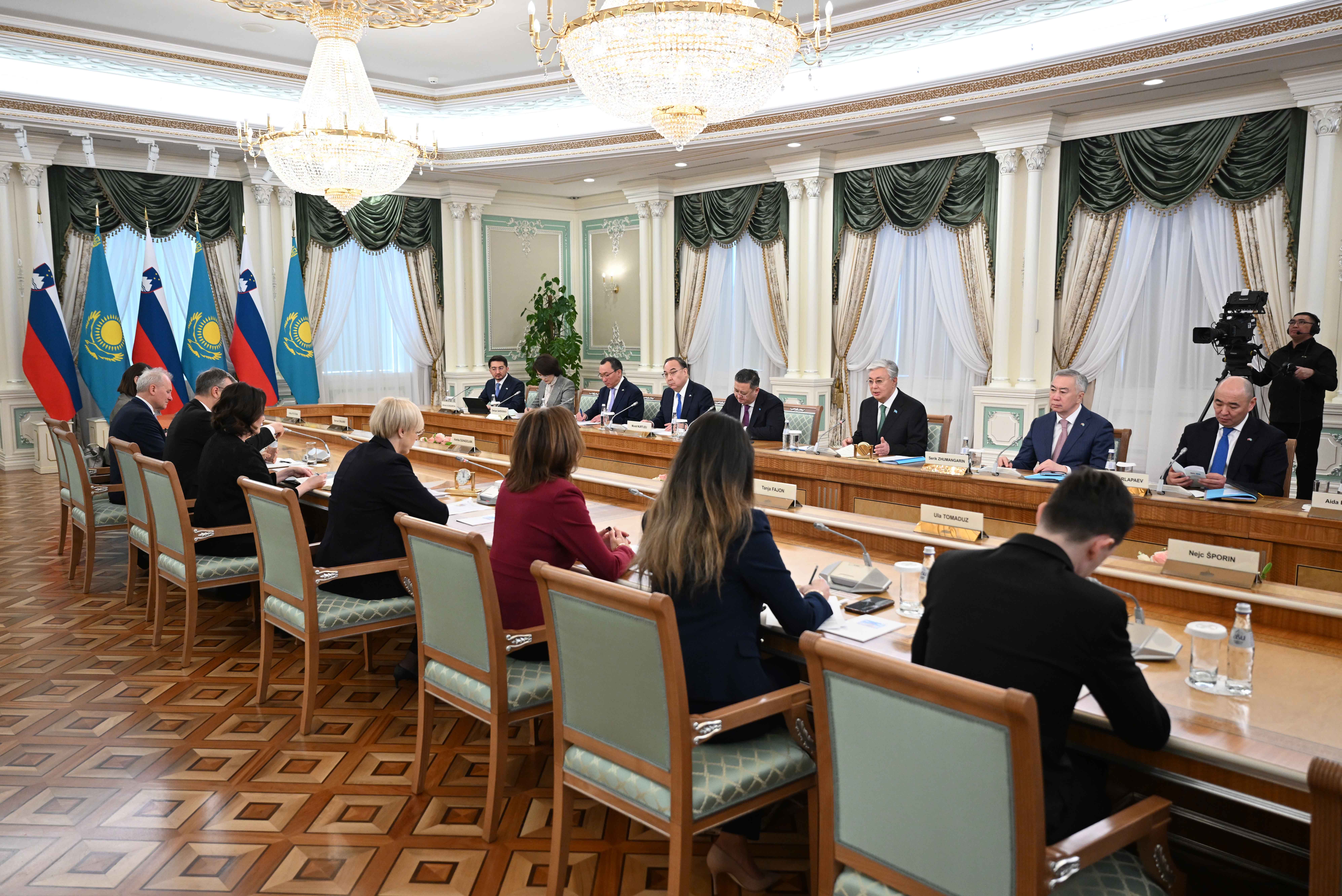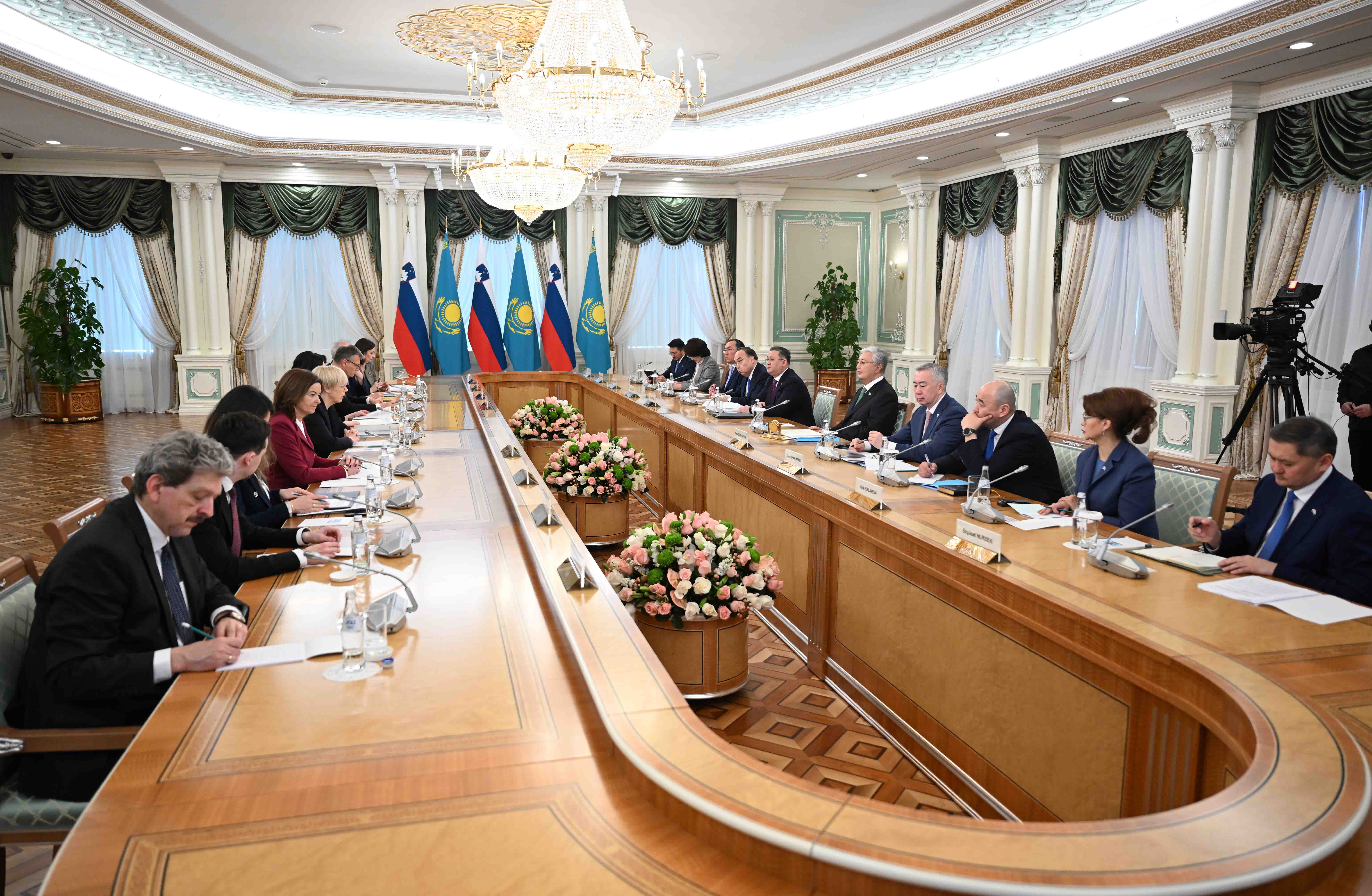 Kassym-Jomart Tokayev and Nataša Pirc Musar conducted negotiations in an expanded format with the participation of official delegations from both countries.
