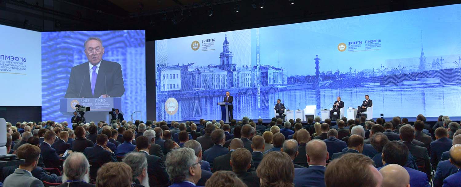 Петербург ​экономикалық форумына Еуропаның ірі  компанияларының көптеген басшыларының және Еуропалық комиссия төрағасы Жан-Клод Юнкер мырзаның қатысуы ЕО мен ЕАЭО арасындағы тікелей диалогтың басталуын жеделдетеді деп үміттенемін. Еуразиялық экономикалық одақ пен Ұлы Жібек жолының Экономикалық белдеуі арасындағы экономикалық өсімнің ортақ бағыттарын қалыптастырудың перспективалары ғаламат, – деді Мемлекет басшысы.