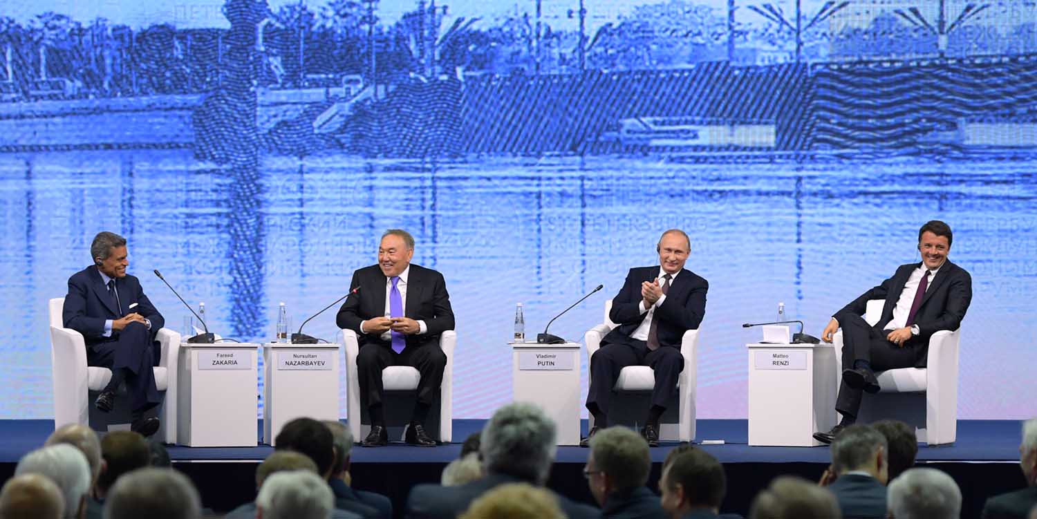«Жаңа экономикалық ахуал қарсаңында» деген тақырыппен өткен пленарлық мәжіліске Ресей Президенті В.Путин және Италия Премьер-Министрі Р.Ренци қатысты.