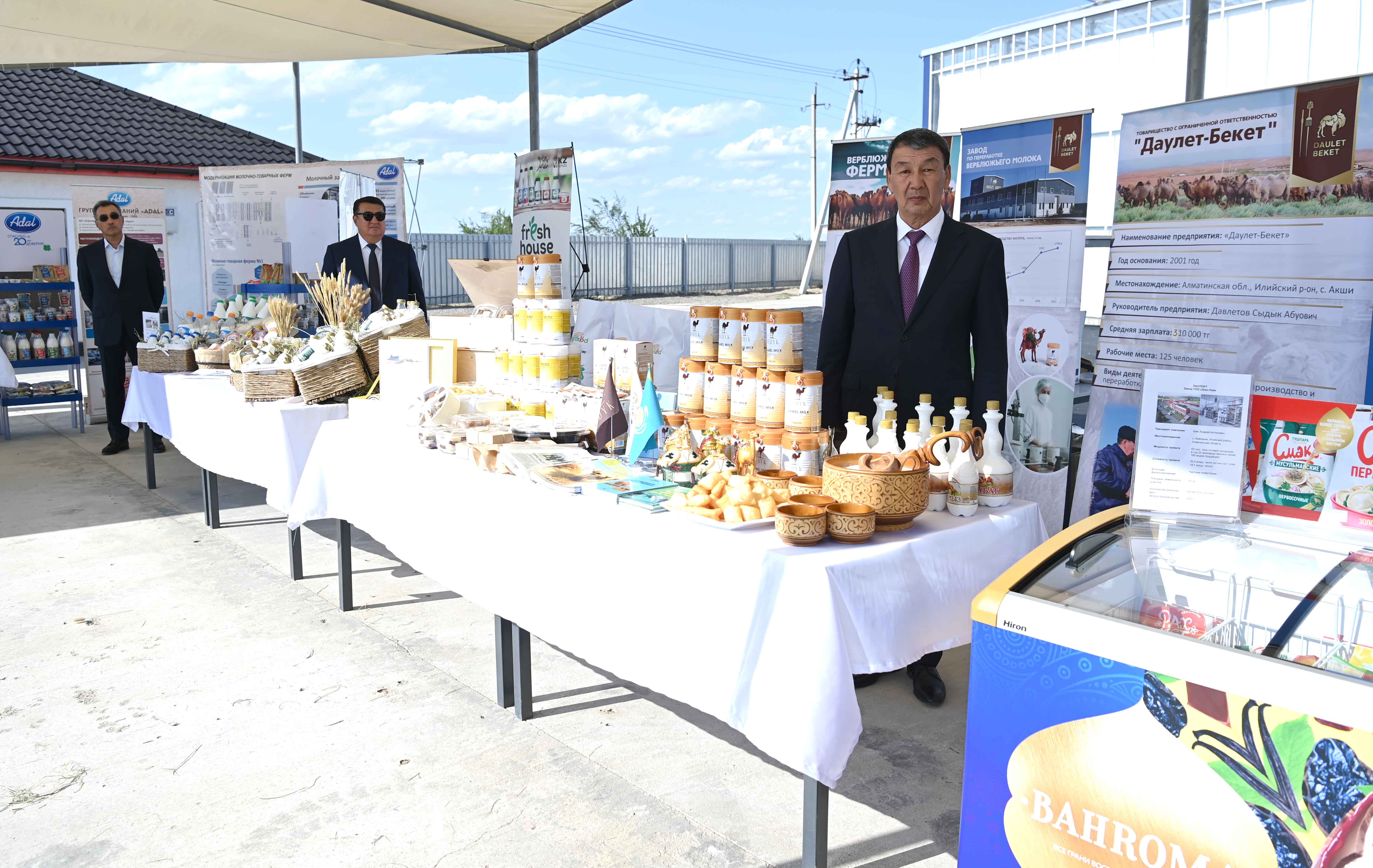 Мемлекет басшысы Алматы облысына жұмыс сапары аясында ауыл шаруашылығы тауарлары мен құрылыс материалдарын өндірушілердің көрмесіне барды.