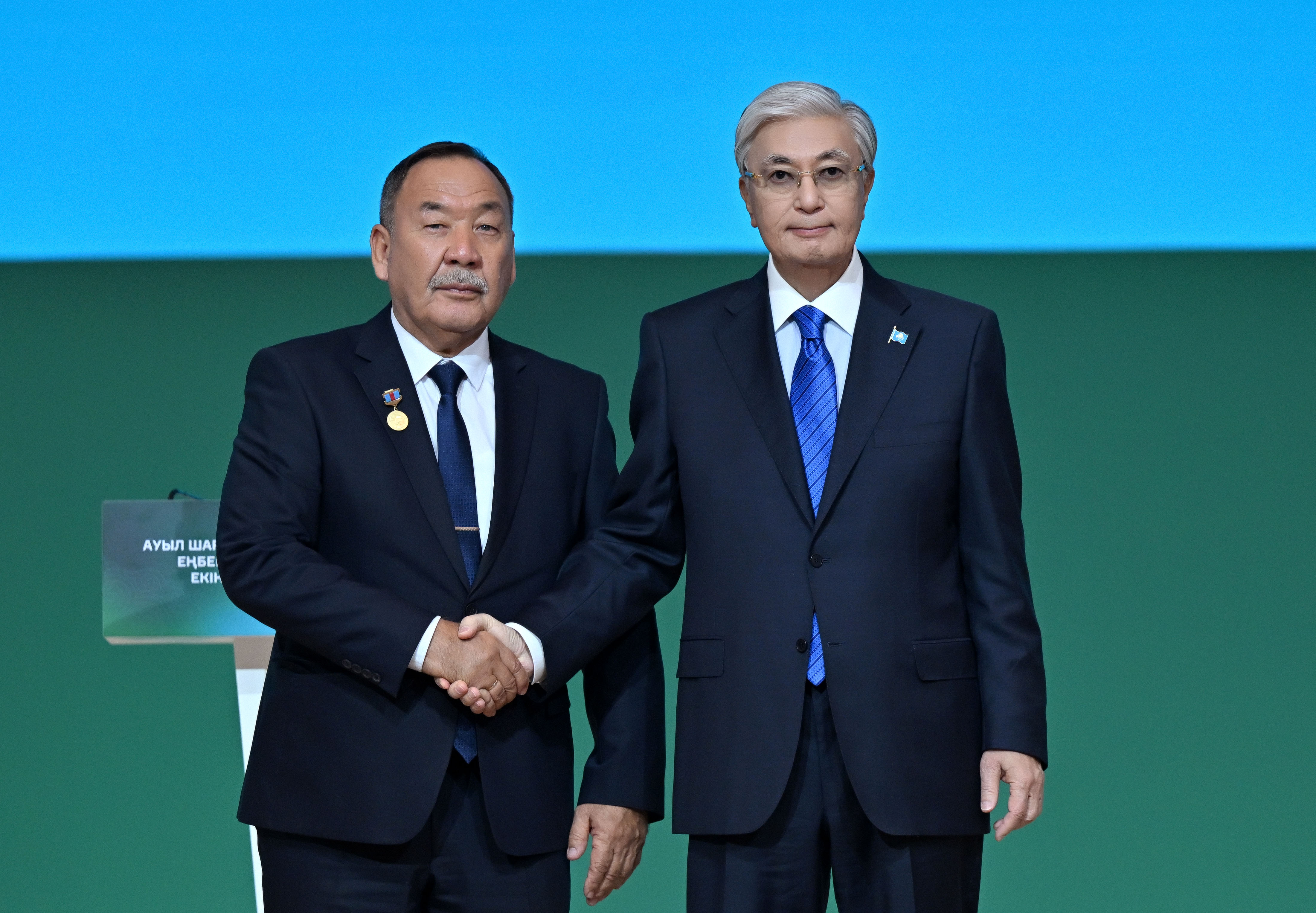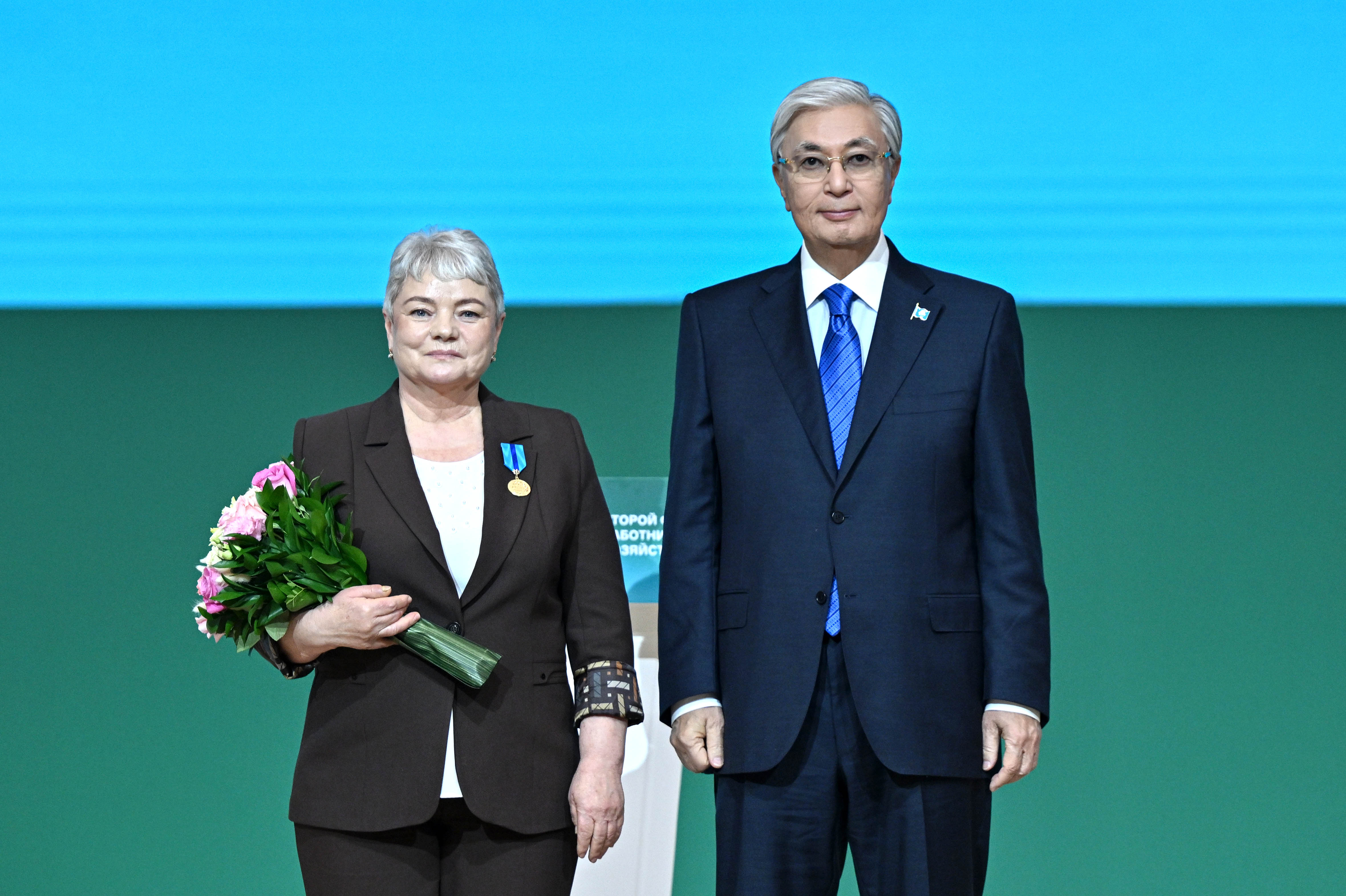 Ауыл шаруашылығы еңбеккерлерінің екінші форумында Жұмысшы мамандықтары жылына орай еңбек адамдарына айрықша құрмет көрсетілді. Мемлекет басшысының Жарлығымен еліміздің агроөнеркәсіп саласын дамытудағы аса үздік жетістіктері үшін «Степное» жауапкершілігі шектеулі серіктестігінің (Ақтөбе облысы) директоры Аманғос Сансызбайұлы Төлеуовке жоғары дәрежелі ерекшелік белгісі – «Қазақстанның Еңбек Ері» атағы берілді. Президент Қасым-Жомарт Тоқаевтың қолынан ауыл шаруашылығы саласының 30 еңбеккері мемлекеттік награда алды Атап айтқанда, бір адам – «Парасат» орденінің кавалері, саланың 6 өкілі «Құрмет» орденінің иегері атанды. II дәрежелі «Еңбек даңқы» орденімен 1 азамат, III дәрежелі «Еңбек даңқы» орденімен 10 адам, «Ерен еңбегі үшін» медалімен 6 еңбеккер марапатталды. Сондай-ақ бүгінгі іс-шарада «Қазақстанның аграрлық саласының еңбек сіңірген қайраткері» құрметті атағы ауыл шаруашылығы саласында озат атанған төрт азаматқа алғаш рет тапсырылды.