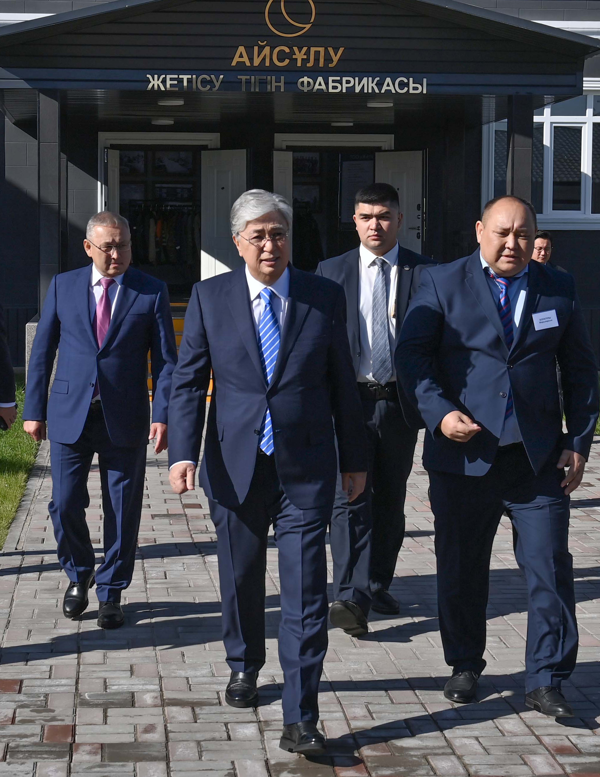 Мемлекет басшысы Талдықорған қаласында биыл маусым айында ашылған «Айсұлу» Жетісу тігін фабрикасы» ЖШС жұмысымен танысты.