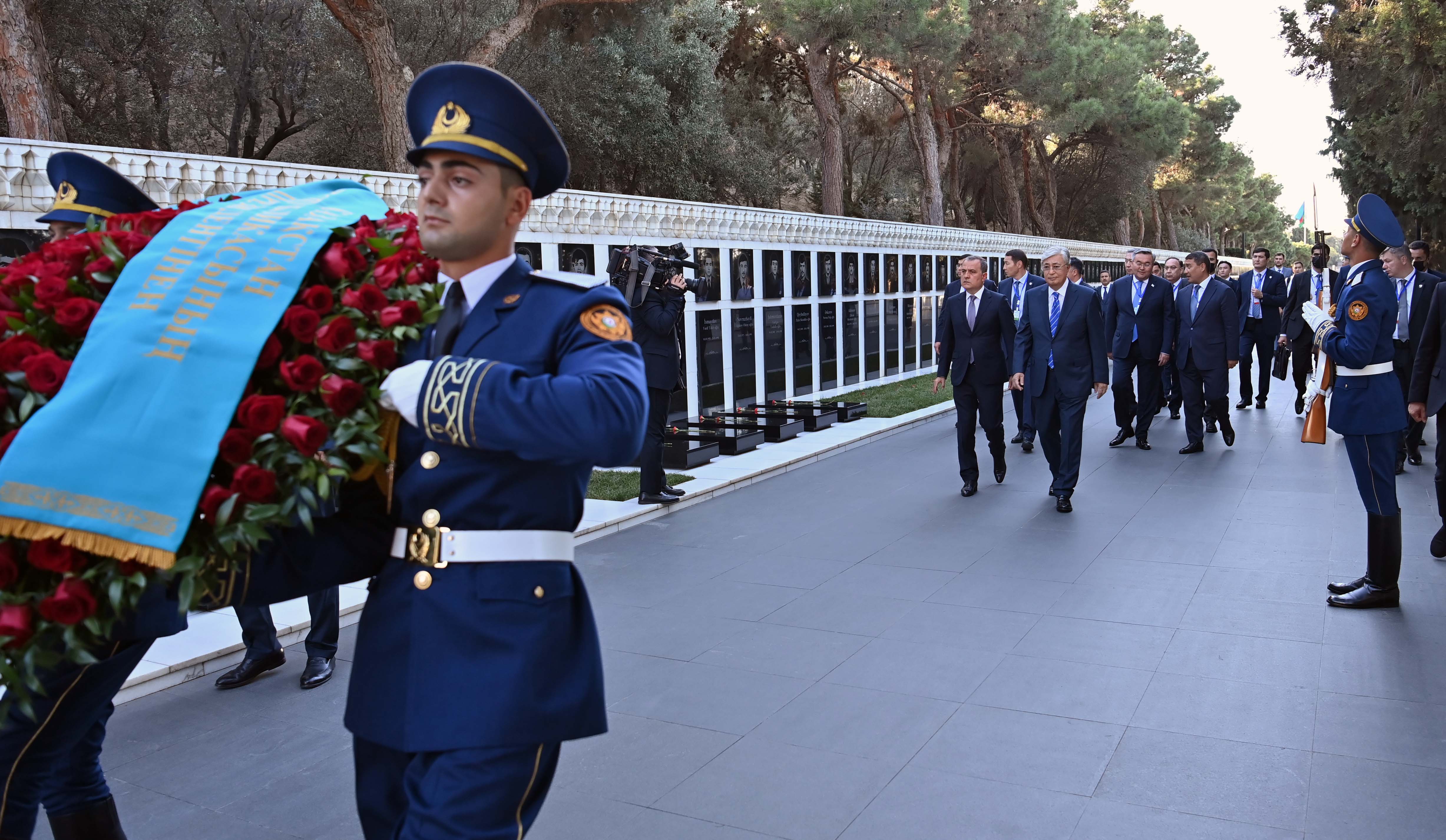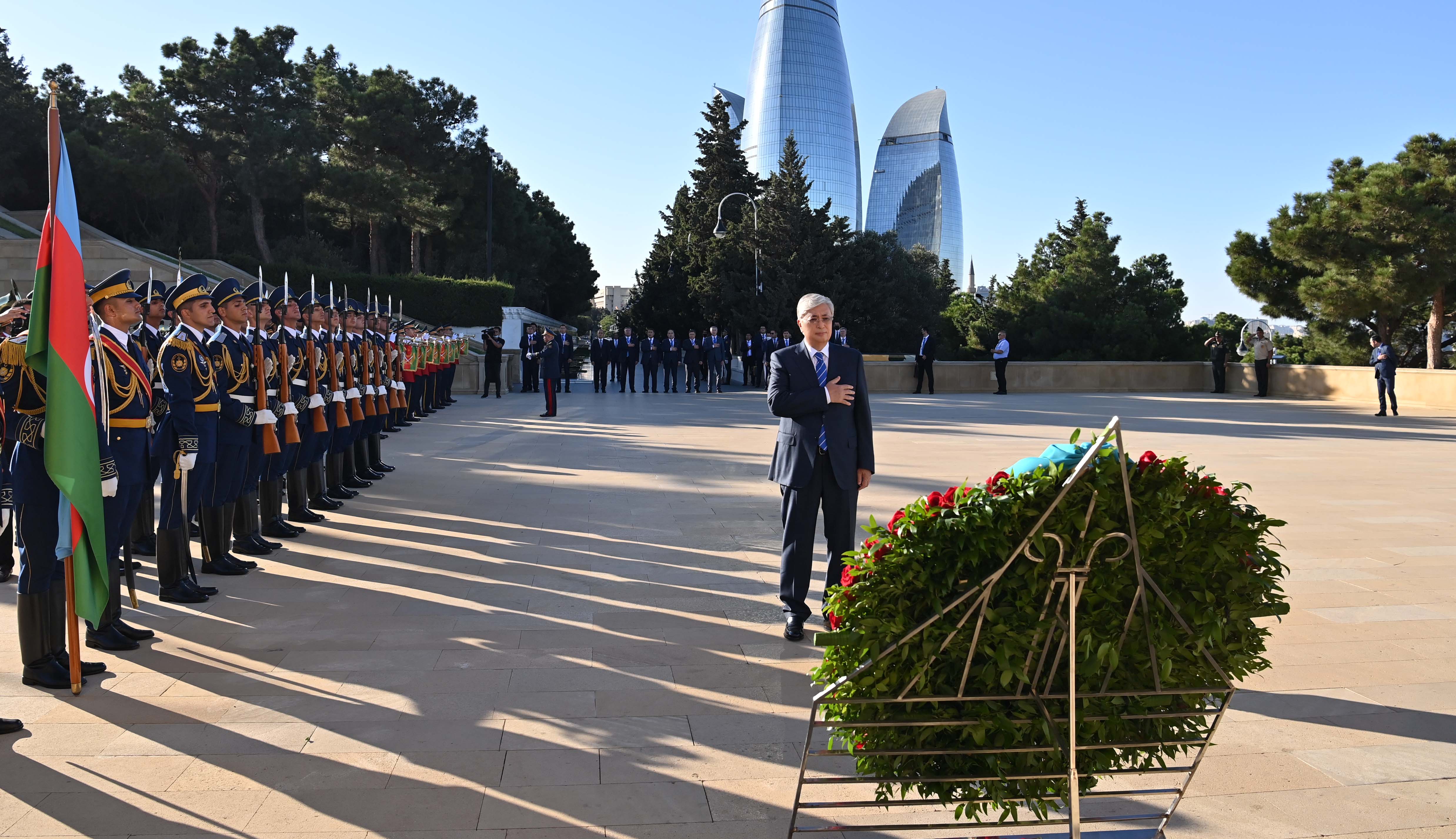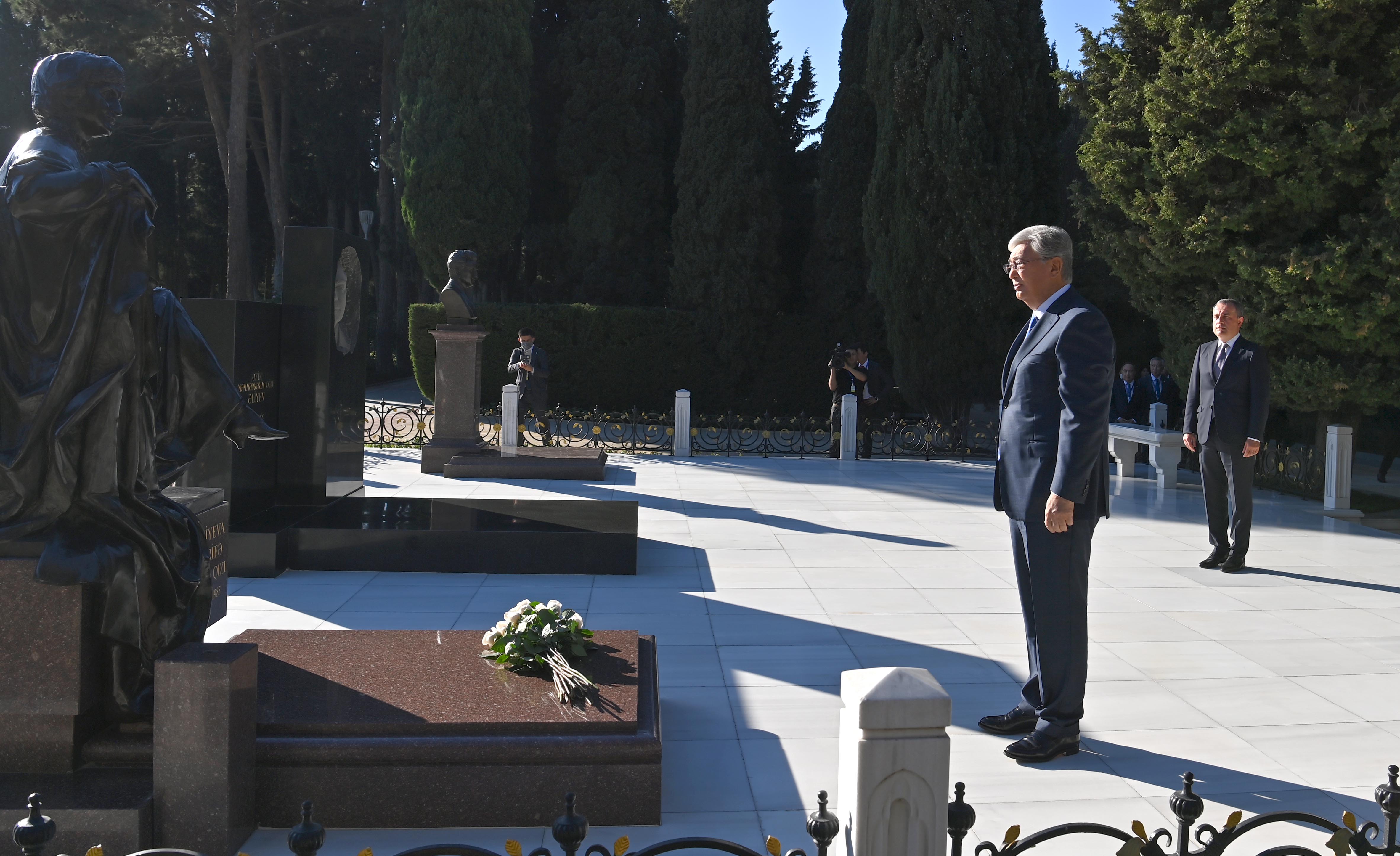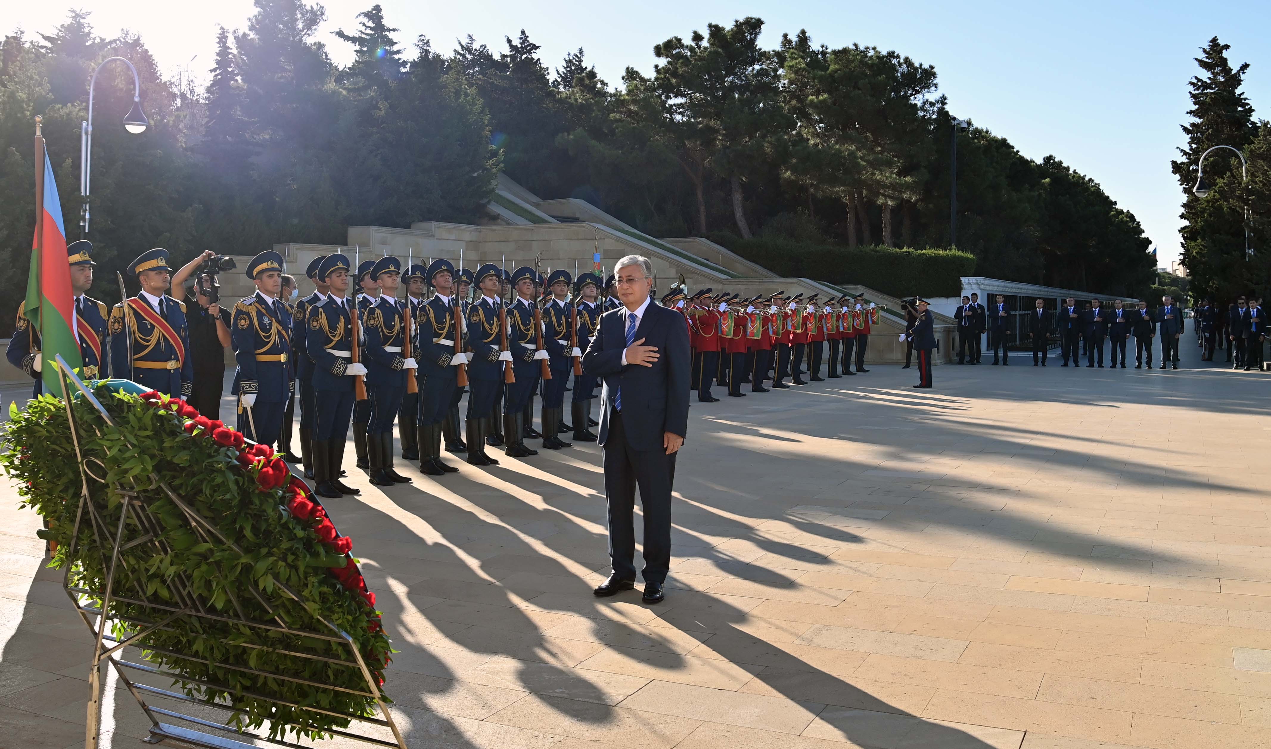 Мемлекет басшысы Әзербайжанға ресми сапары кезінде осы елдің жалпыұлттық көшбасшысы Гейдар Әлиев пен оның зайыбы Зарифа Әлиеваның бейітіне гүл шоғын қою рәсіміне қатысты. Қазақстан Президенті бұдан кейін Әзербайжанның азаттығы мен территория тұтастығы үшін қаза тапқан жауынгерлер жерленген Шаһиттер аллеясындағы мәңгілік алауға да гүл шоғын қойды.
