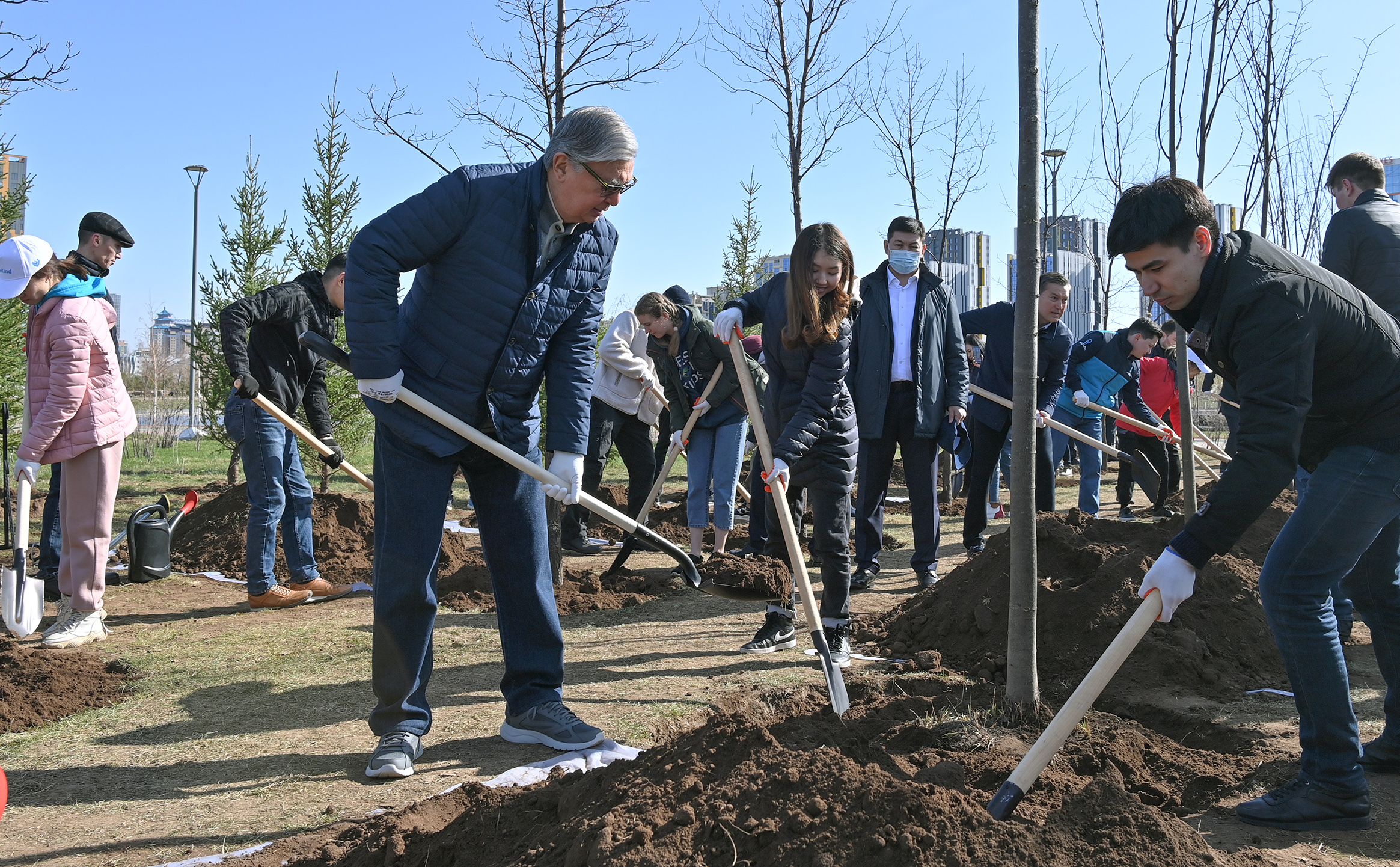 Бүгін Мемлекет басшысы «Бірге – таза Қазақстан» республикалық экологиялық акциясының аясында Ботаникалық бақта көшет отырғызып, қалалық сенбілікке қатысты.