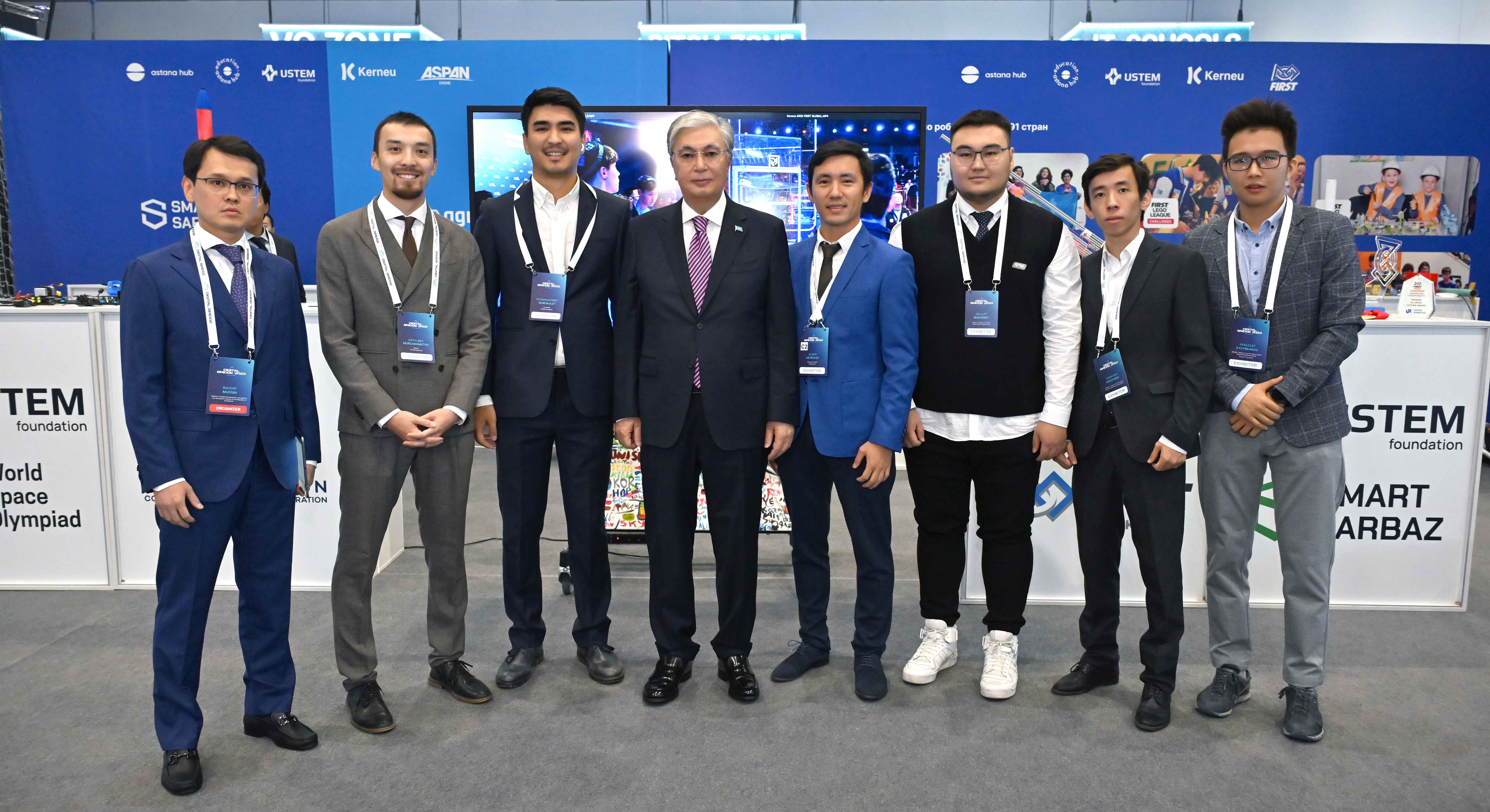 Роботты техника аймағында Мемлекет басшысы көптеген жарыстарда жеңімпаз атанған роботты техникадан Қазақстан құрамасының мүшелерімен әңгімелесті және Ustem Foundation, Alem School, MakerSpace жобаларымен танысты
