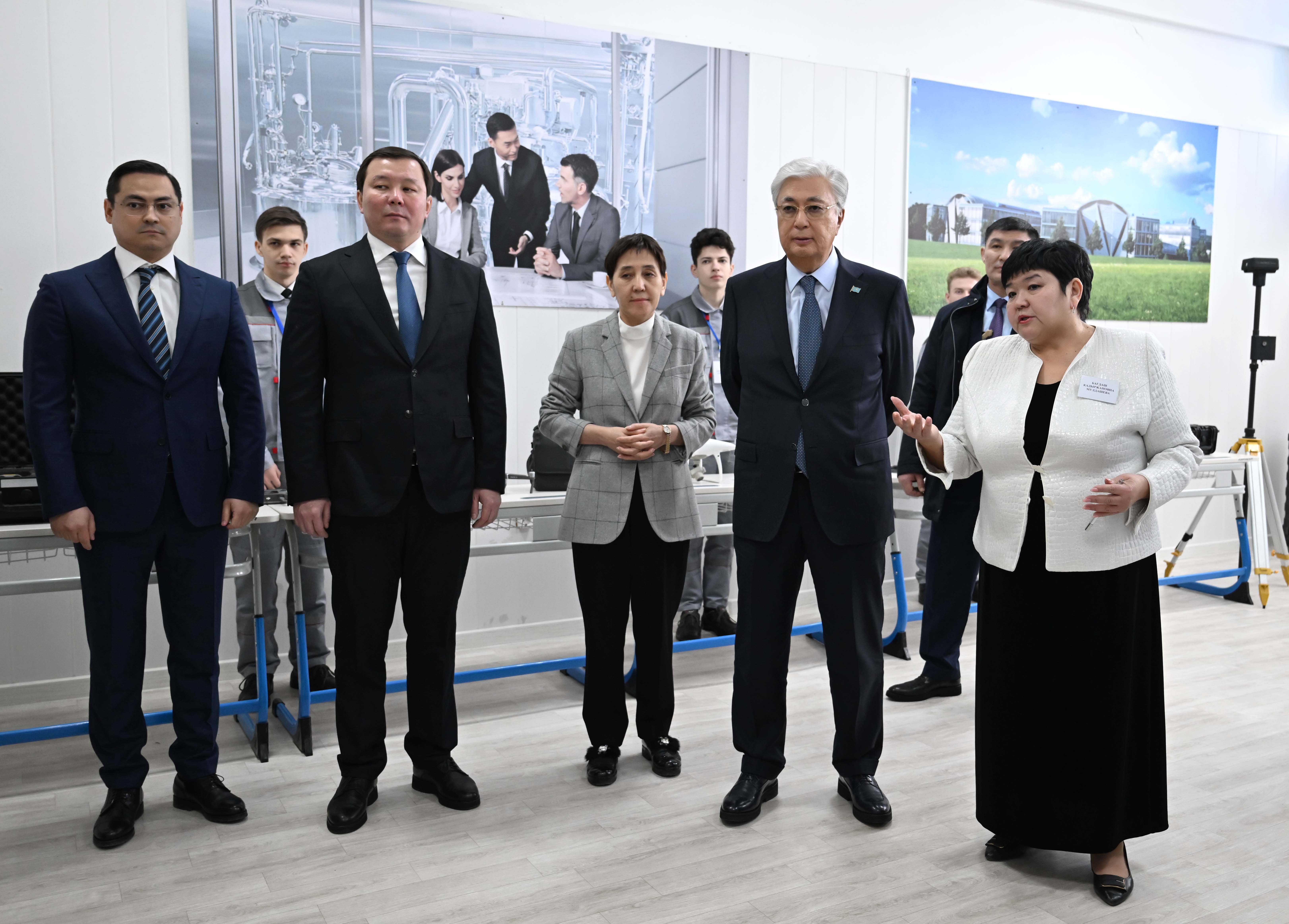 Оқу орнының директоры Бағдашжан Молдашева Мемлекет басшысына білім беру үдерісінде қолданылатын озық технологиялар жөнінде мәлімет берді. Атап айтқанда, колледжде теориялық білімді тәжірибемен ұштастыратын дуальды оқыту жүйесі енгізілген. Студенттер колледж аумағындағы оқу-шахта полигонында өндірістік тәжірибеден өтіп, техникамен жұмыс істеудің күрделі әдіс-тәсілдерін меңгереді. Сондай-ақ жаттықтырушы-симуляторлар арқылы шахтадағы жағдайға барынша ұқсас ортада жұмыс дағдыларын үйренеді.