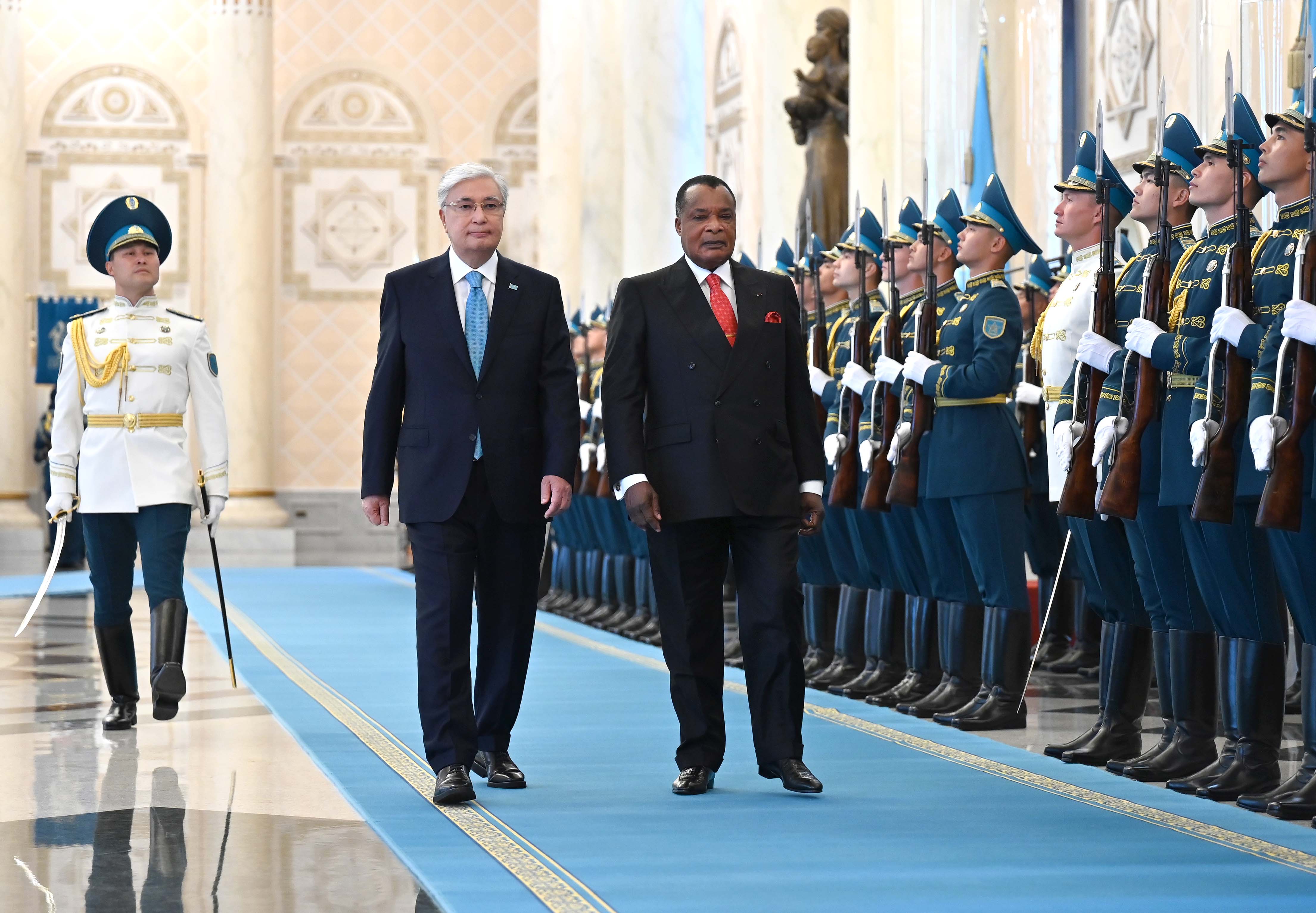 «Ақорда» резиденциясында Қазақстанға ресми сапармен келген Конго Республикасының Президенті Дени Сассу-Нгессоны салтанатты қарсы алу рәсімі өтті.