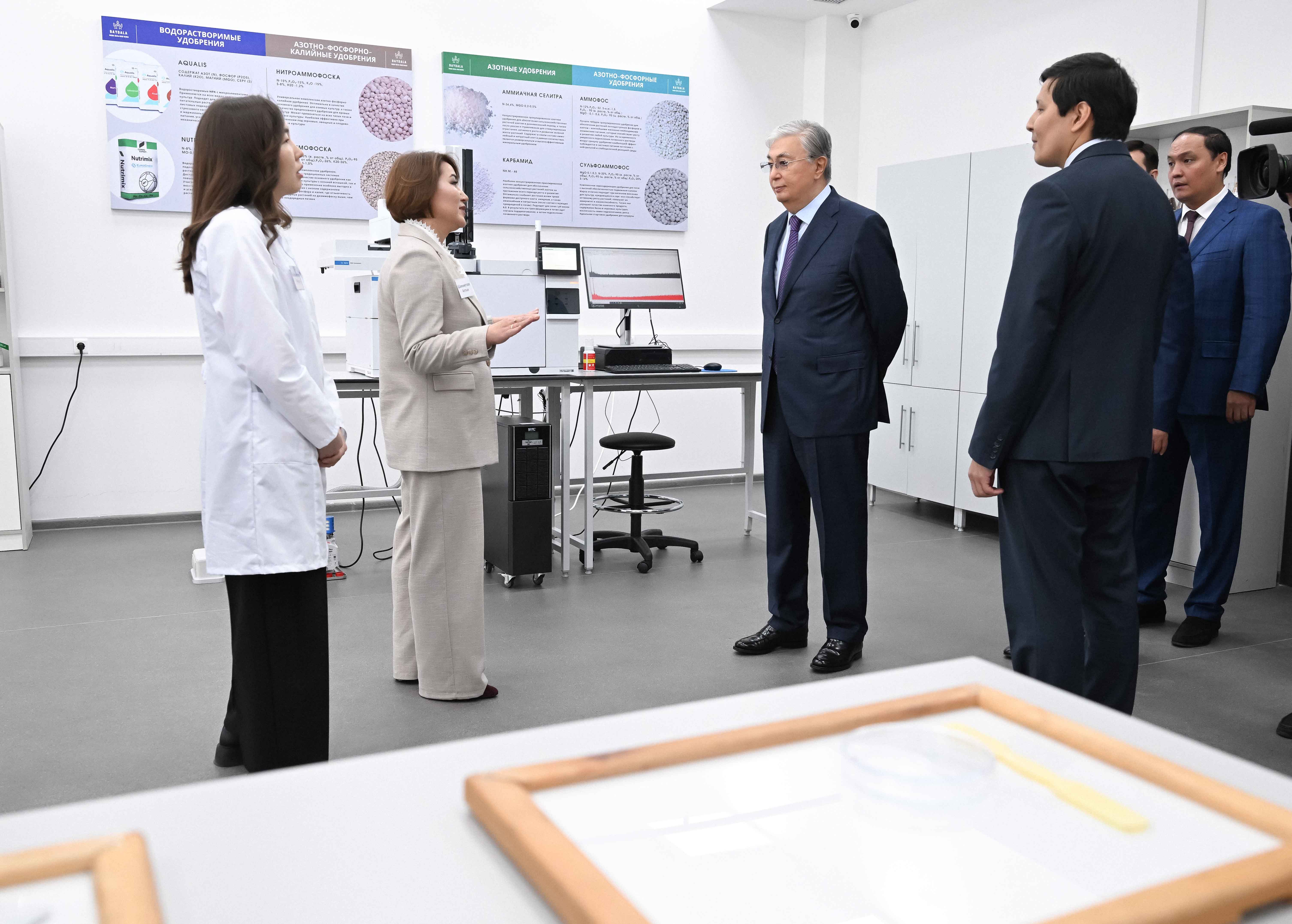 Мемлекет басшысына ауыл шаруашылығы өнімдерінің сапасын бағалаудың технологиялық мүмкіндіктері таныстырылды. Сонымен қатар Президент ұшқышсыз басқарылатын ұшу аппараттарына арналған лабораторияны аралап көрді. Онда студенттер ГИС-технология арқылы жерді қашықтан зондтау деректеріне талдау жасауды үйренеді.