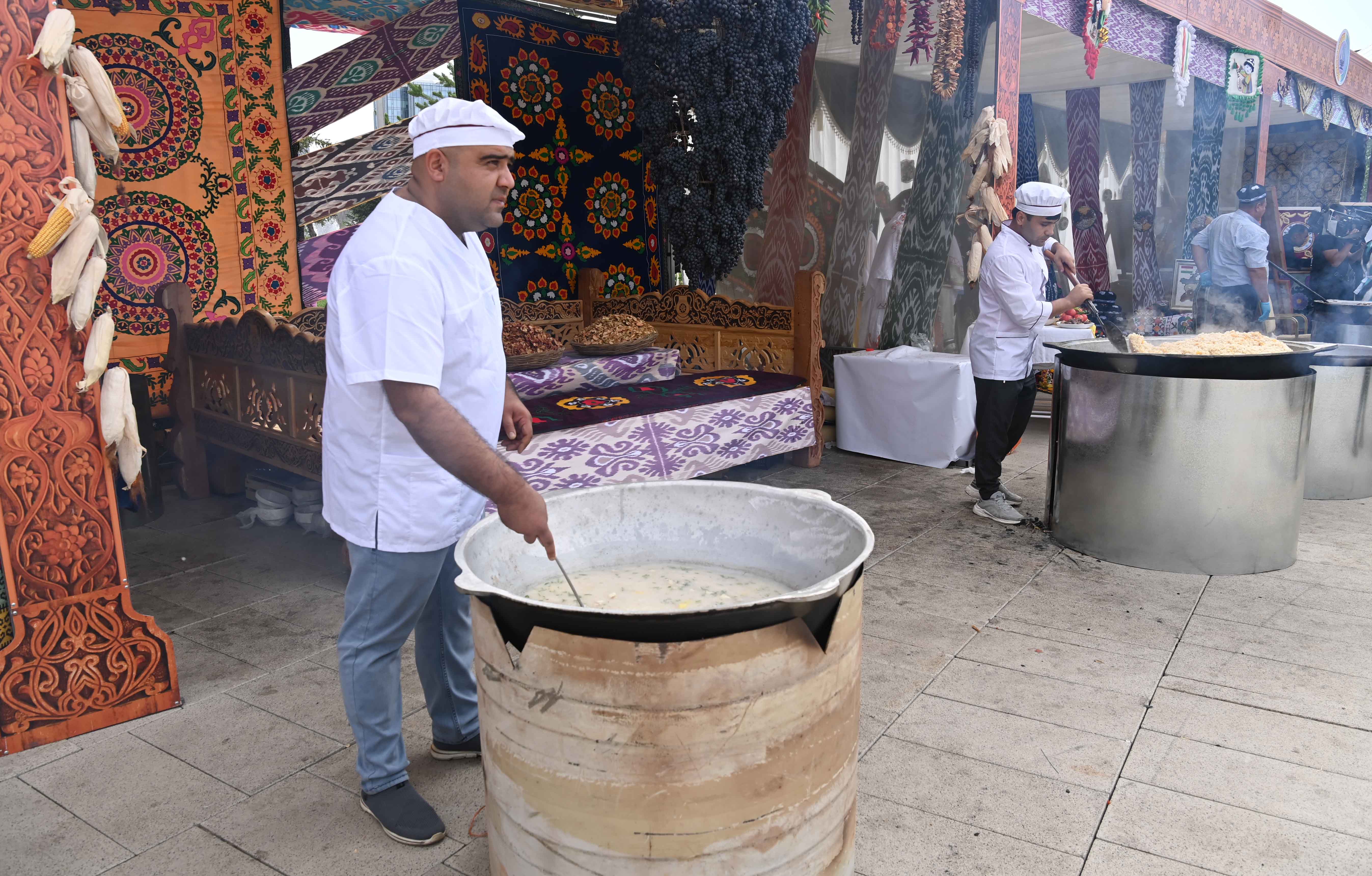 Екі ел басшылары Тәжікстанның ауыл шаруашылығы, өнеркәсіп өнімдері, қолөнер бұйымдары мен ұлттық тағамдарының көрме-жәрмеңкесіне барды. Бұл шара Тәжікстанның Қазақстандағы мәдениет күндері аясында өтіп жатыр. Мемлекеттер басшыларының назарына дәстүрлі тәжік киімдері, кілемдері, маталары, қыштан жасалған сәндік бұйымдары және музыкалық аспаптар ұсынылды. Сондай-ақ жәрмеңкеге жеміс-жидектер, көкөністер, қақталған жемістер мен кондитерлік өнімдер қойылды. Қасым-Жомарт Тоқаев елдеріміздің экономикасы бірін-бірі толықтыратынын, сондықтан Тәжікстанның бүгінгі көрме-жәрмеңкесі Қазақстан үшін айтарлықтай қызығушылық туғызатынын атап өтті. Шара аясында концерттік бағдарламалар, түрлі қолөнер және халық кәсіпшілігі бойынша шеберлік дәрістері ұйымдастырылды. Сонымен қатар елорда тұрғындары мен қонақтары тәжік халқының ұлттық тағамдарының дәмін татып көрді.