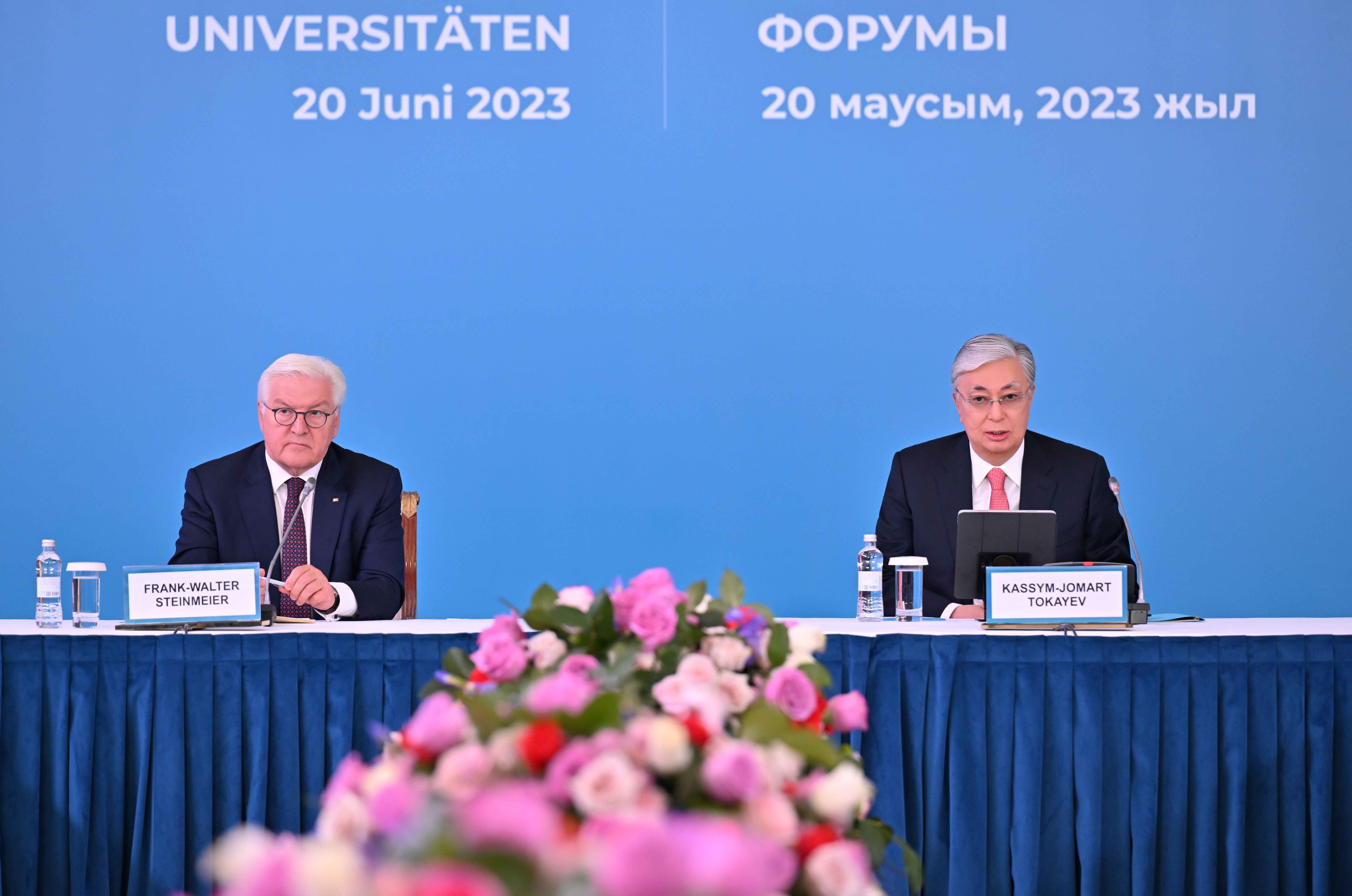 Мемлекет басшысы Қасым-Жомарт Тоқаев пен Германия Президенті Франк-Вальтер Штайнмайер Қазақ және неміс жоғары оқу орындары ректорларының форумына қатысты.