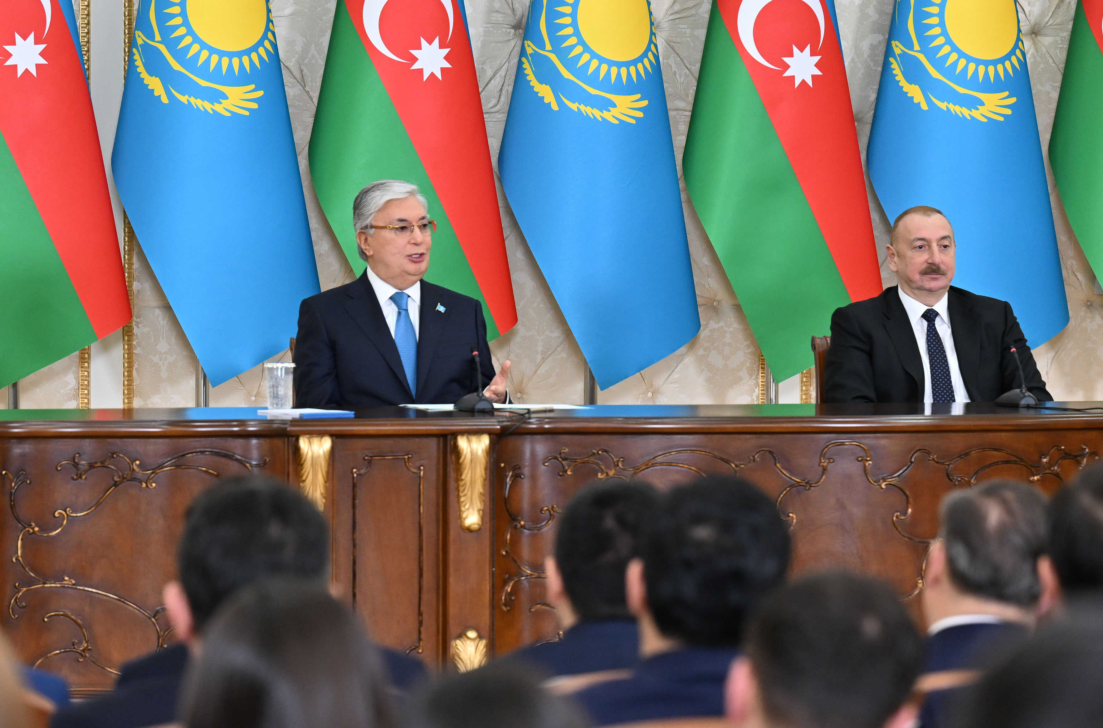 Мемлекет басшысы Қасым-Жомарт Тоқаев пен Әзербайжан Президенті  Ильхам Әлиев бұқаралық ақпарат құралдарының өкілдері үшін  бірлескен мәлімдеме жасады.