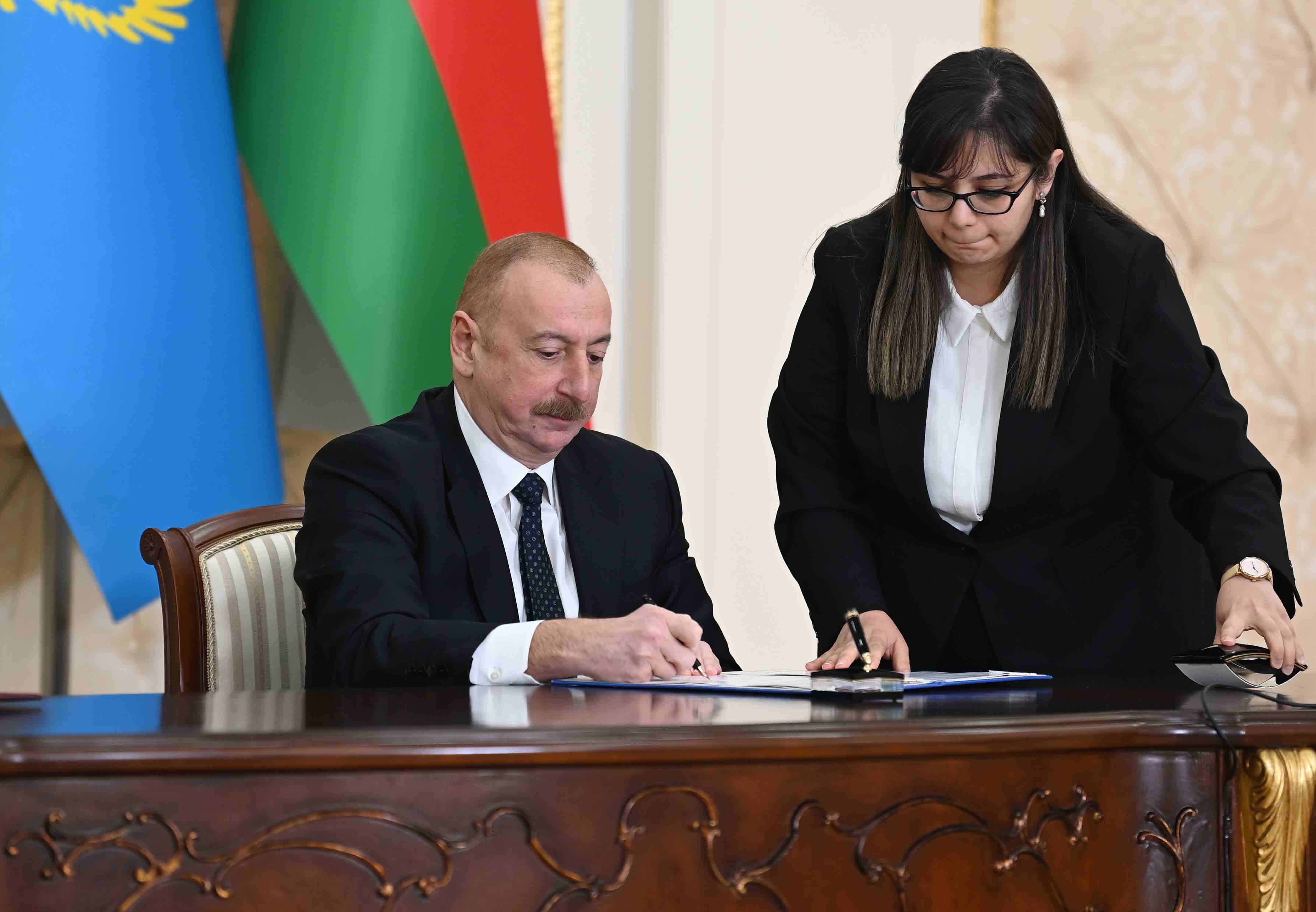 Қазақстан мен Әзербайжан президенттерінің келіссөзі нәтижесінде мынадай құжаттарға қол қойылды: