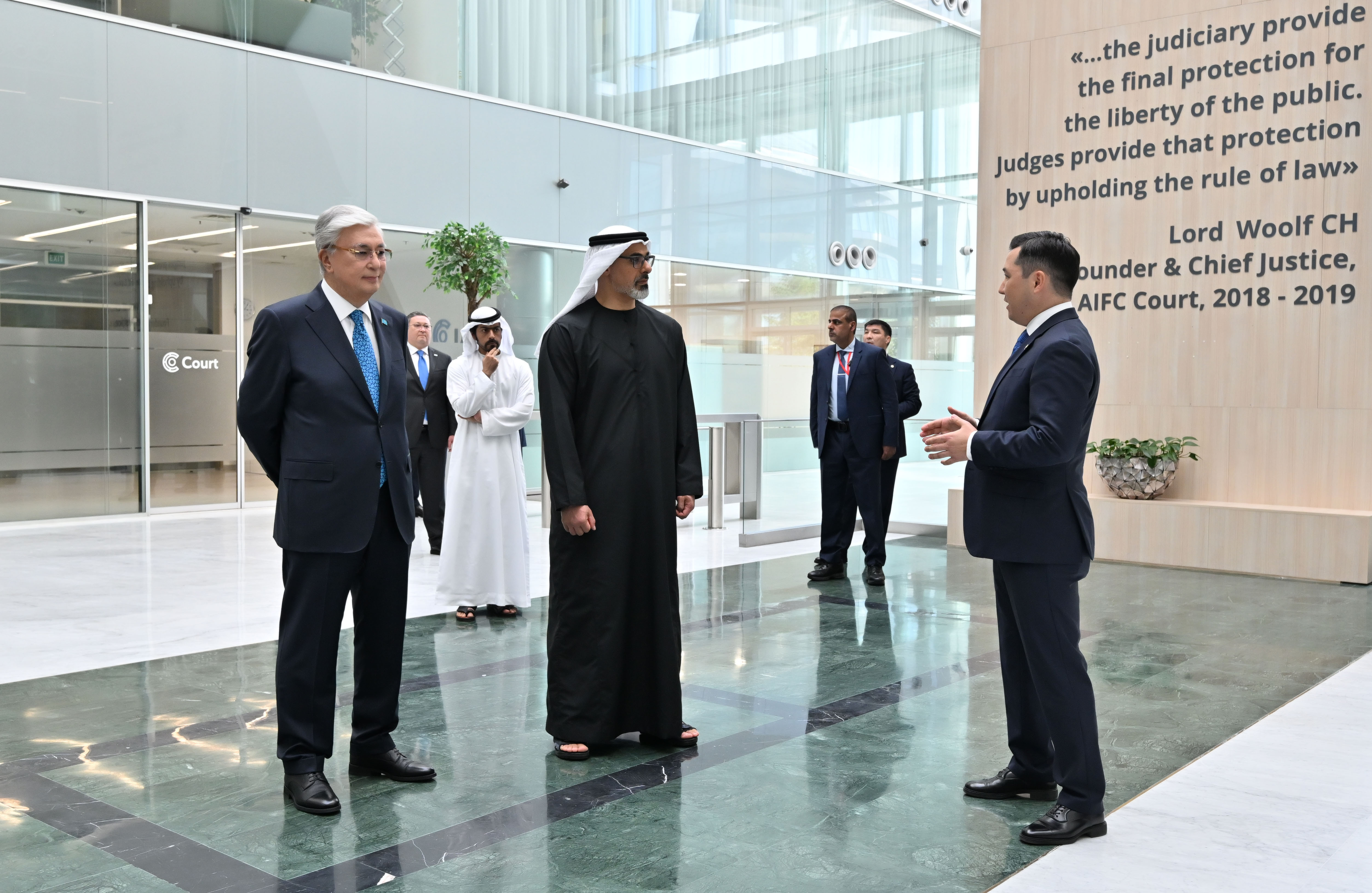 Қасым-Жомарт Тоқаев пен шейх Халед бен Мұхаммед бен Заид Әл Нахаян «Астана» халықаралық қаржы орталығына барды