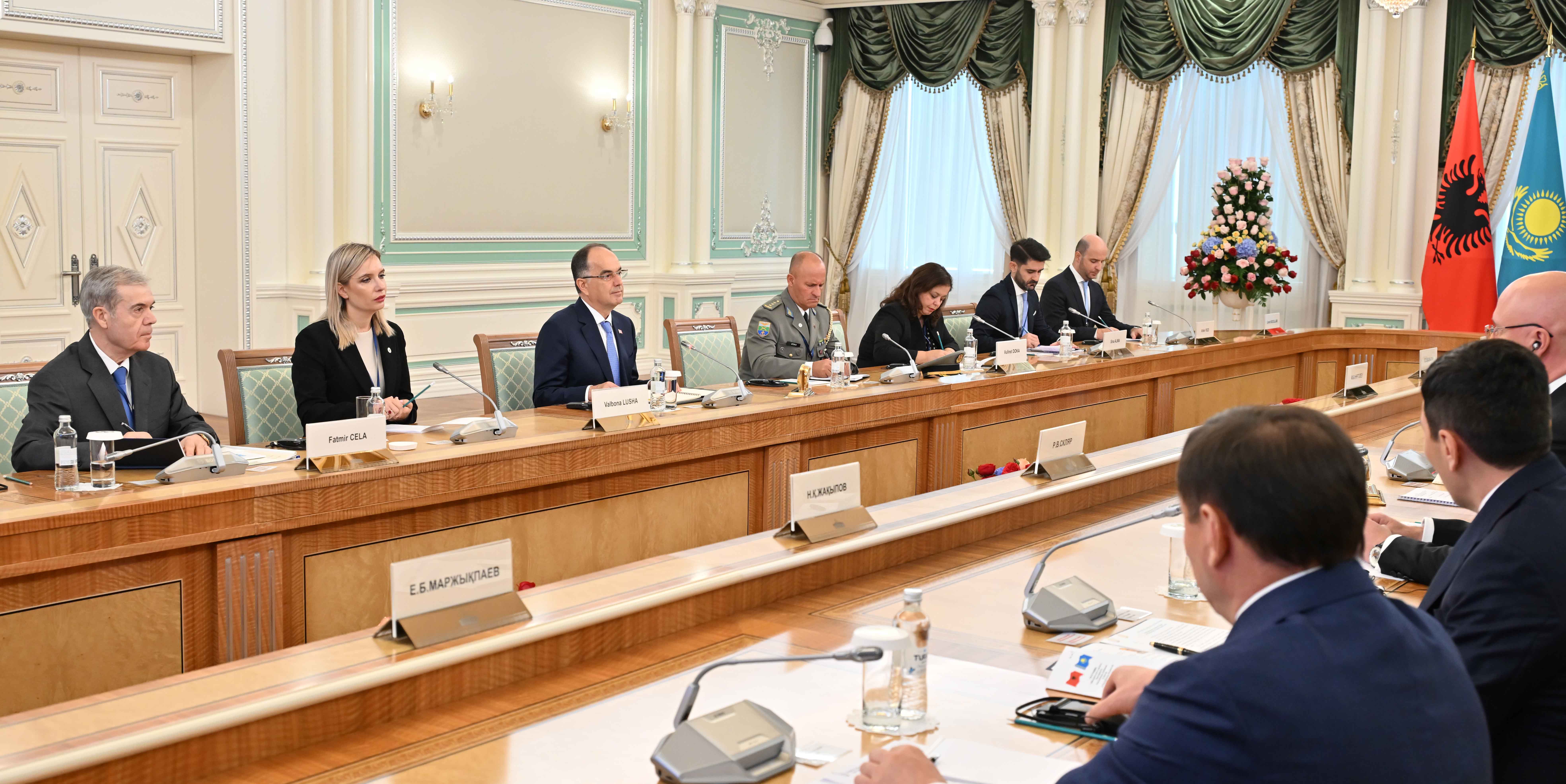 – Біздің алғашқы кездесуіміз екі ел арасында сындарлы диалог басталғанын көрсетеді. Албания мен Қазақстан арасындағы қарым-қатынасты кеңейту, сондай-ақ ынтымақтастығымыз бен гуманитарлық байланыстарымызды нығайту жөніндегі ортақ мақсатқа сай іс-әрекеттеріміз жалғасады деп үміттенемін. Сонымен қатар экономикалық ынтымақтастықты нығайту үшін әлеуетіміз мол. Біз осы мүмкіндікті пайдалана аламыз. Тау-кен, энергетика, ауыл шаруашылығы, туризм және инфрақұрылымдық даму салаларындағы өзара ынтымақтастығымызды нығайтқымыз келеді, – деді Албания Президенті.