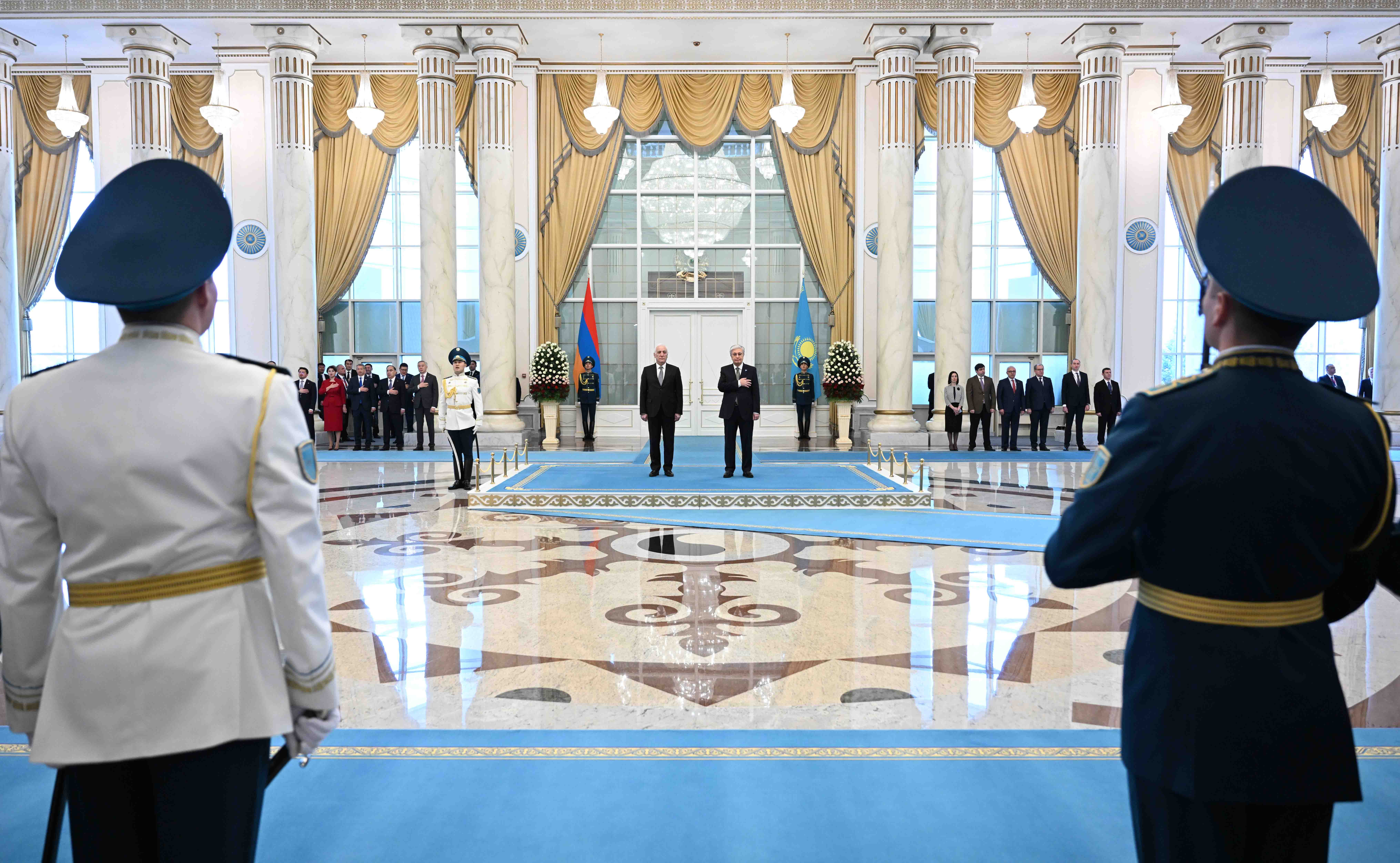 Ақорда резиденциясында Қазақстанға ресми сапармен келген Армения Президентін салтанатты түрде қарсы алу рәсімі өтті.