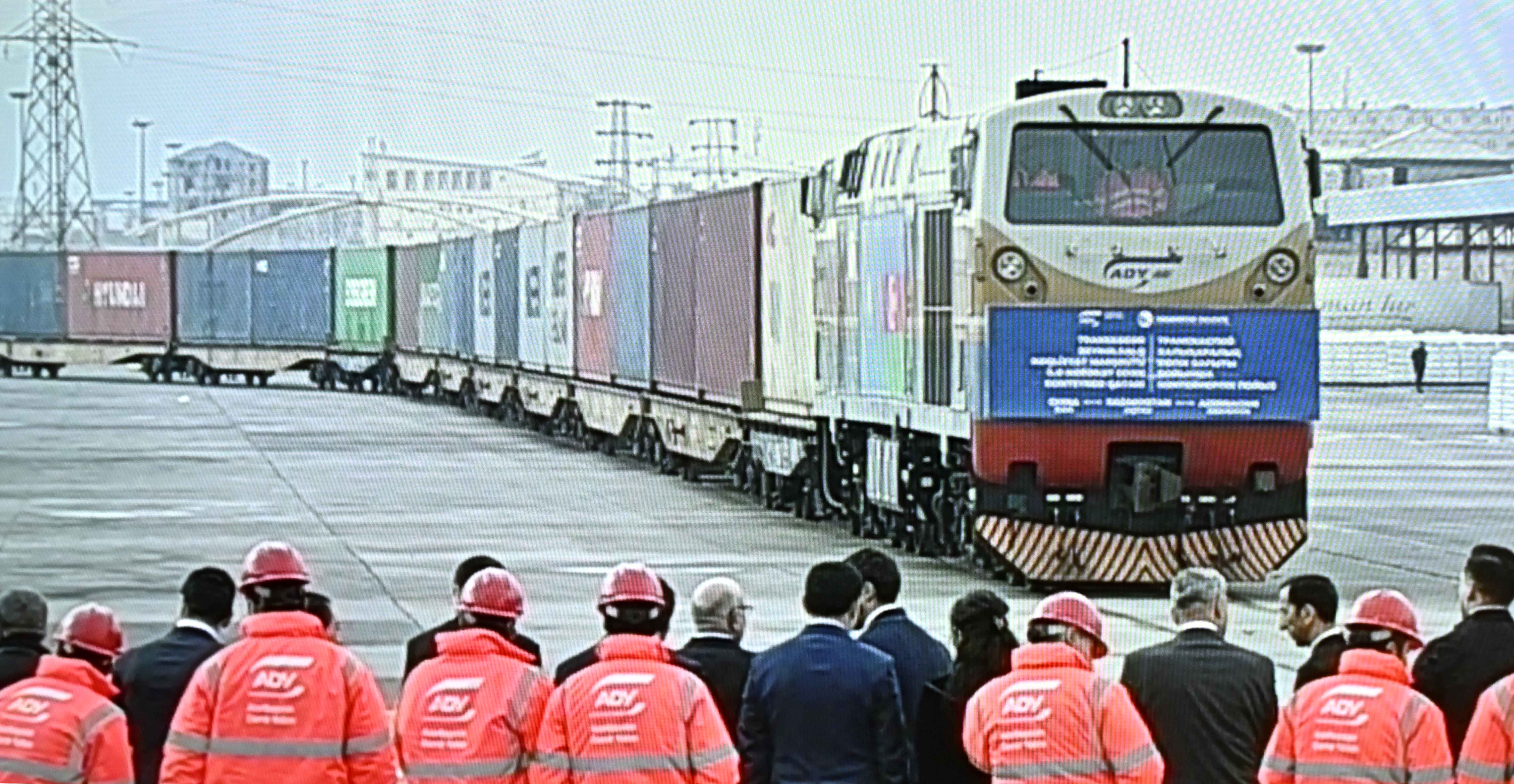 Қасым-Жомарт Тоқаев пен Ильхам Әлиев Сиань қаласындағы Қазақстан мен Қытайдың жаңа көлік-логистика орталығынан шығып, Транскаспий халықаралық көлік бағытымен (ТХКБ) Апшерон станциясына контейнерлі блок-пойыздың келуіне орай ұйымдастырылған салтанатты шараға телекөпір арқылы қатысты.