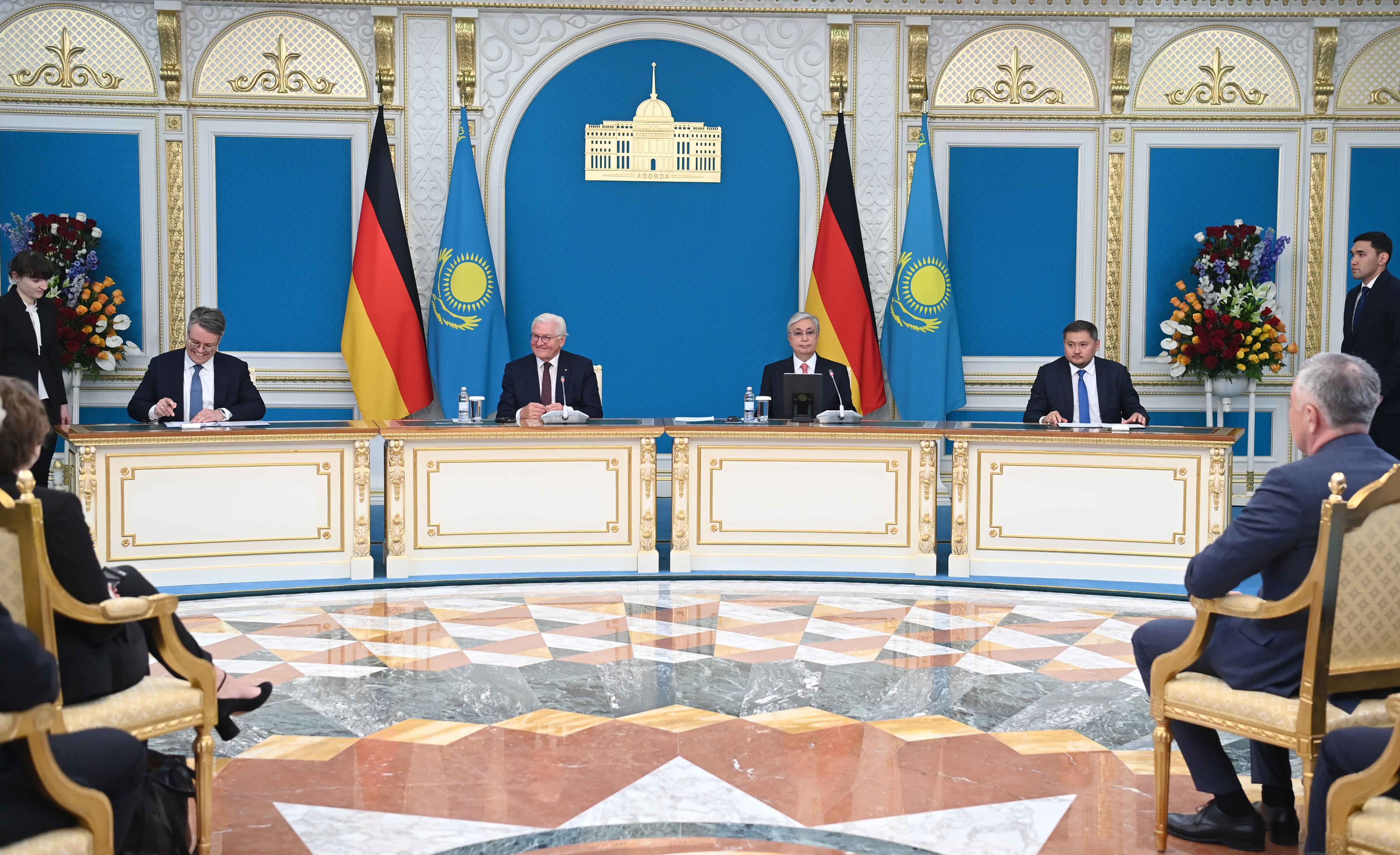 Өз кезегінде Франк-Вальтер Штайнмайер Астанаға арнайы шақырғаны және қазақ халқына тән қонақжайлық көрсеткені үшін Қасым-Жомарт Тоқаевқа алғыс айтты. Ол шағын құрамдағы келіссөз табысты өткенін атап өтіп, бірлескен жобаларды жүзеге асыру маңызды екенін жеткізді.