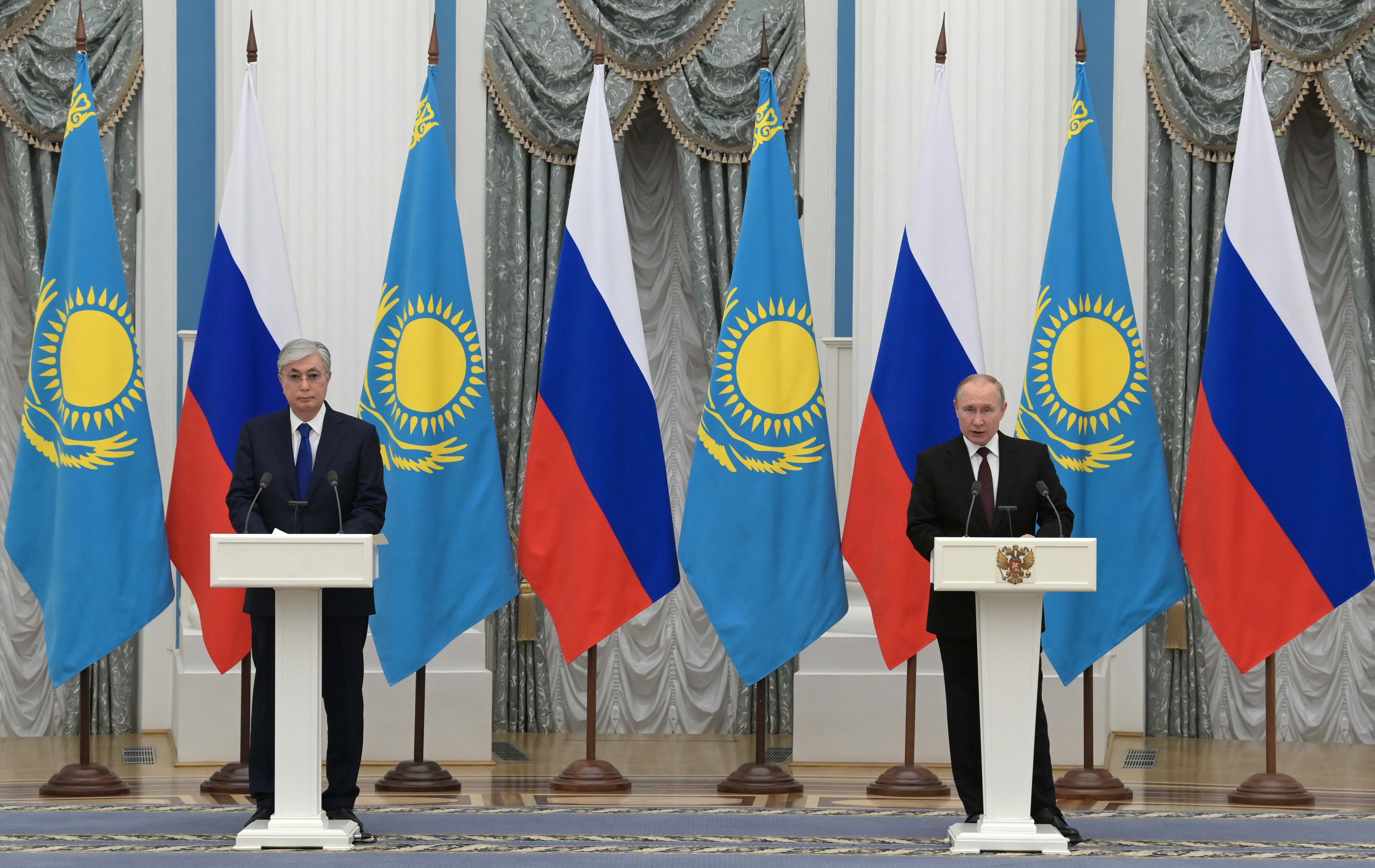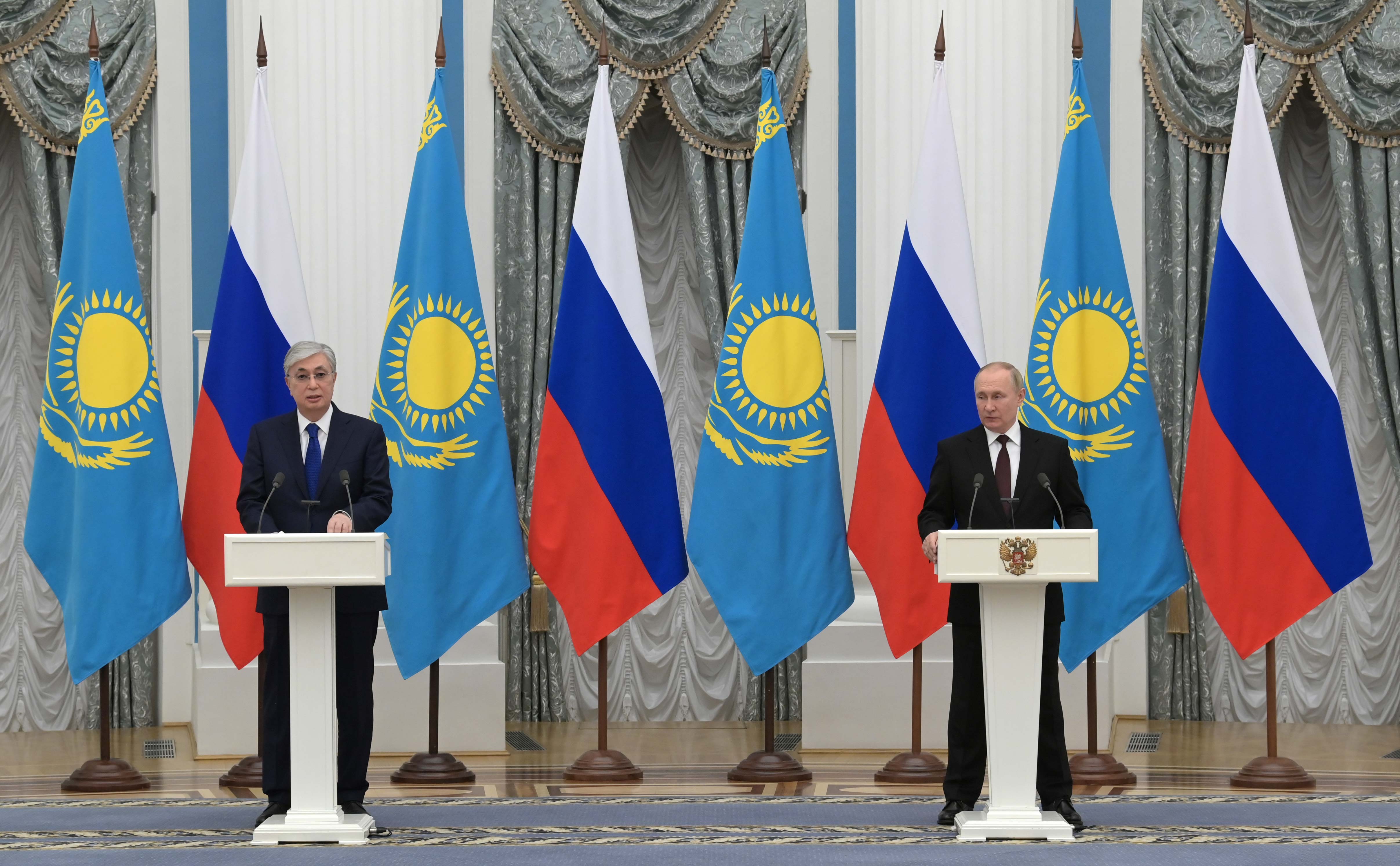 Екіжақты келіссөздің қорытындысы бойынша Қасым-Жомарт Тоқаев пен Владимир Путин бұқаралық ақпарат құралдарының өкілдері үшін бірлескен мәлімдеме жасады.