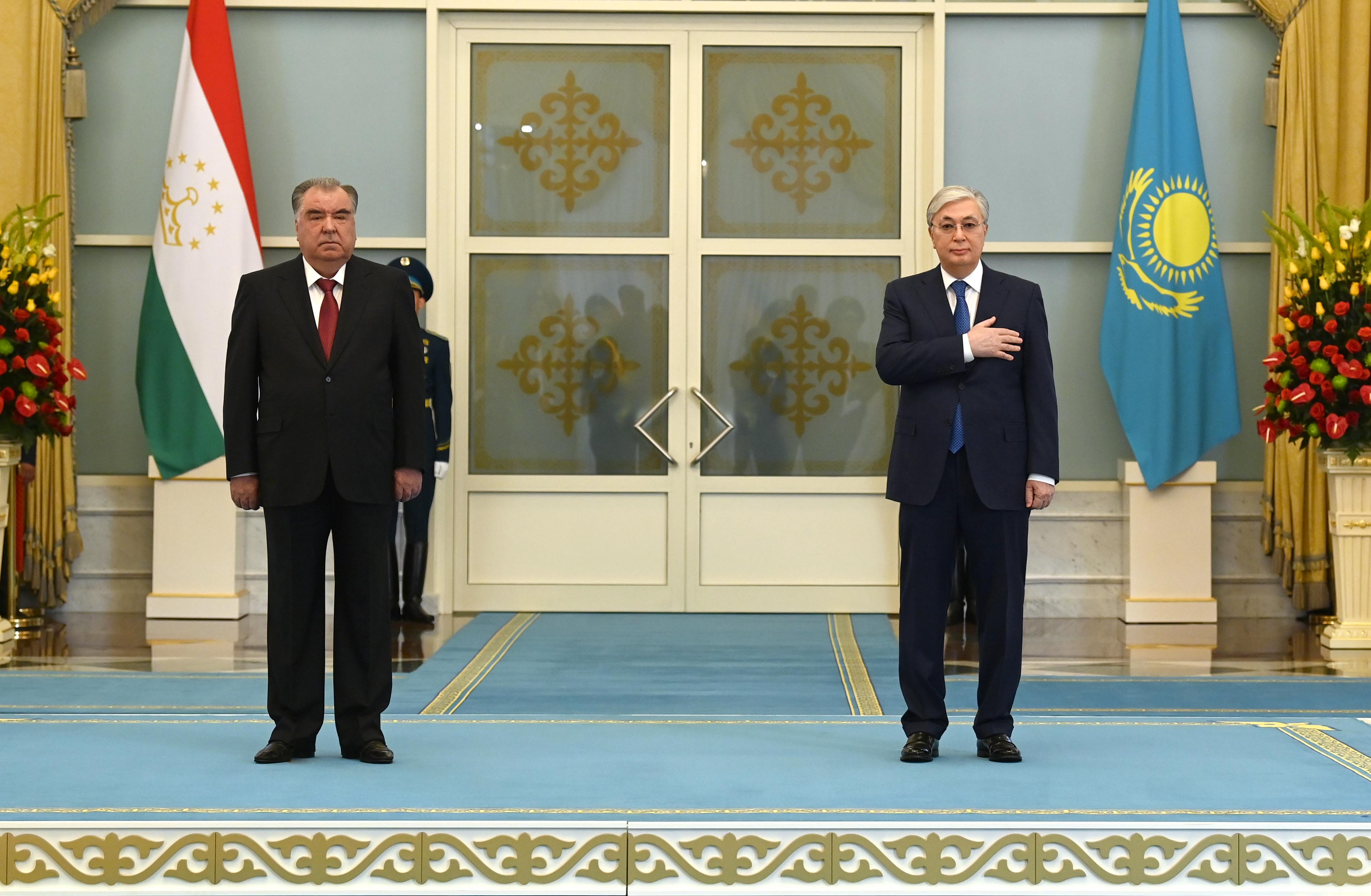 Келіссөзге дейін «Ақорда» резиденциясында ресми қарсы алу рәсімі болды. Қасым-Жомарт Тоқаев пен Эмомали Рахмон бір-біріне ресми делегация мүшелерін таныстырды. Құрмет қарауылының бастығы екі ел басшыларына рапорт беріп, Қазақстан мен Тәжікстанның мемлекеттік әнұрандары шырқалды. Бұдан кейін екі ел басшылары шағын құрамда кездесу өткізді.