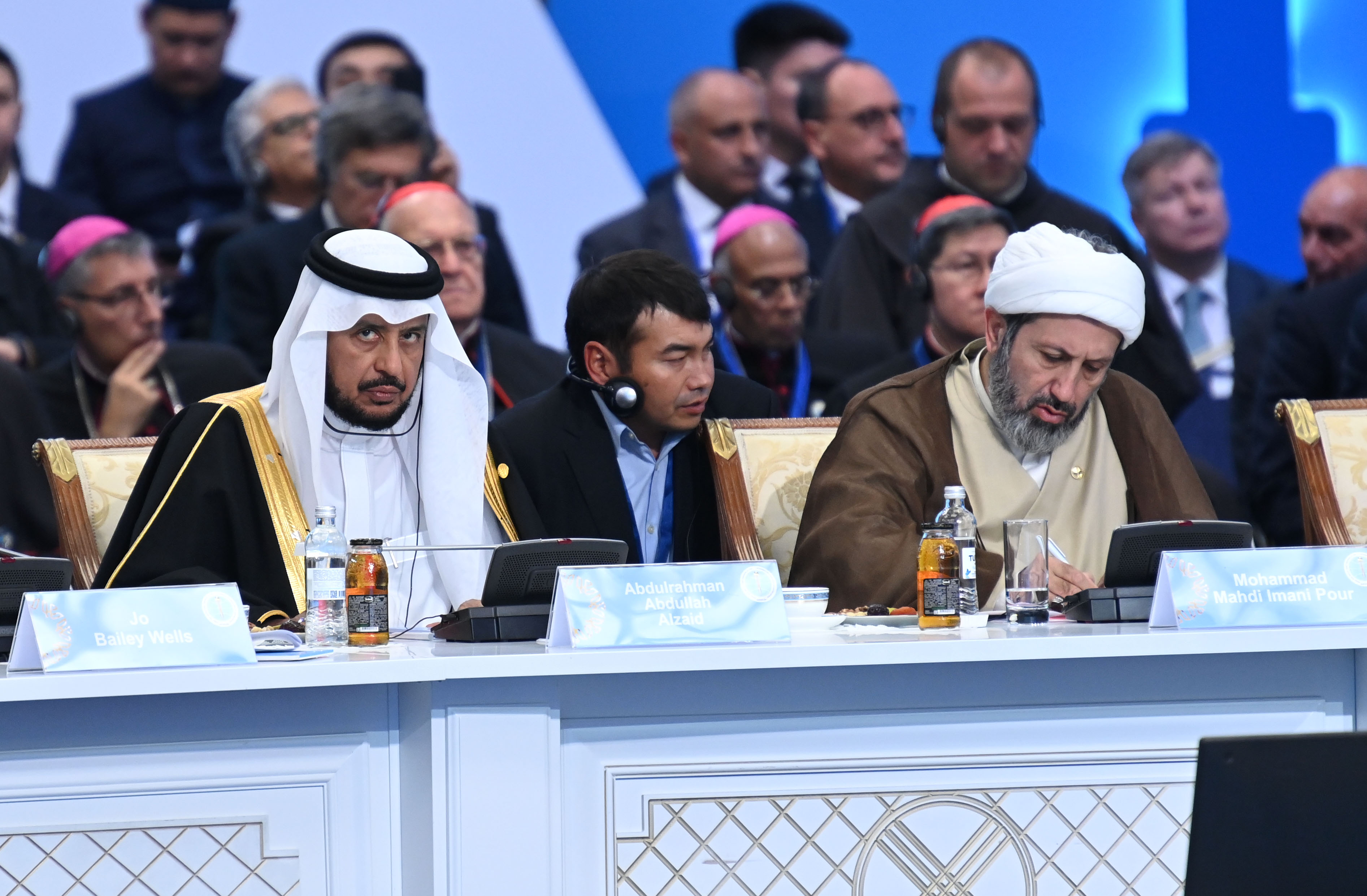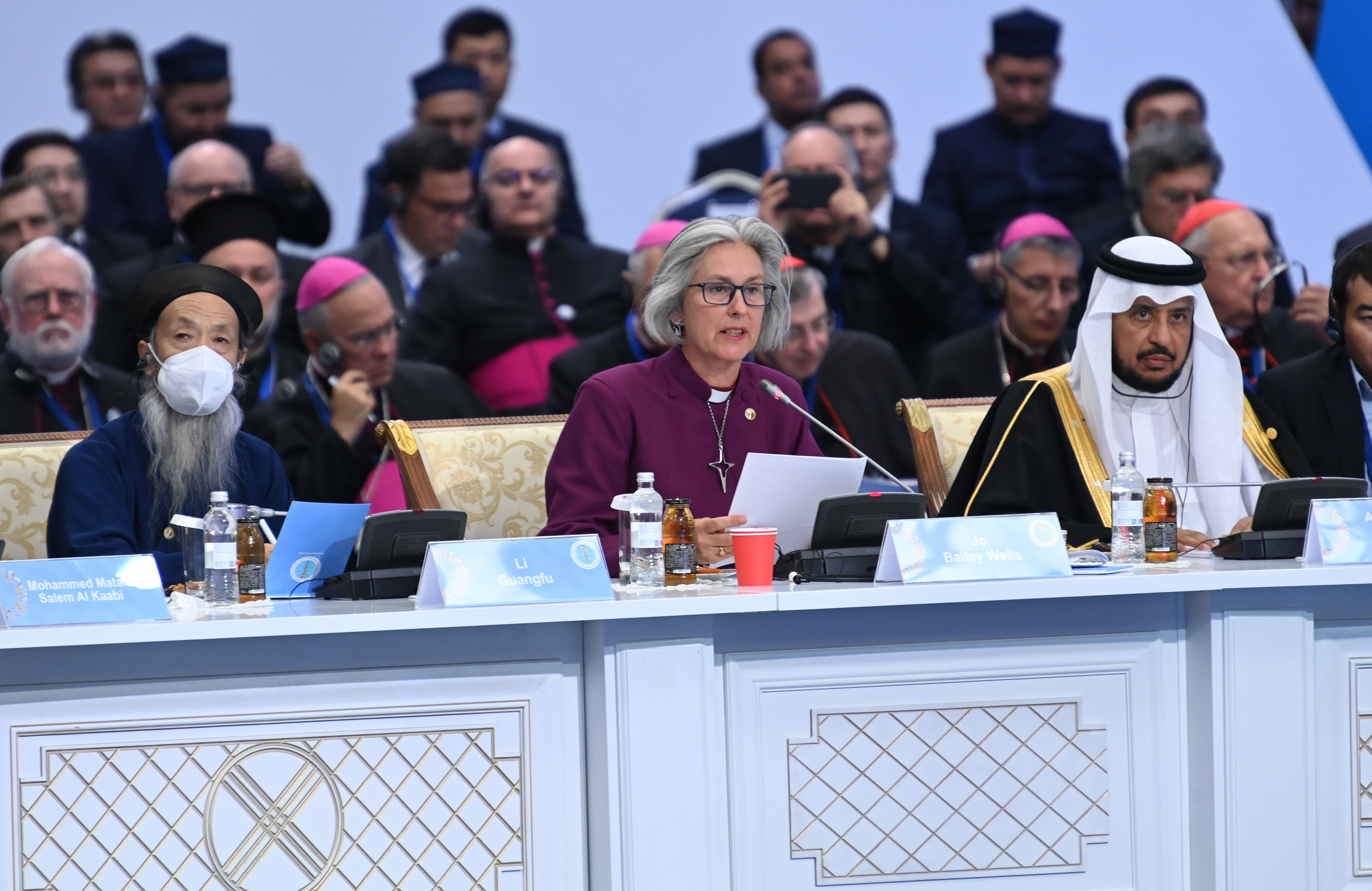 Сонымен қатар Съездің жабылу рәсімінде Рим Папасы Франциск, «Әл-Азһар» университетінің Жоғарғы имамы шейх Ахмад ат-Тайеб, Мәскеу Патриархатының Сыртқы шіркеулік байланыстар департаментінің төрағасы, Волоколамск митрополиті Антоний, Сауд Арабиясы Корольдігінің Ислам істері, уағыз және насихат жөніндегі министрі шейх Абдуллатиф бен Абдулазиз Абдрахман Әл аш-Шейх, Израильдің Бас ашкеназ раввині Давид Лау, сондай-ақ Әлемдік және дәстүрлі діндер көшбасшылары съезі Хатшылығының басшысы – Қазақстан Республикасы Парламенті Сенатының төрағасы Мәулен Әшімбаев сөз сөйледі.