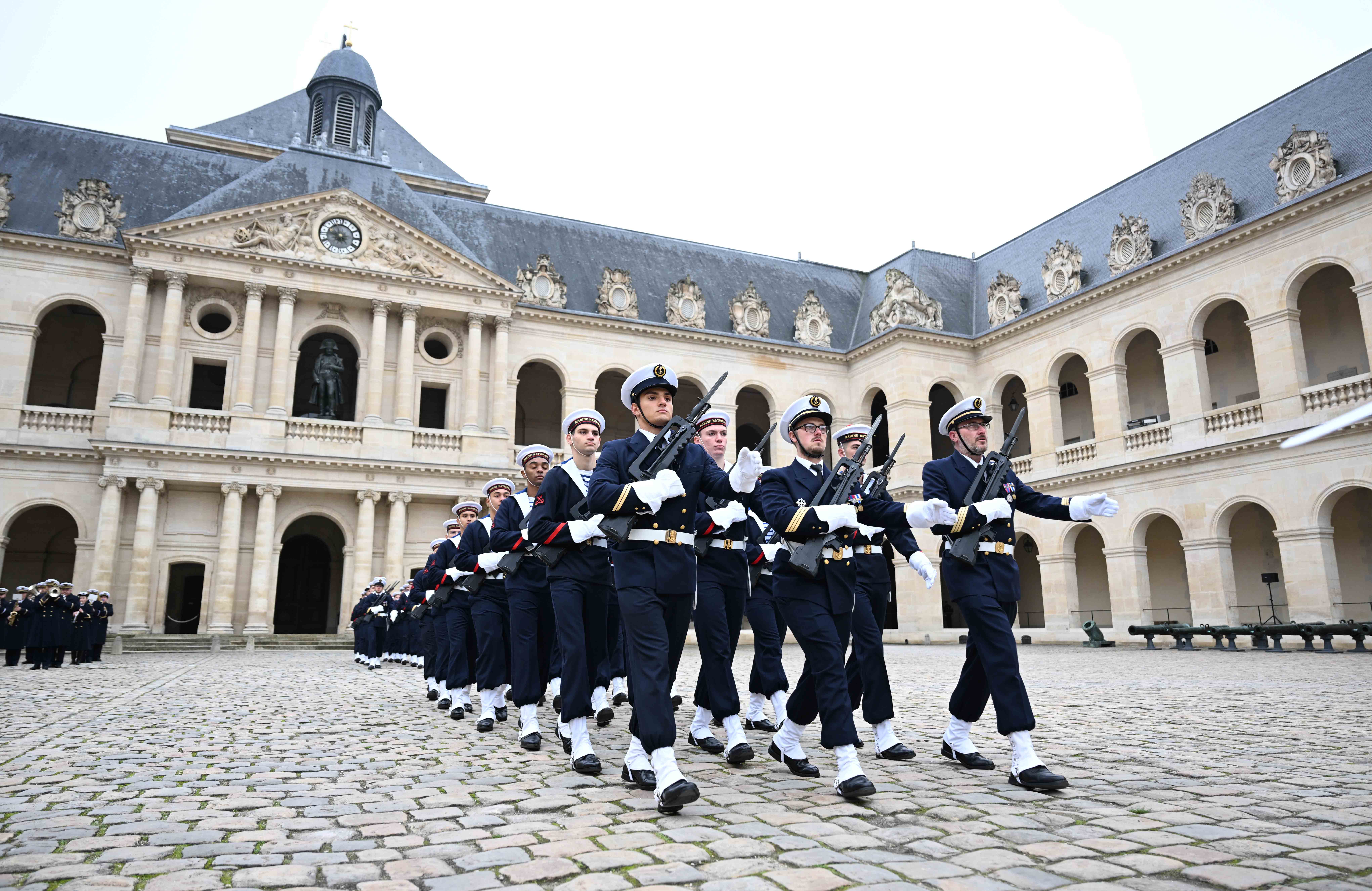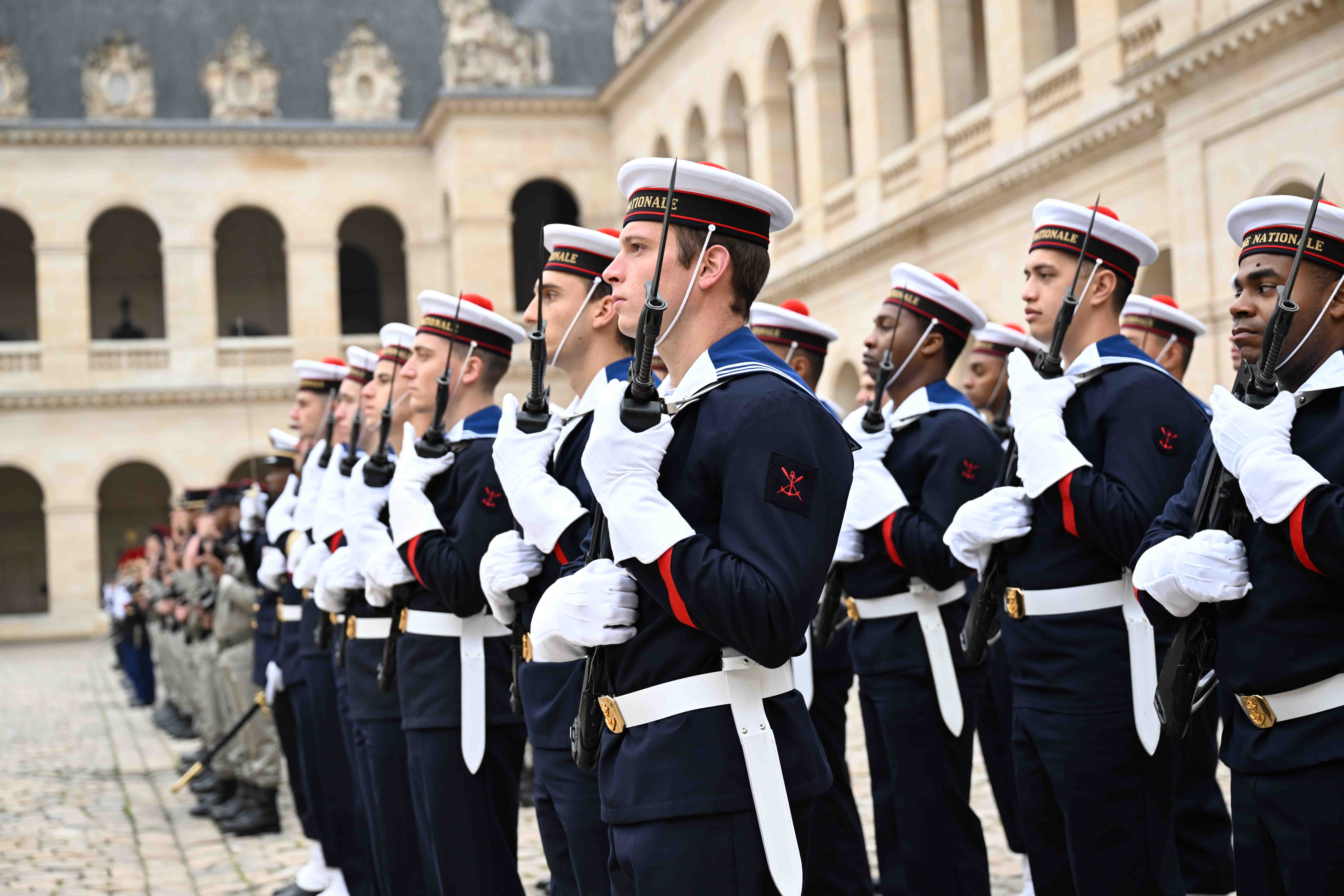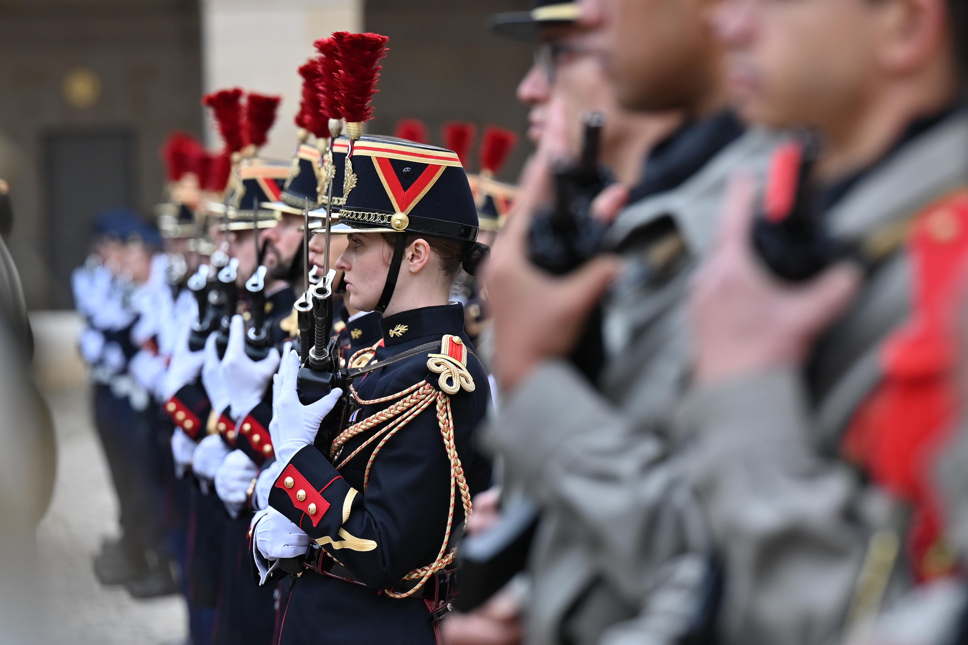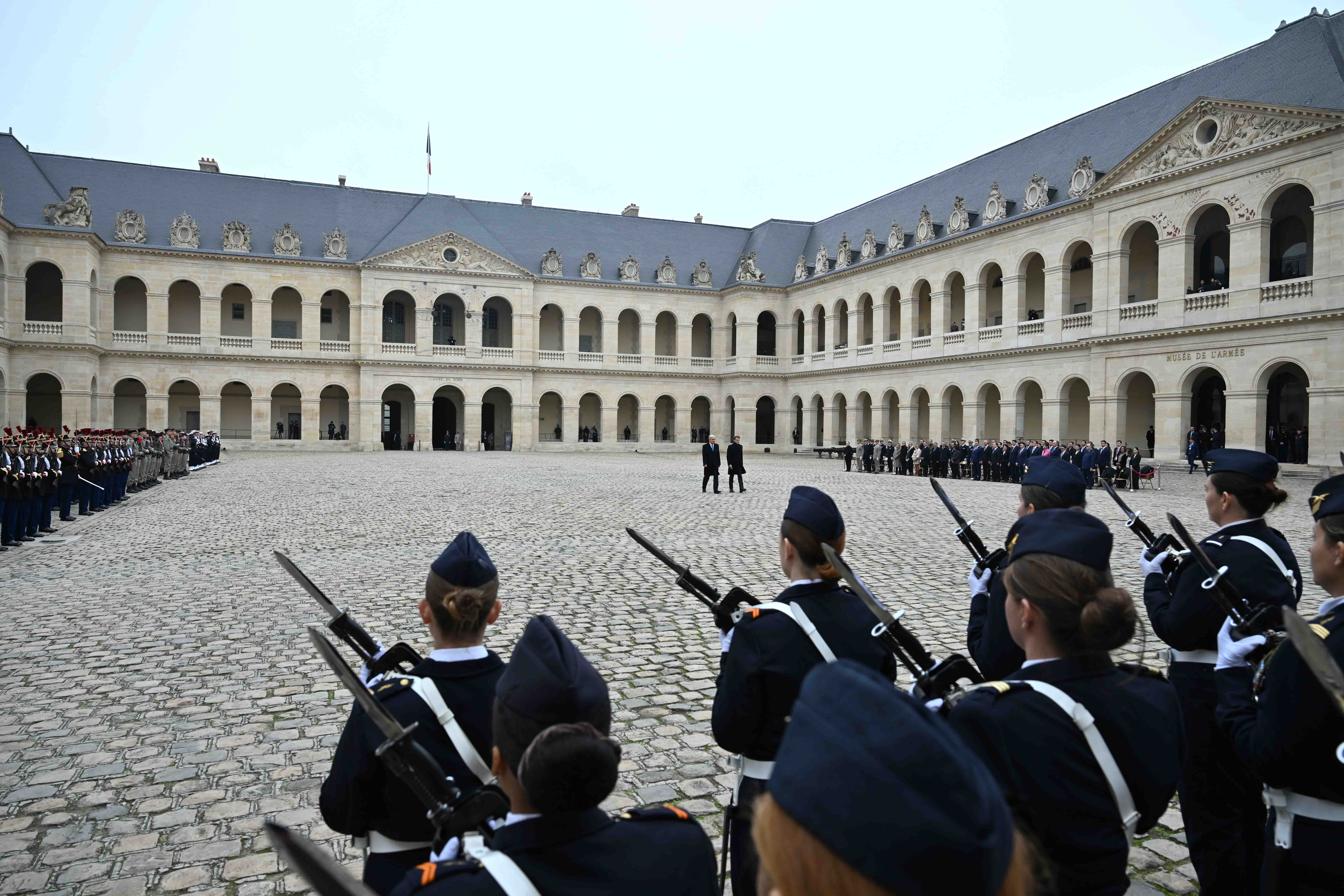 Франция, Париж қаласы Қасым-Жомарт Тоқаевтың Франция Республикасына мемлекеттік сапары салтанатты қарсы алу рәсімінен басталды. Мемлекет басшысын әскери оркестрдің сүйемелдеуімен Президент Эмманюэль Макрон қарсы алды. Қазақстан мен Францияның мемлекеттік әнұрандары шырқалды. Президенттер республикалық гвардия, әуе-ғарыш, құрлық және теңіз әскерлерінен жасақталған Құрмет қарауылының алдынан жүріп өтті. Бұдан кейін мемлекеттер басшылары Құрмет қарауылының салтанатты шеруін тамашалады. Қасым-Жомарт Тоқаев пен Эмманюэль Макрон бір-біріне ресми делегация мүшелерін және құрметті қонақтарды таныстырды.