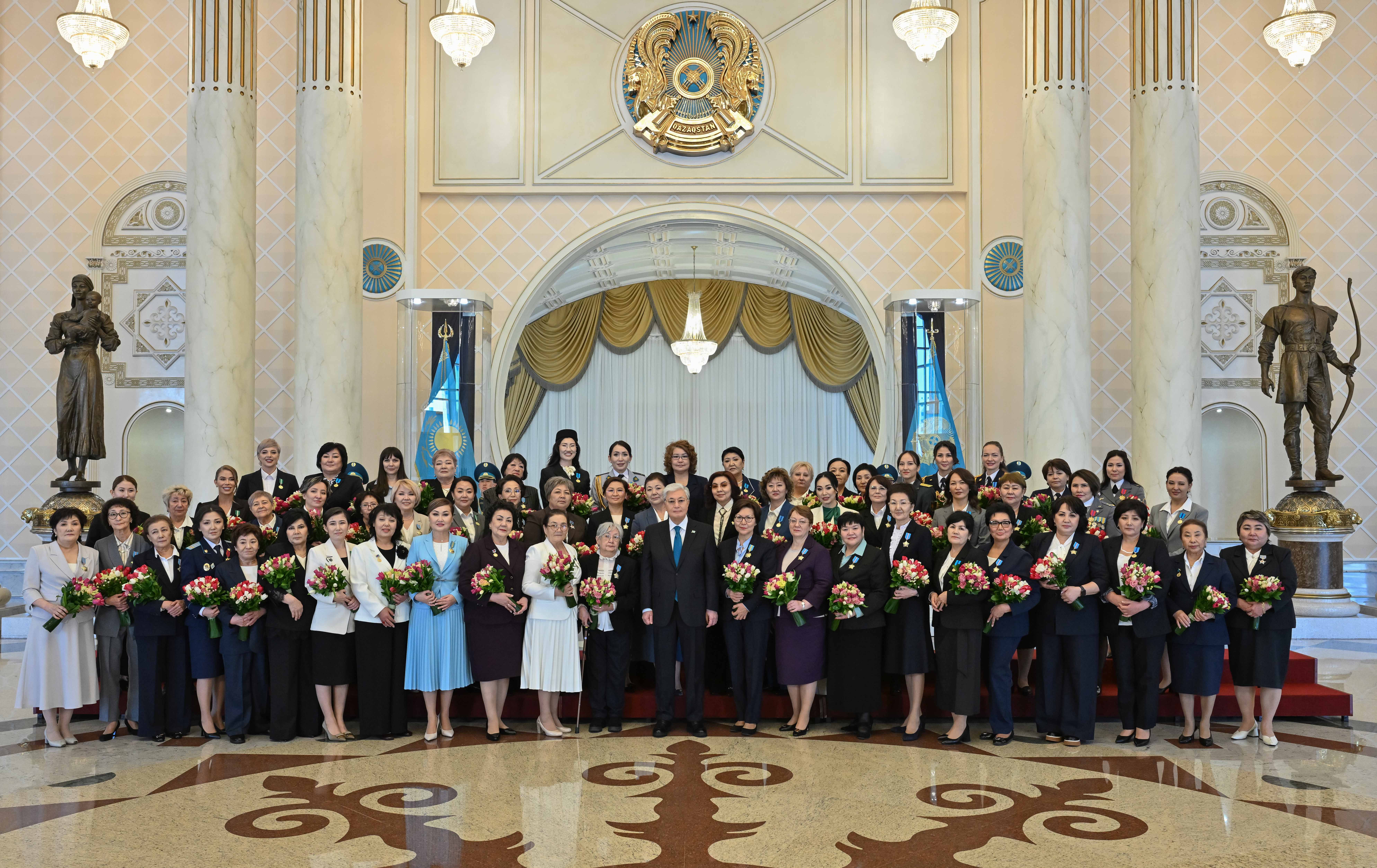 – Тұмар мен Бопай ханымдардың, Домалақ ана, Зере және Ұлпан аналардың, Әлия, Мәншүк, Хиуаз секілді батыр қыздарымыздың аты ел жадында. Сіздерді ақылы мен ажары, даналығы мен даралығы келіскен қазақ әйелінің ізбасары деуге болады. Әйелдер қауымы күрделі кезеңдерде аянбай еңбек етті, Отанымыздың өсіп-өркендеуіне белсене атсалысты. Ұрпақ тәрбиесі – ұлт тәрбиесі. Бүгінде сіздер санасы сергек, ойы азат ұрпақ өсіріп, Отанымыздың өркен жаюына айрықша үлес қосып келесіздер. Қазақстанның сан түрлі салада жетістікке жетуіне қыз-келіншектеріміз мол еңбек сіңіруде. Бүгін Ақордаға шақырылған әйелдер арасында Отанымызға әр салада еңбек сіңірген білікті мамандар бар. Мен баршаңызға зор алғыс айтамын! – деді Президент.