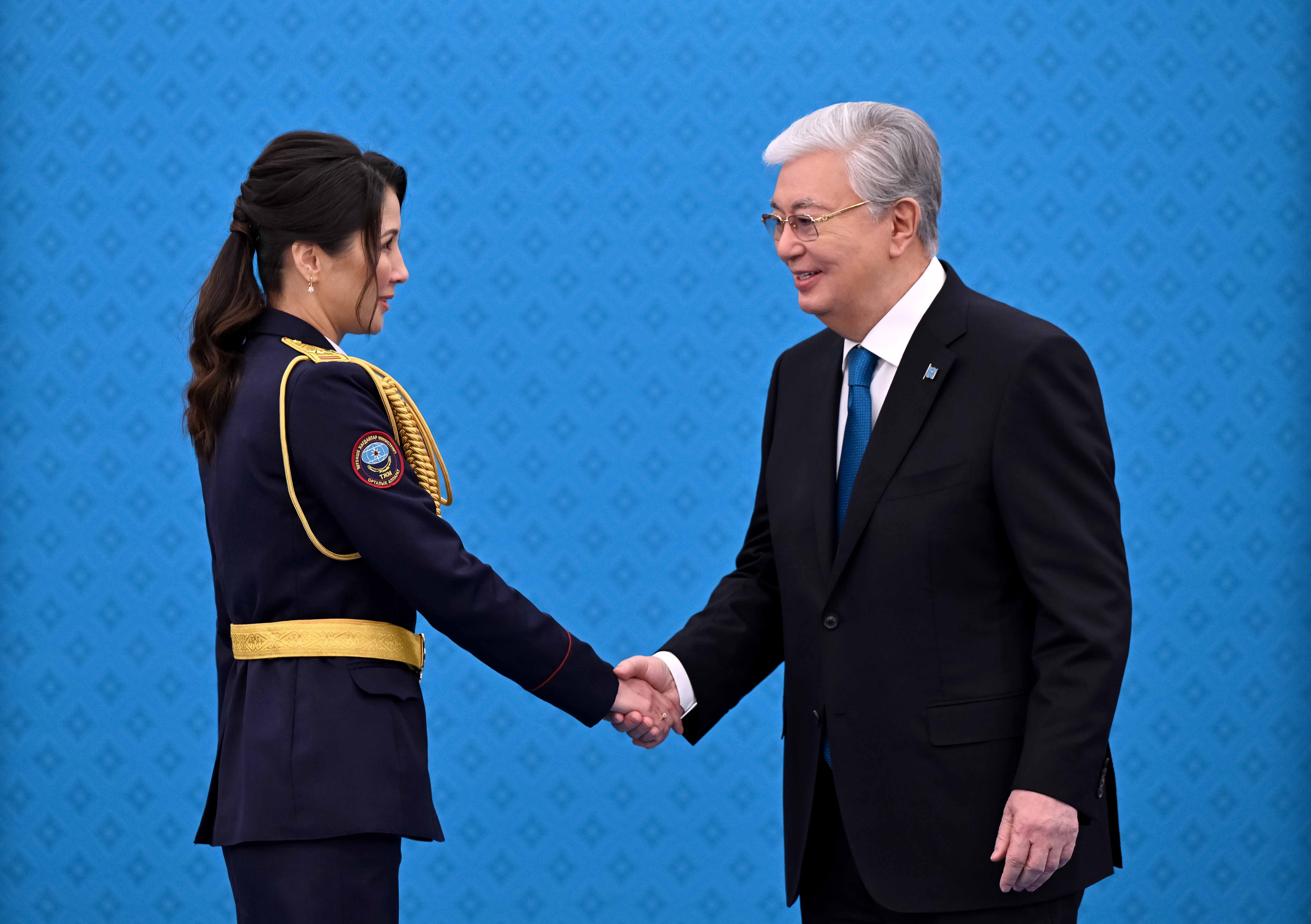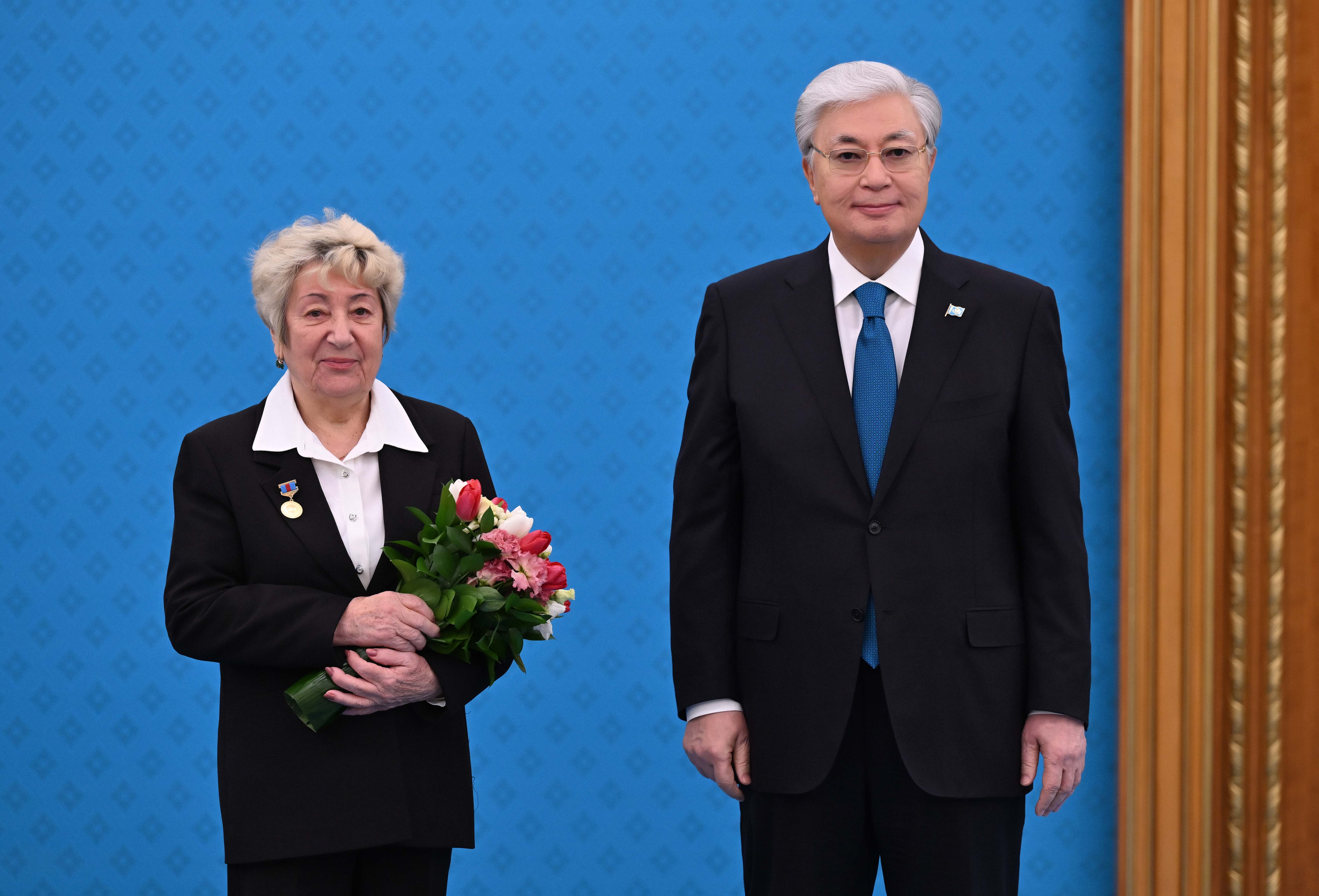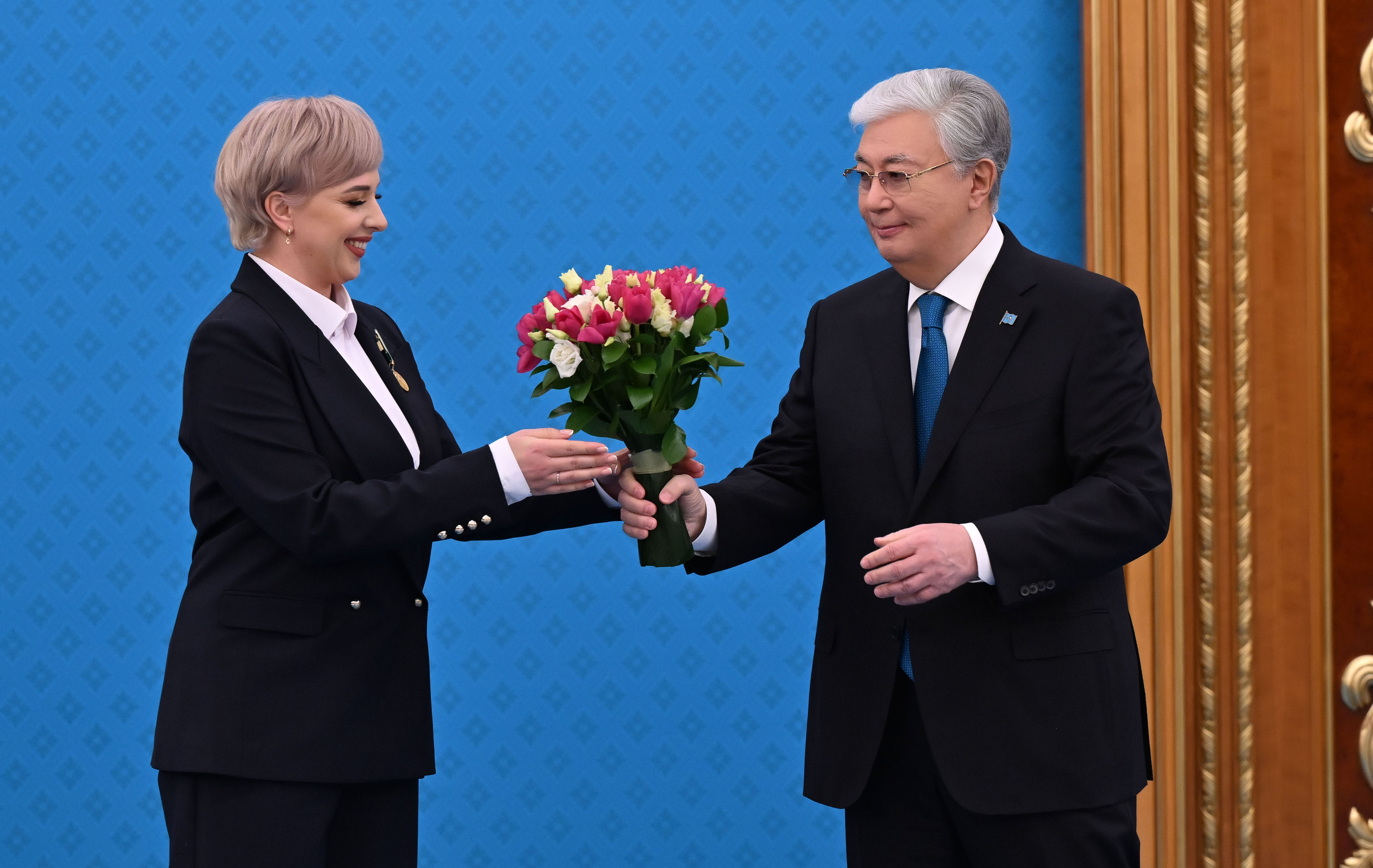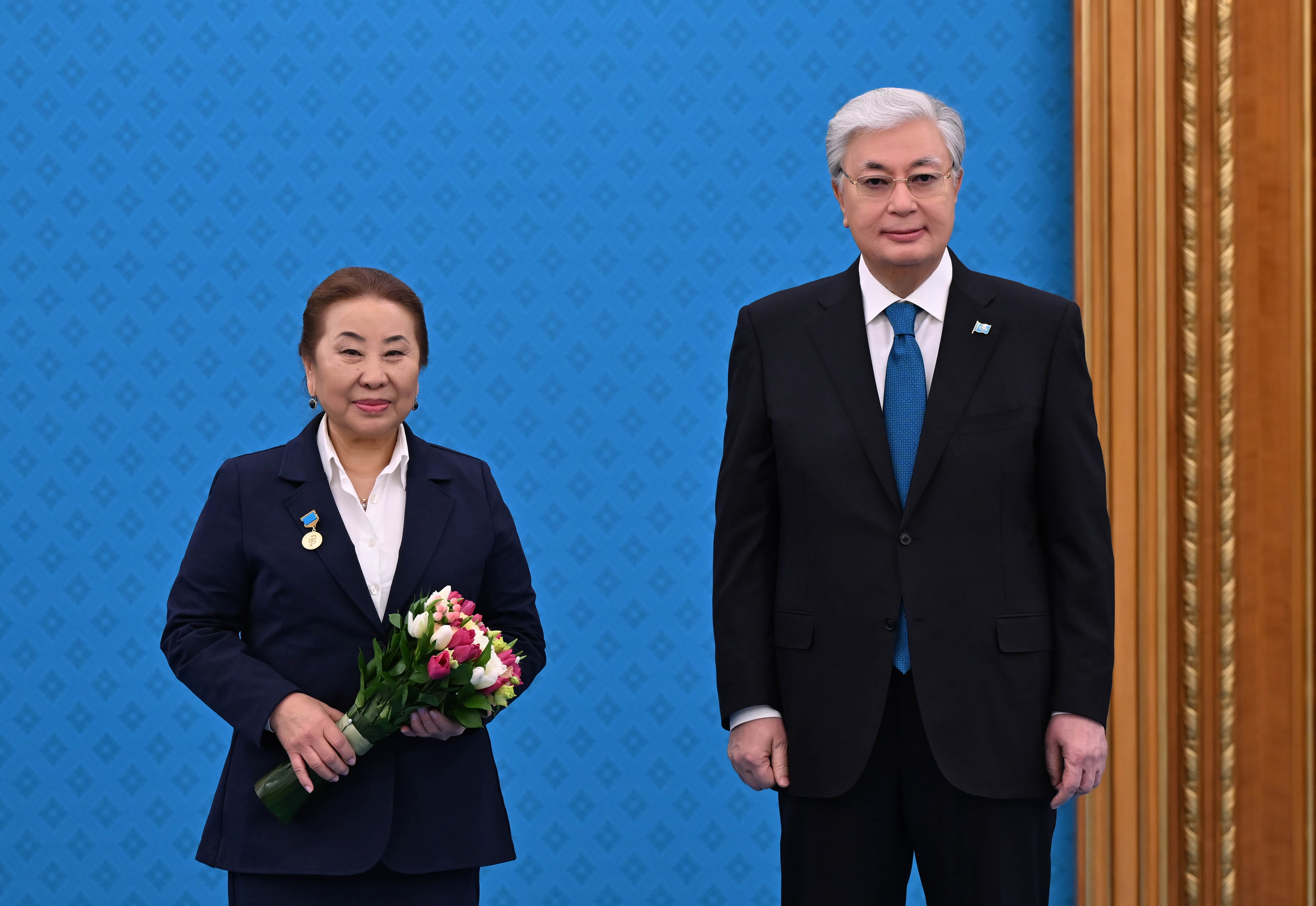 Салтанатты жиында Мемлекет басшысы еліміздің дамуына елеулі еңбек сіңірген, өз саласында жоғары жетістікке жеткен бір топ әйел азаматқа мемлекеттік наградалар табыстады.
