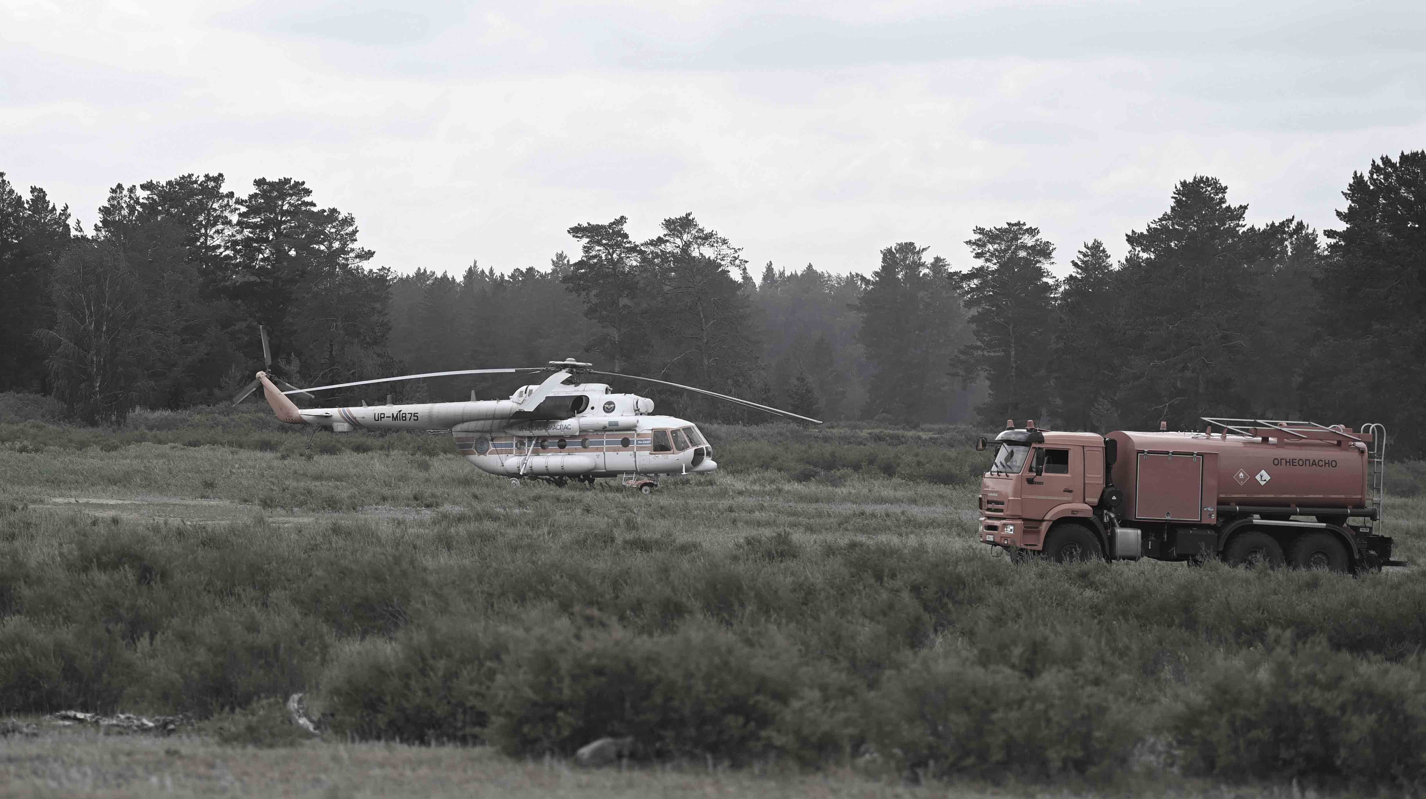 Президент өртке оранған орман алқабын тікұшақпен аралап шыққан соң Бородулиха ауылында орналасқан мобильді командалық пунктке келді.