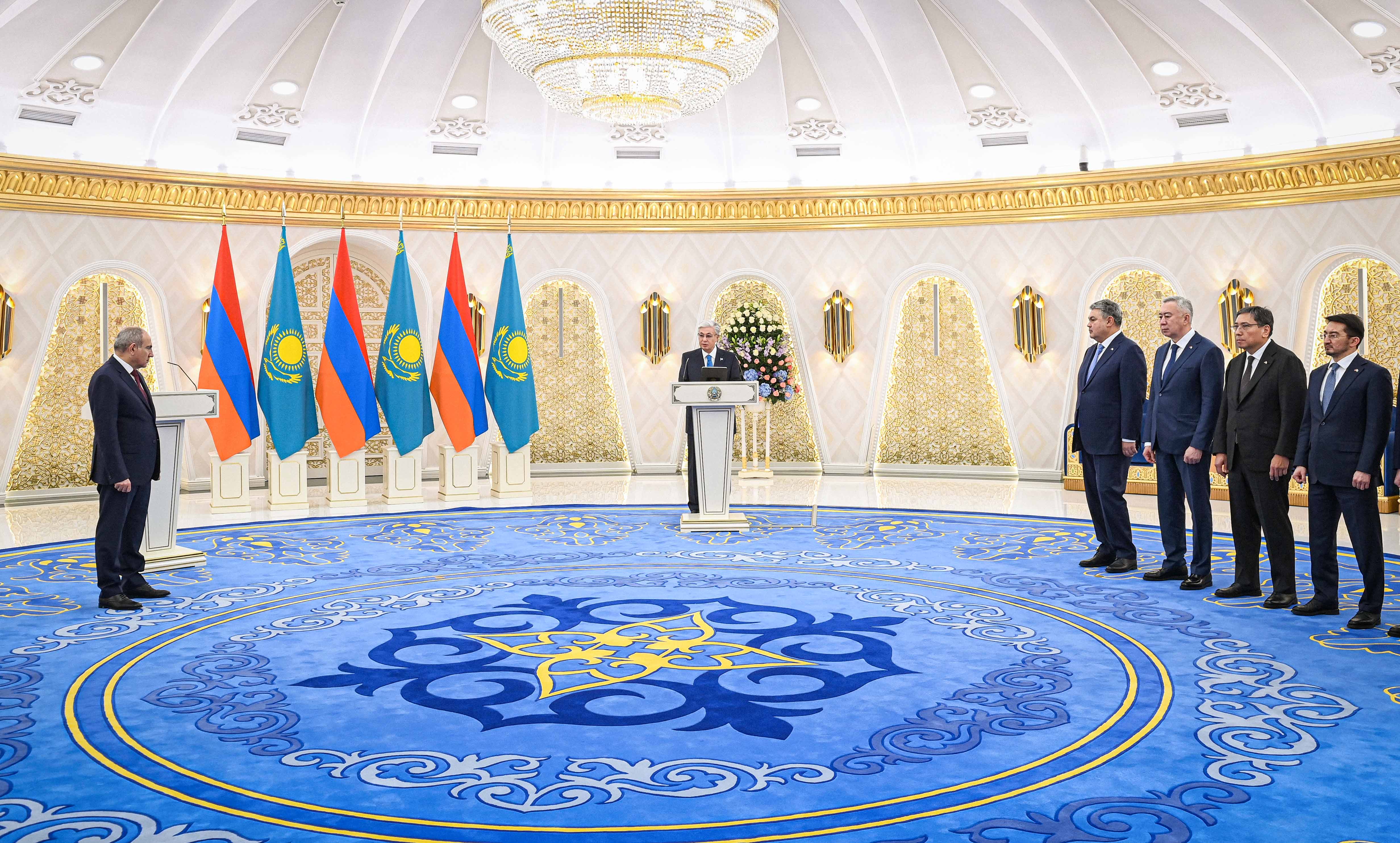 – Сіздің көреген басшылығыңыздың арқасында Армения орнықты даму жолына түсіп, халықаралық аренадағы позициясын нығайтты. Сондай-ақ ішкі және сыртқы саясатта парасатты, жауапты ұстанымымен үлгі көрсетіп отыр. Сіз өте күрделі геосаяси ахуалда қалыптан тыс әрі батыл шешім қабылдадыңыз. Түптің түбінде бұл армян халқына пайдасын тигізетін өте құнды шешім болды. Достас, бауырлас Армения бейбітшілік, орнықты даму жолын таңдағаны анық. Бұл істе Сіздің тарихи еңбегіңіз зор. Вашингтонда қабылданған Армения мен Әзербайжан арасындағы бейбіт келісімді ілгерілетуде елеулі рөл атқарғаныңызды атап өткім келеді, – деді Қазақстан Президенті.