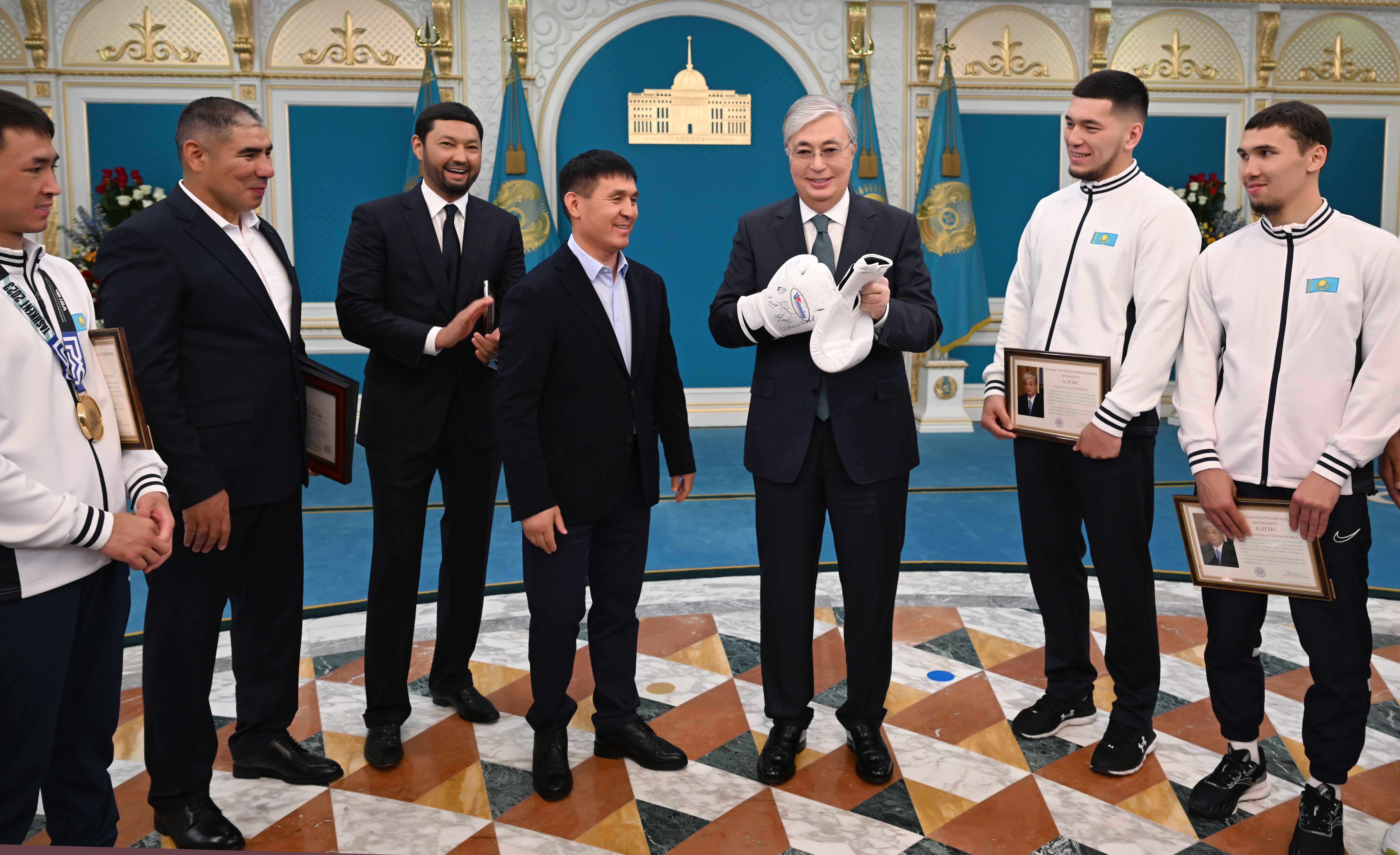 Президент Қасым-Жомарт Тоқаев бокстан Өзбекстанның Ташкент қаласында өткен әлем чемпионатының жеңімпаздары – Санжар Тәшкенбай, Махмұд Сабырхан, Асланбек Шымбергенов, Нұрбек Оралбай және күміс медаль иегері Дулат Бекбауовты, сондай-ақ бокстан Қазақстан ұлттық құрамасының мүшелері мен бапкерлерін қабылдады.
