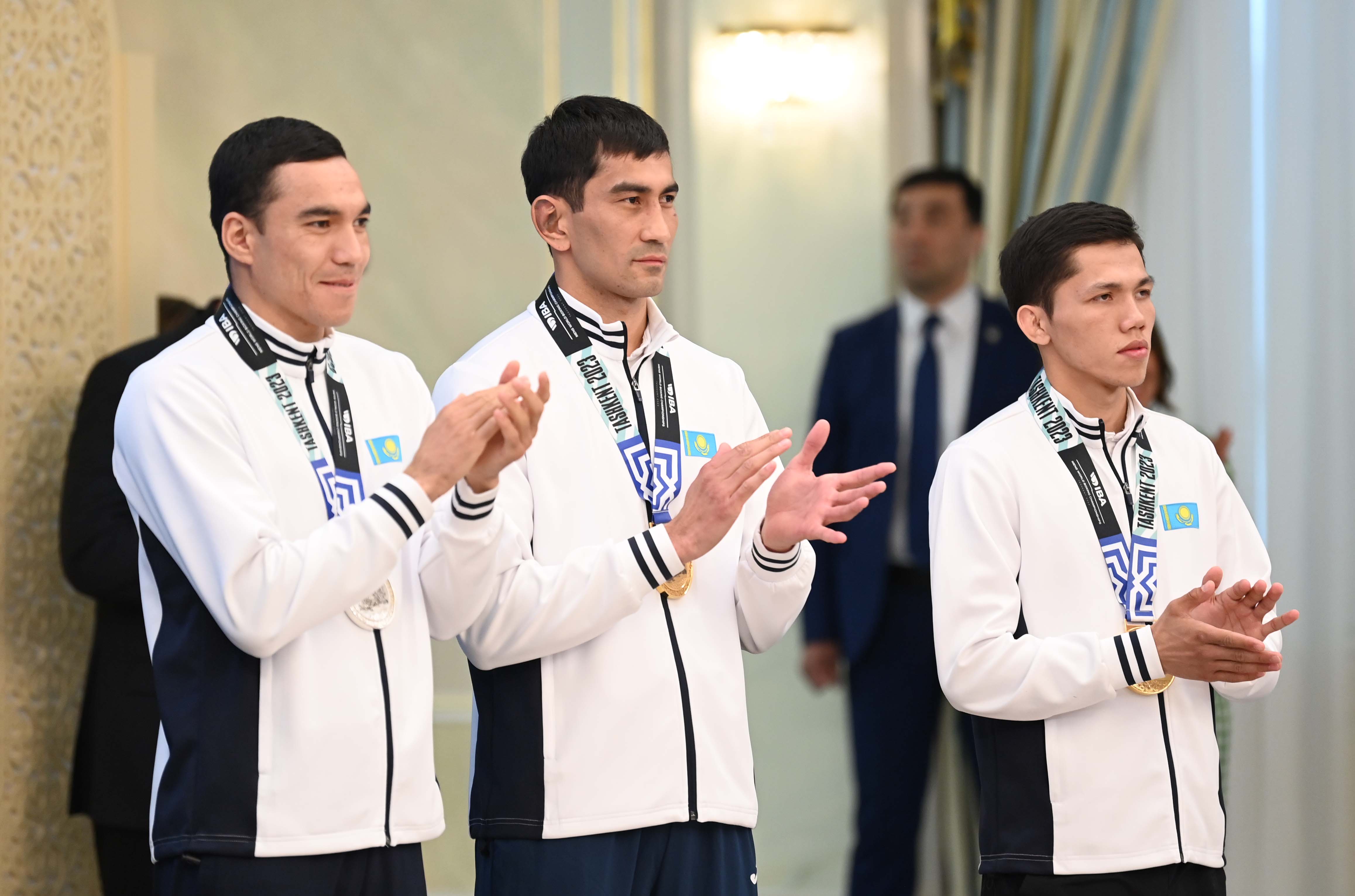– Әлемдік жарыста төрт алтын, бір күміс медаль алу – зор жетістік. Қазақ жігіттері әлем чемпионы атанып, еліміздің мерейін өсірді. Осы мүмкіндікті пайдалана отырып, барлық жанкүйерлерге алғысымды білдіремін. Олардың дауысы сонау Ташкент төрінен анық естілді. Дәл осындай шынайы қолдау спортшыларымызға айрықша күш бергені сөзсіз. Спорт додасын бүкіл халқымыз көрді, сіздерге тілекші болды деп айтсақ, артық болмайды. Мен де финалдағы жекпе-жектерді түгел көрдім. Жігіттеріміз ел намысын қорғау үшін бар күшін салып айқасты. Желбіреген көк туымызбен және әнұранымызбен бірге халқымыздың рухы көтерілді. Ұлттың асқақ рухы және отаншылдық қасиеті дегеніміз – осы! Өйткені спортшыларымыздың әрбір жеңісі елді қанаттандырады. Шын мәнінде, өткен жексенбі қазақ боксының асығы алшысынан түскен күн болды. Мұхиттың ар жағында Жәнібек Әлімханұлы чемпиондық атағын абыроймен қорғады. Оның жеңісті жолы Ташкентте жалғасты. Осының бәрі барша қазақтың мерейін тасытты, – деді Президент.
