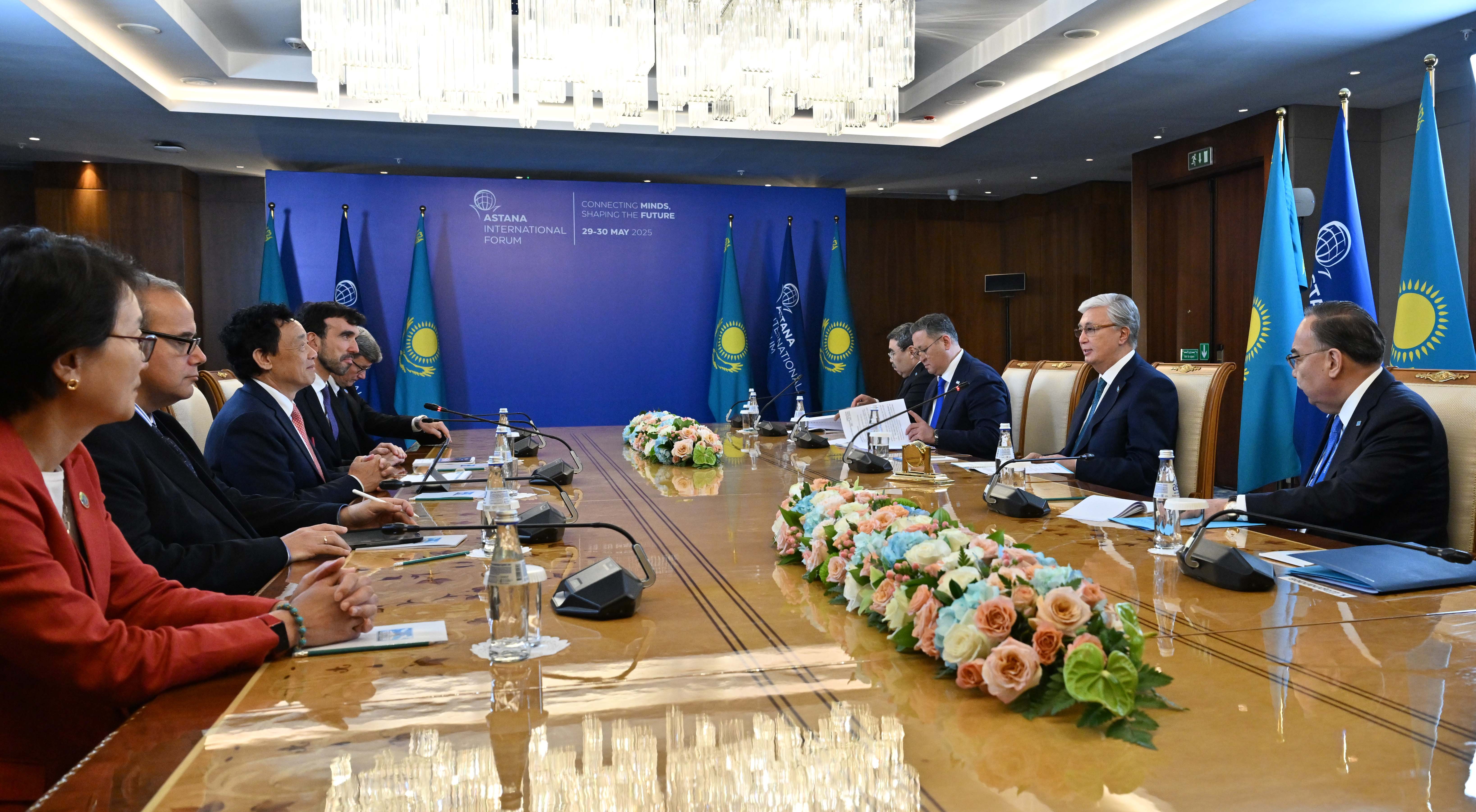 Қасым-Жомарт Тоқаев Астана халықаралық форумына қатысу үшін елімізге келген БҰҰ Азық-түлік және ауыл шаруашылығы ұйымының (FAO) бас директоры Цюй Дунъюймен кездесу өткізді. Президент жаһандық азық-түлік қауіпсіздігі мен ауыл шаруашылығының орнықты дамуын қамтамасыз етуде Қазақстанның Ұйыммен ынтымақтастығы маңызды екенін атап өтті. Еліміздің Ауыл шаруашылығы министрлігі FAO бюросымен тығыз серіктестік орнатып, 27 жобаны табысты жүзеге асырды. Қазіргі уақытта қуаңшылық пен ауылшаруашылық алқаптарының сортаңдануы жағдайында табиғи ресурстарды басқару, орнықты аквамәдени даму, топырақ құнарын сақтау секілді салаларда тағы 14 жоба іске асырылып жатыр. Цюй Дунъюй Қазақстанның жаһандық азық-түлік қауіпсіздігін қамтамасыз ету және гуманитарлық көмек көрсету ісінде айтарлықтай рөл атқаратынын айтты. Әңгімелесу барысында ұлттық алма бренді саналатын Алматы апортына ерекше назар аударылды. Қазақстан ресми түрде апорттың отаны болып мойындалды. Қасым-Жомарт Тоқаев пен Цюй Дунъюй өзара тиімді нәтижелерге қол жеткізу үшін серіктестікті одан әрі нығайтуға дайын екендерін растады.