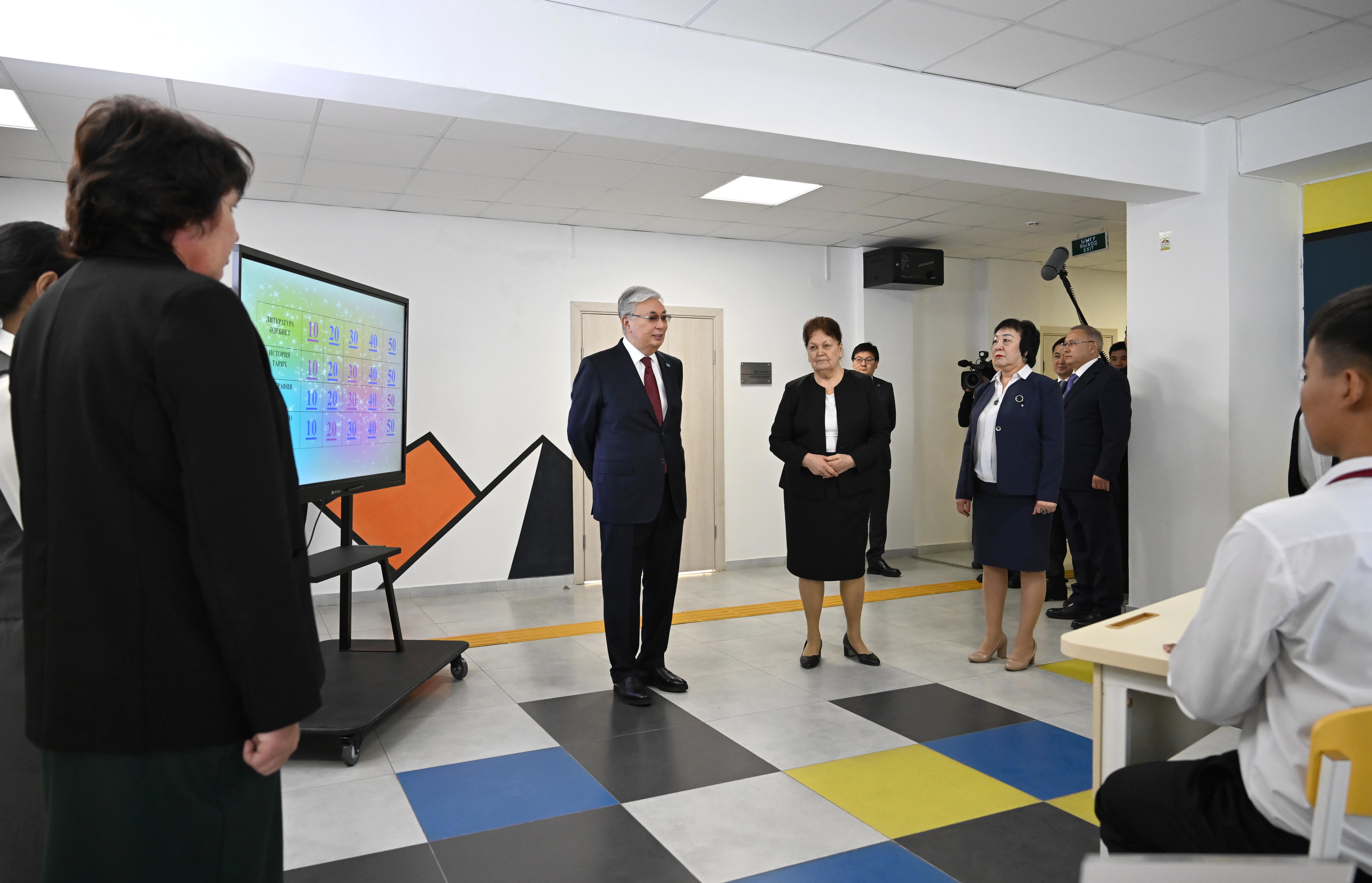 Президент ауыл балаларымен әңгімелесіп, мемлекет тарапынан өскелең ұрпақтың алаңсыз білім алуына, спортпен айналысуына қолайлы жағдай жасалатынын жеткізді.