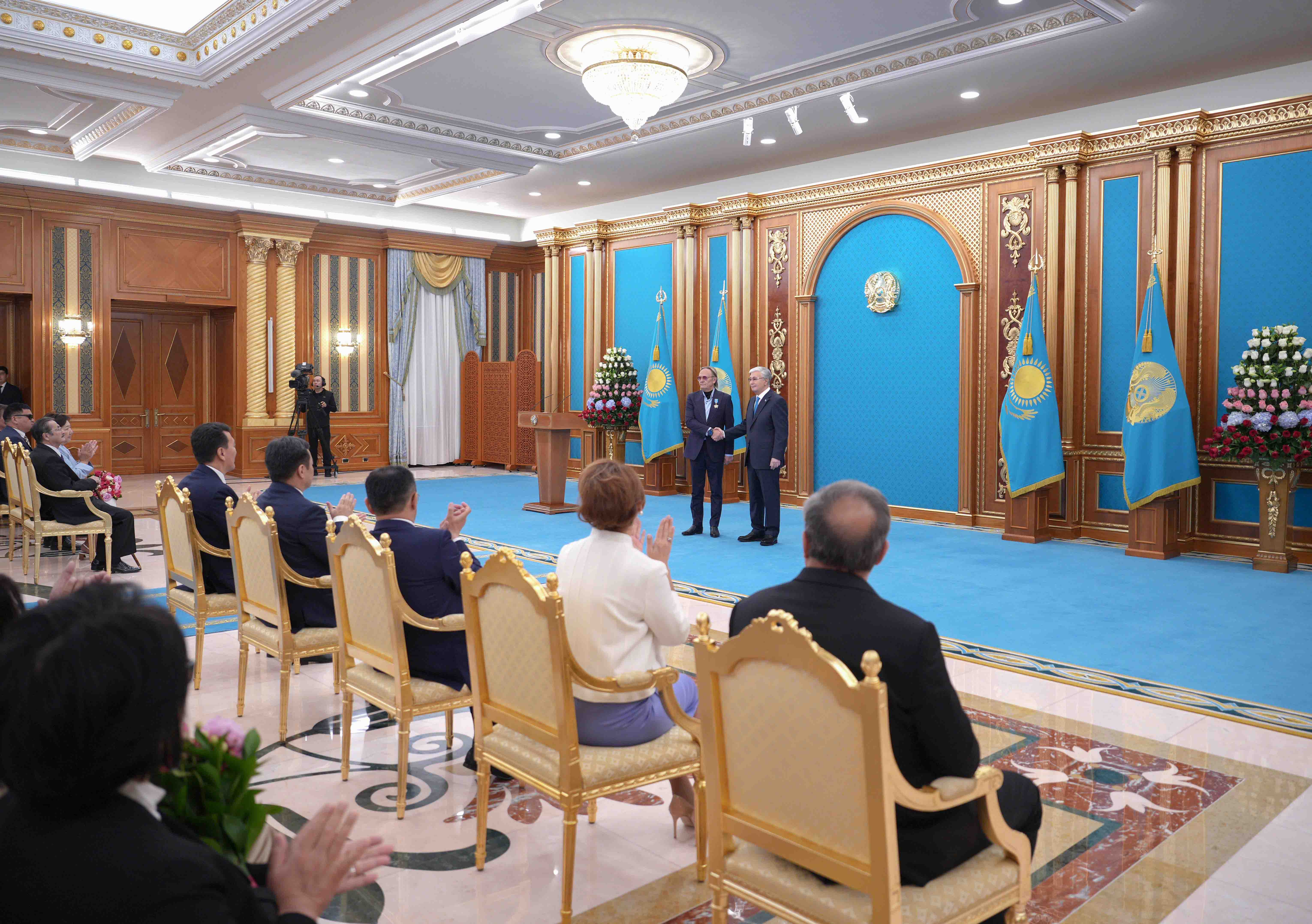 – Бүгін ұлттық өнердің майталманы Қайрат Байбосыновқа «Қазақстанның Еңбек Ері» атағы беріледі. Халқымыздың жан-дүниесін айшықтай көрсететін халық өнері әрдайым төрде болуы керек. Бұл марапат – әйгілі әншінің өлшеусіз еңбегі мен ұлттық өнерімізге деген ерекше құрметтің белгісі, – деді Қасым-Жомарт Тоқаев.