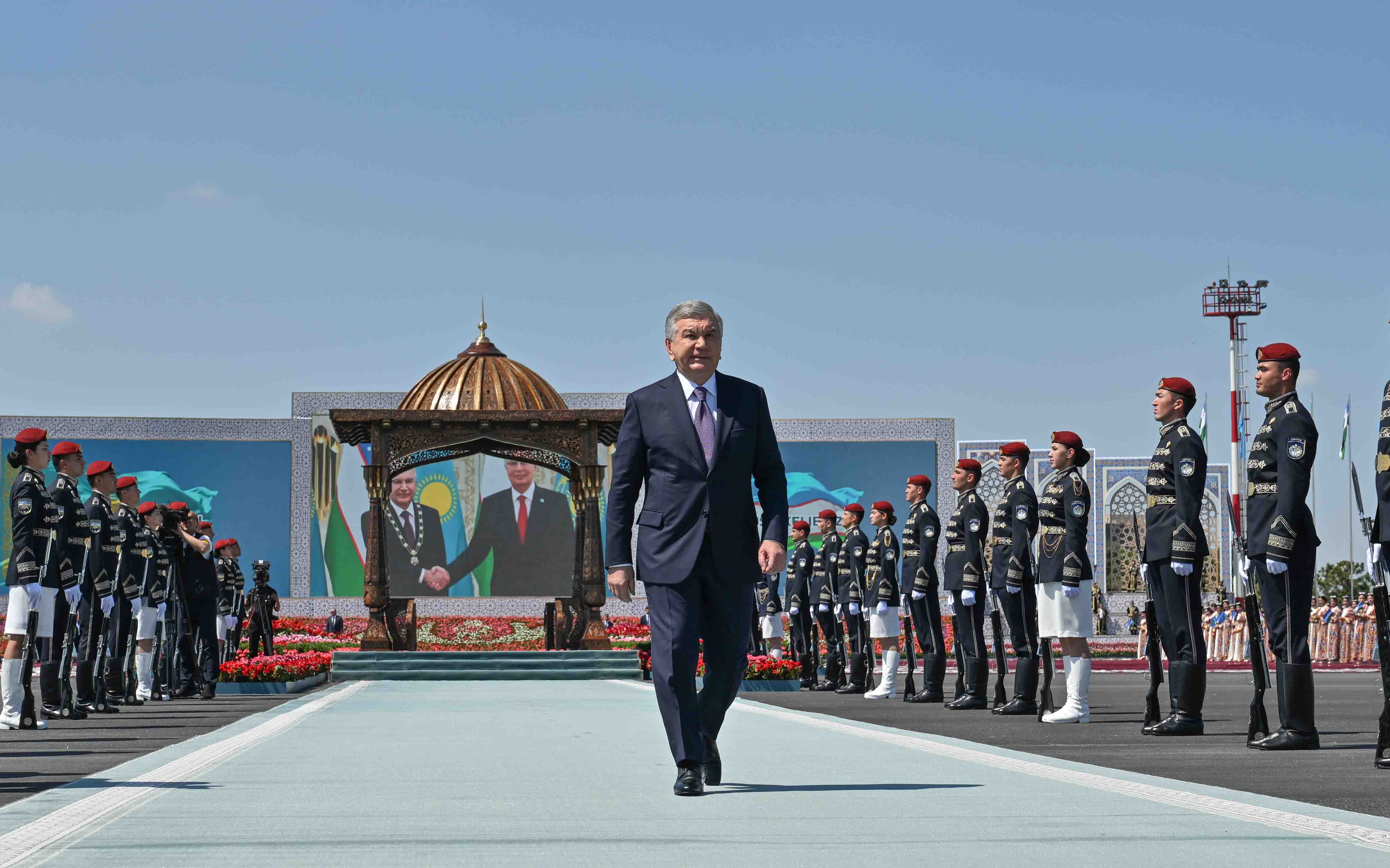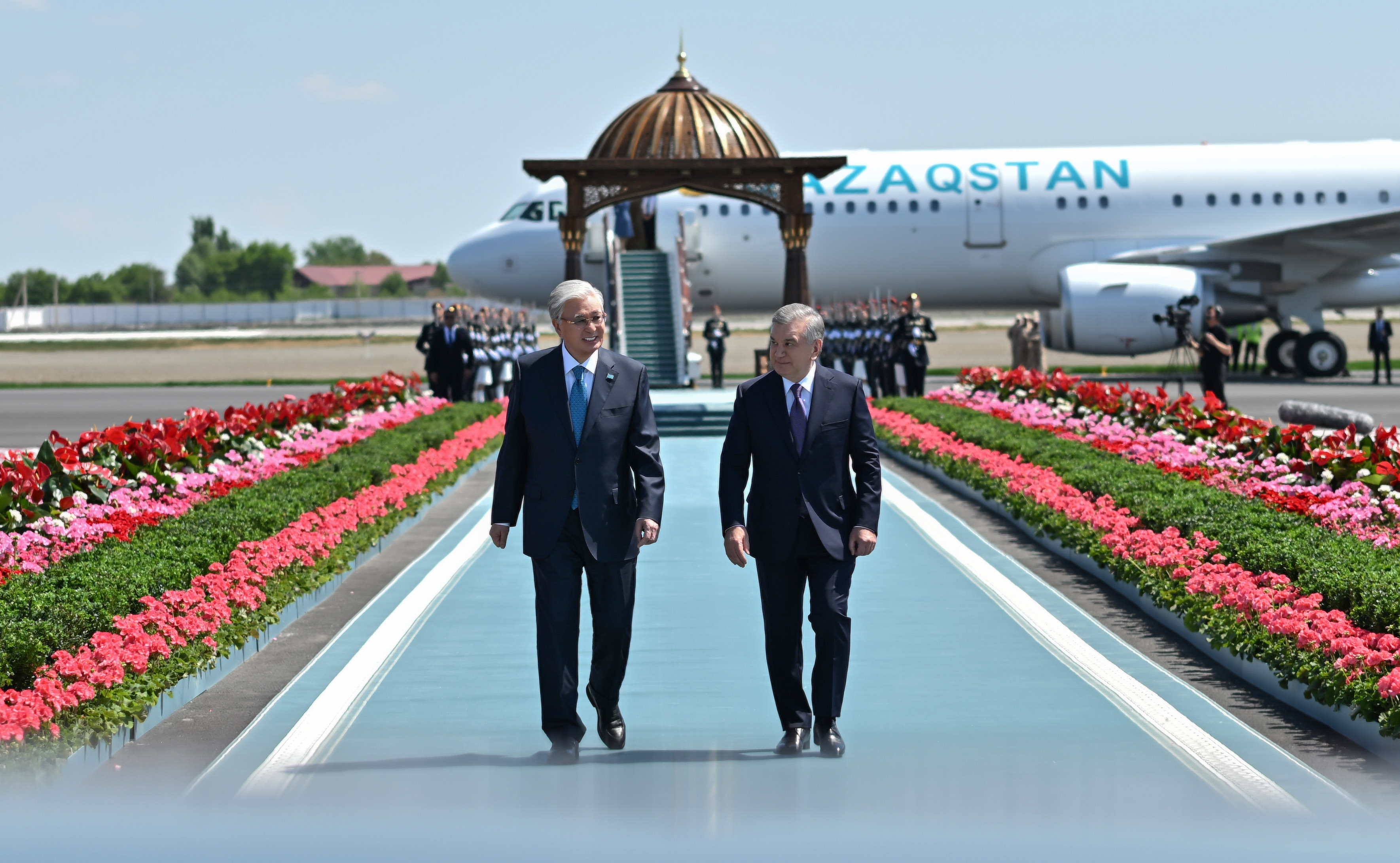 Бұхара қаласының әуежайында мәртебелі мейманды Өзбекстан Президенті Шавкат Мирзиёев қарсы алды. Салтанатты қарсы алу рәсімінде Қазақстан Президентінің құрметіне ұлттық ән мен би орындалды. Бүгін мемлекеттер басшылары бейресми кездесу өткізіп, шаһардағы бірқатар тарихи және өнеркәсіп нысанын аралайды.