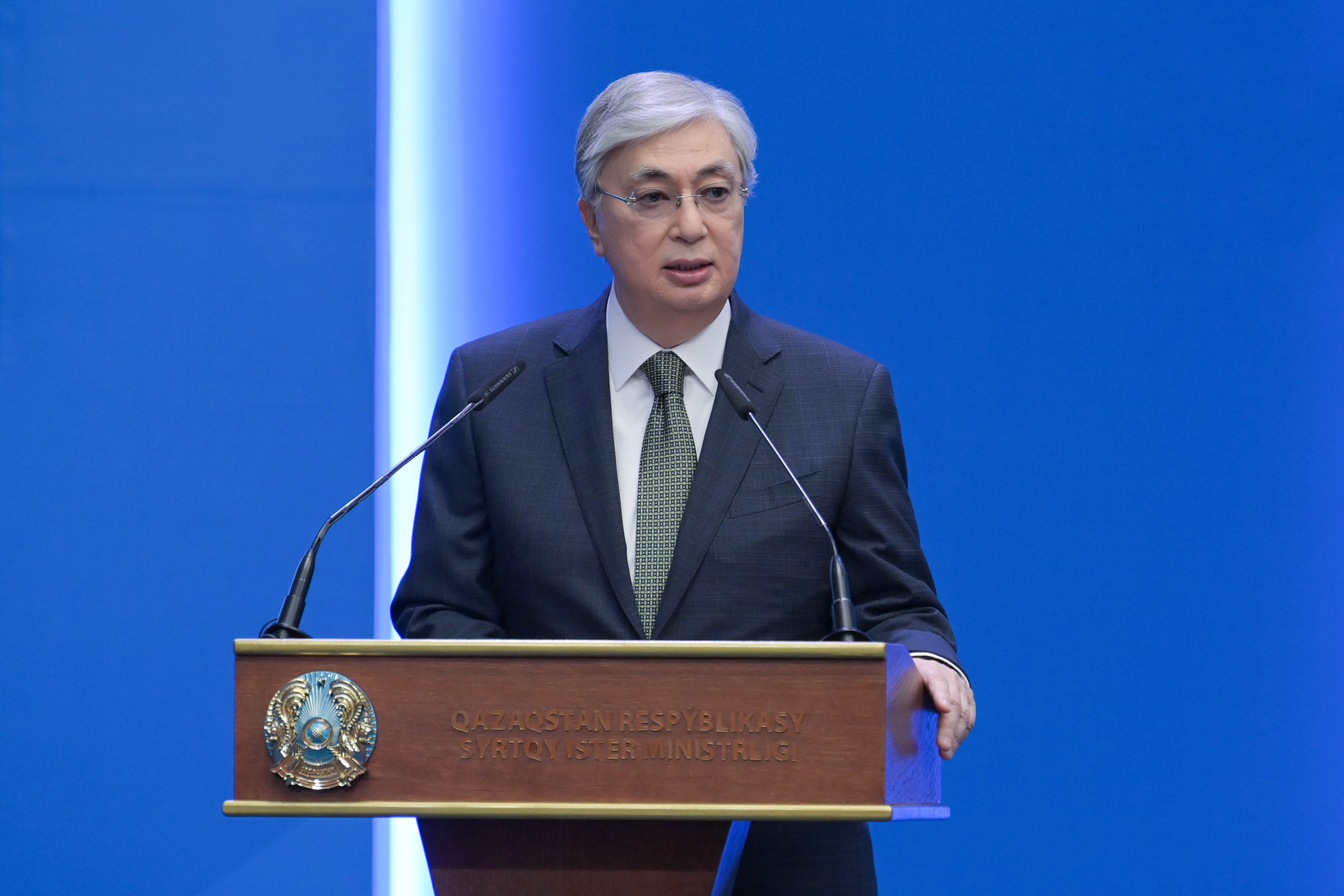 Қазақстан Президенті бұл басқосу Тәуелсіздігіміздің 30 жылдық мерейлі белесі қарсаңында өтіп жатқанын, осы тарихи межеге толағай табыспен жетіп отырғанымызды атап өтті. Қасым-Жомарт Тоқаевтың айтуынша, Қазақстан аймақтық және жаһандық үдерістерге белсене қатысатын беделді мемлекетке айналды. Мемлекет басшысы сыртқы саясатымыздың негізін Елбасы Нұрсұлтан Әбішұлы Назарбаевтың қалағанын және оның тікелей басшылығымен кәсіби дипломатиялық қызмет құрылып, ауқымды сыртқы саяси міндеттер шешімін тапқанына тоқталды.