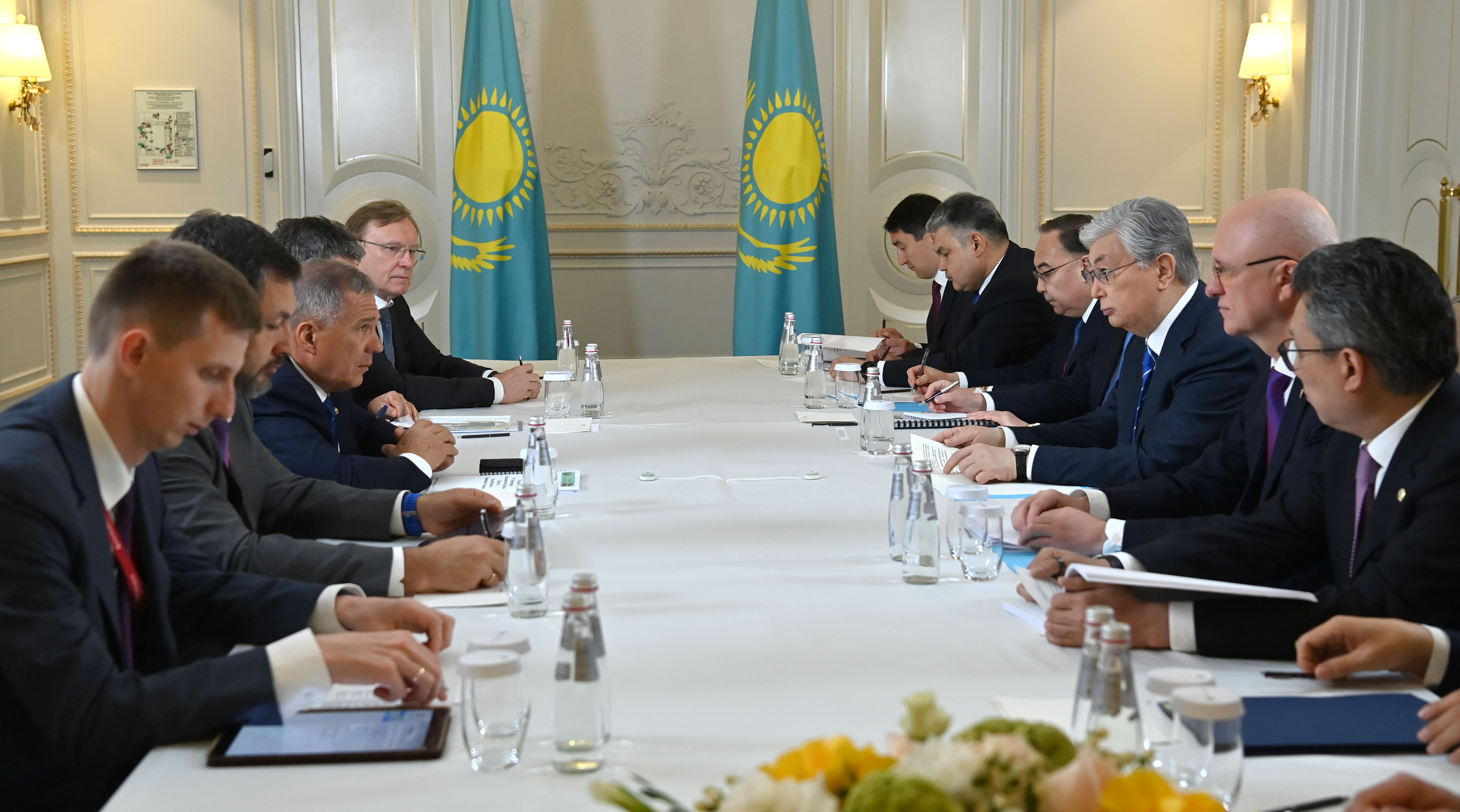 Өз кезегінде Рустам Минниханов Петербург халықаралық экономикалық форумы аясында кездесуге мүмкіндік туғызғанына ризашылығын білдіріп, татар компанияларының қазақстандық серіктестерімен ықпалдастық орнатуына қолдау көрсетіп жатқаны үшін Қасым-Жомарт Тоқаевқа алғыс айтты.