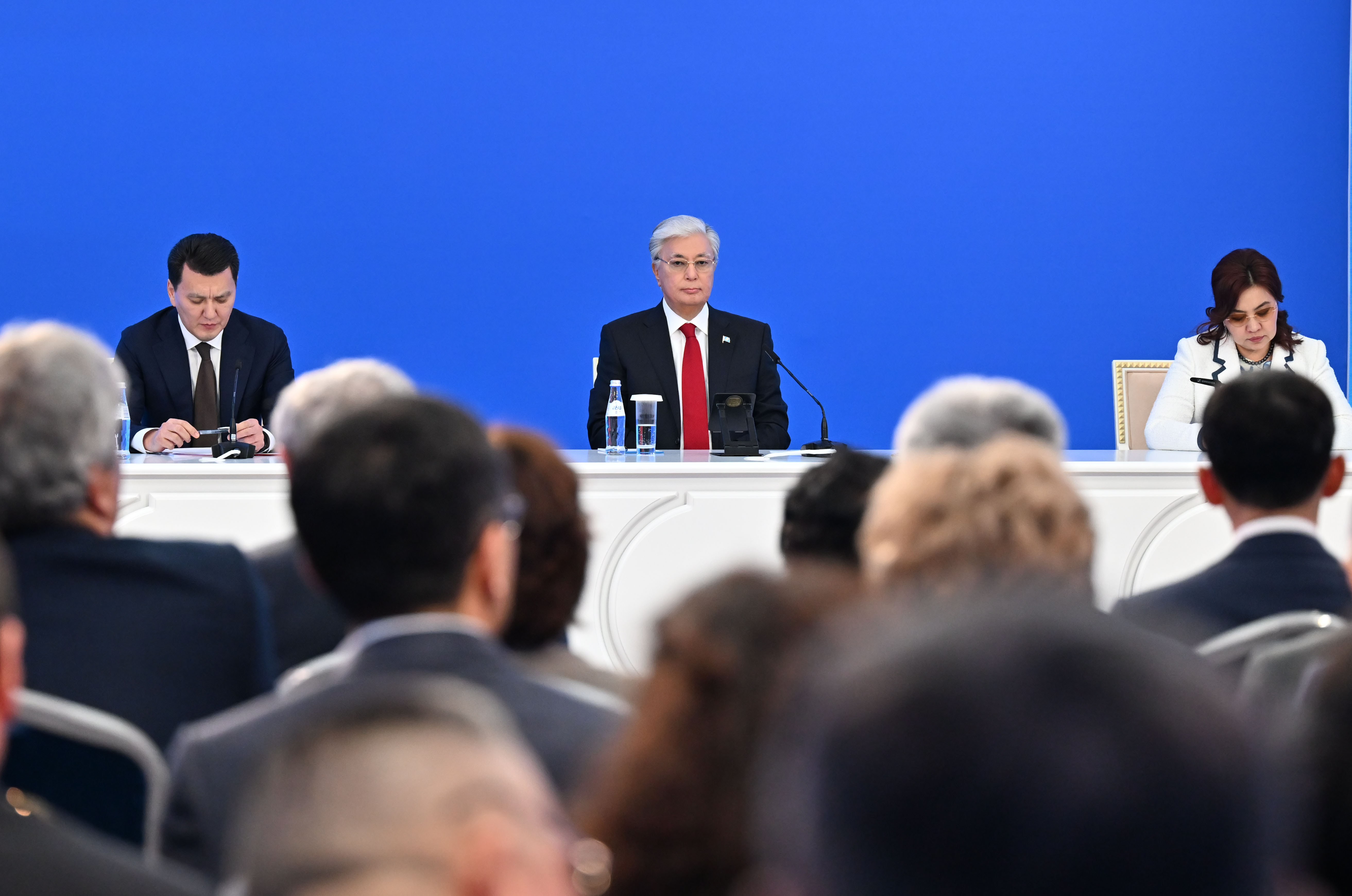 Қасым-Жомарт Тоқаев сөзін қорытындылай келе, жаһанда жүріп жатқан үдерістерге шолу жасап, Қазақстанды кез келген сын-қатерге төтеп бере алатын қуатты мемлекетке айналдырудың қамы жөнінде ой толғады.