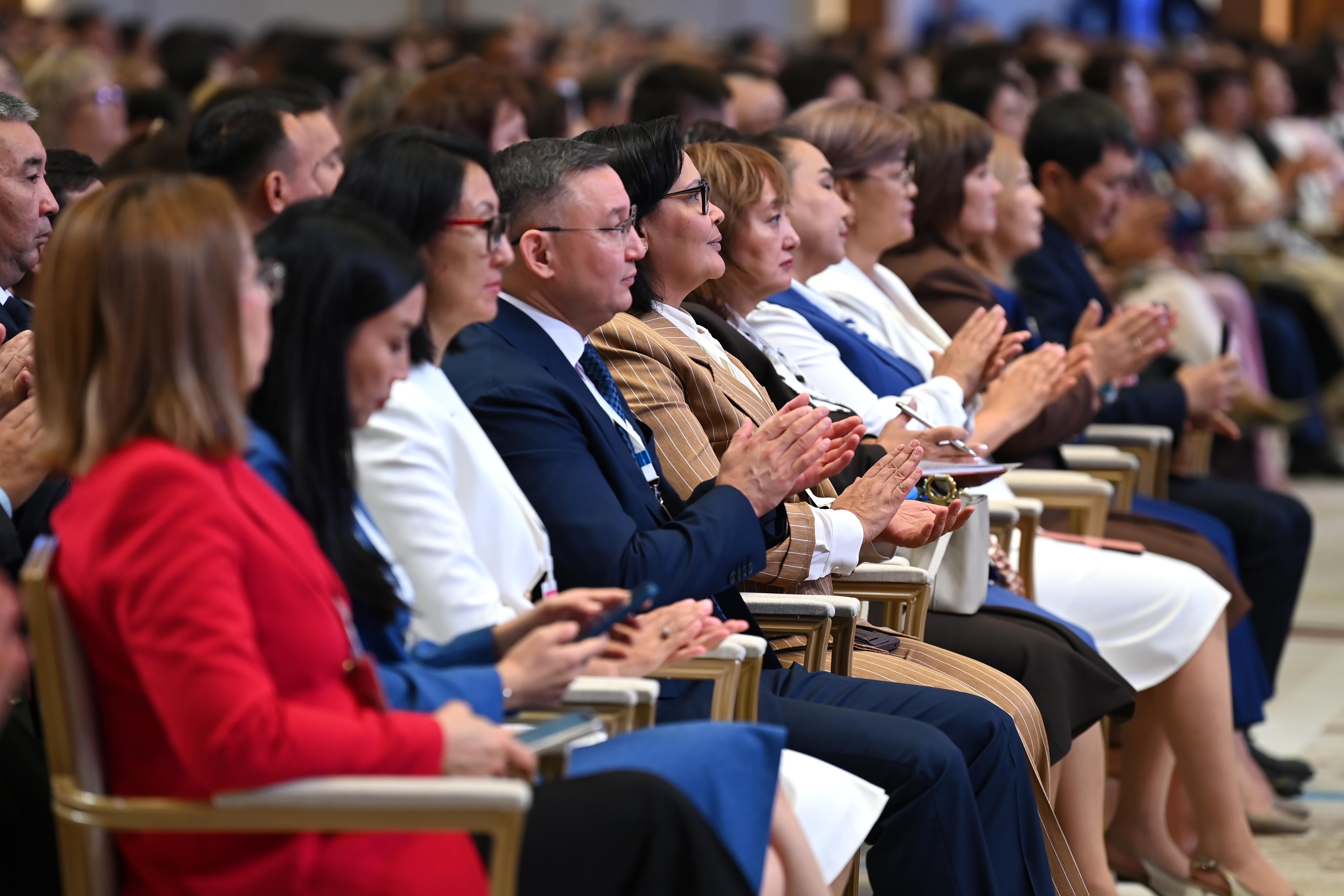 Жалпы, білім беру саласын мүлдем жаңа сапалы деңгейге шығару үшін цифрландыру мен жасанды интеллектінің мүмкіндіктерін толық пайдаланған жөн. Сіздер тұтас елімізді технологиялық тұрғыдан жаңғырту ісінде алдыңғы шептен табылып, біздің қоғамды нағыз прогрессивті әрі дамыған ұлтқа айналдыруға ерен үлес қосасыздар деп сенемін.