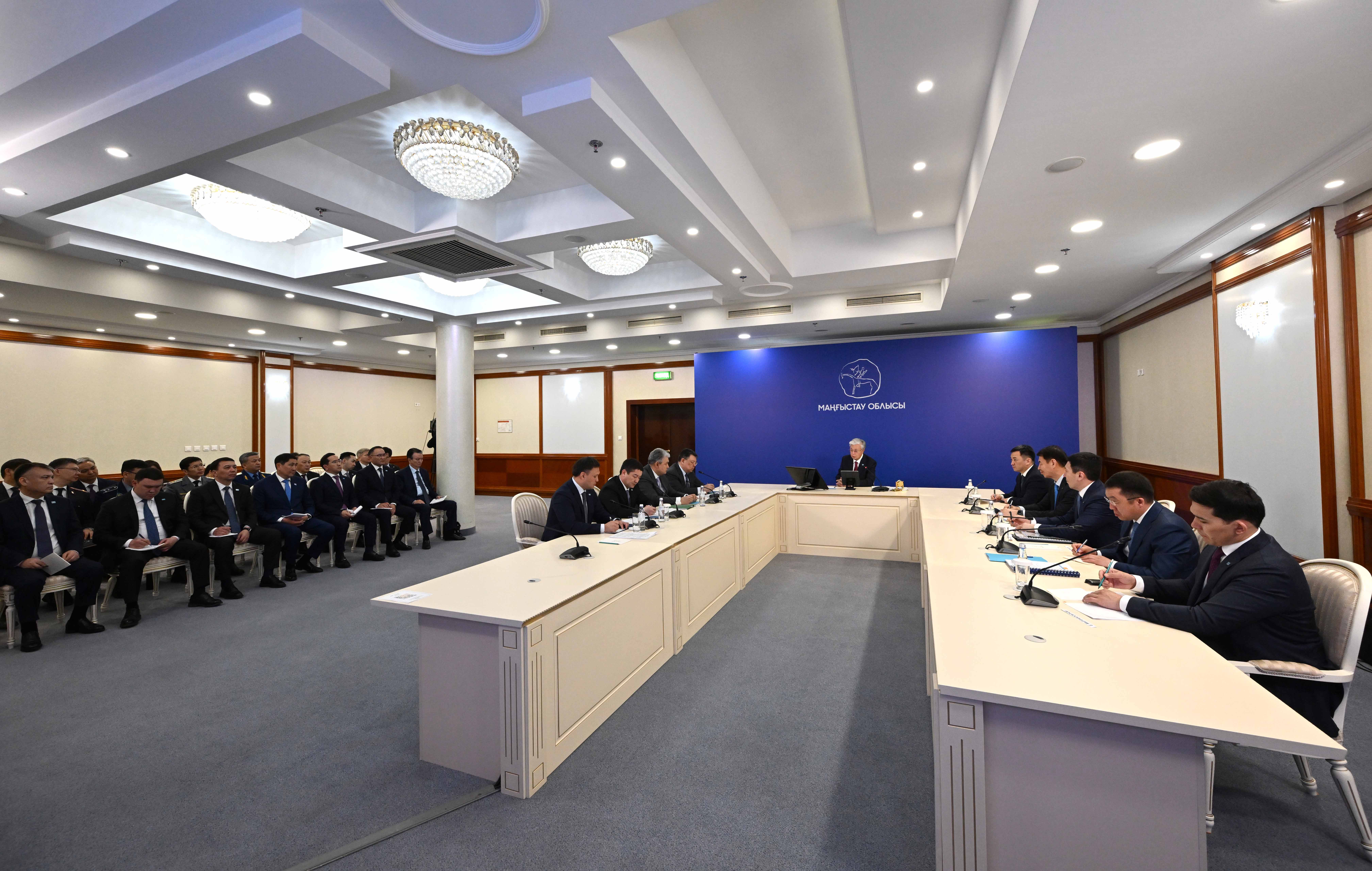Мен бүгін Ақтауға жұмыс сапарымен арнайы келіп отырмын. Басты мақсат – облыстың ахуалымен танысу, аймақтағы өзекті мәселелерді талқылау. Еліміз үшін Маңғыстаудың орны бөлек. Бұл – стратегиялық маңызы бар аймақ. Маңғыстауды Қазақстанның батыс қақпасы деуге болады. Мен облыстың тыныс-тіршілігін ерекше назарда ұстаймын. Сондықтан бүгін аймақтың әлеуметтік-экономикалық даму барысын егжей-тегжейлі талқылауымыз қажет.