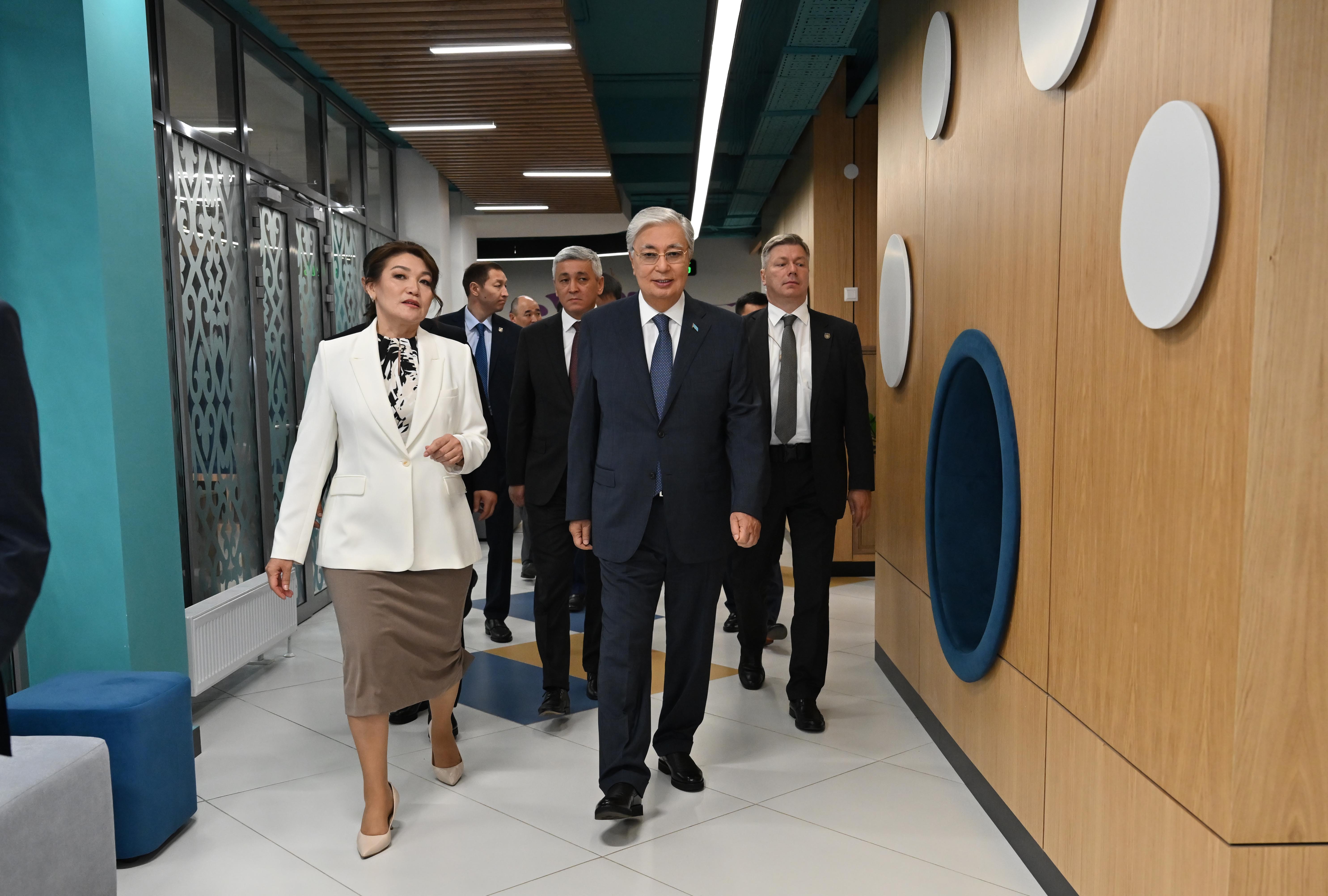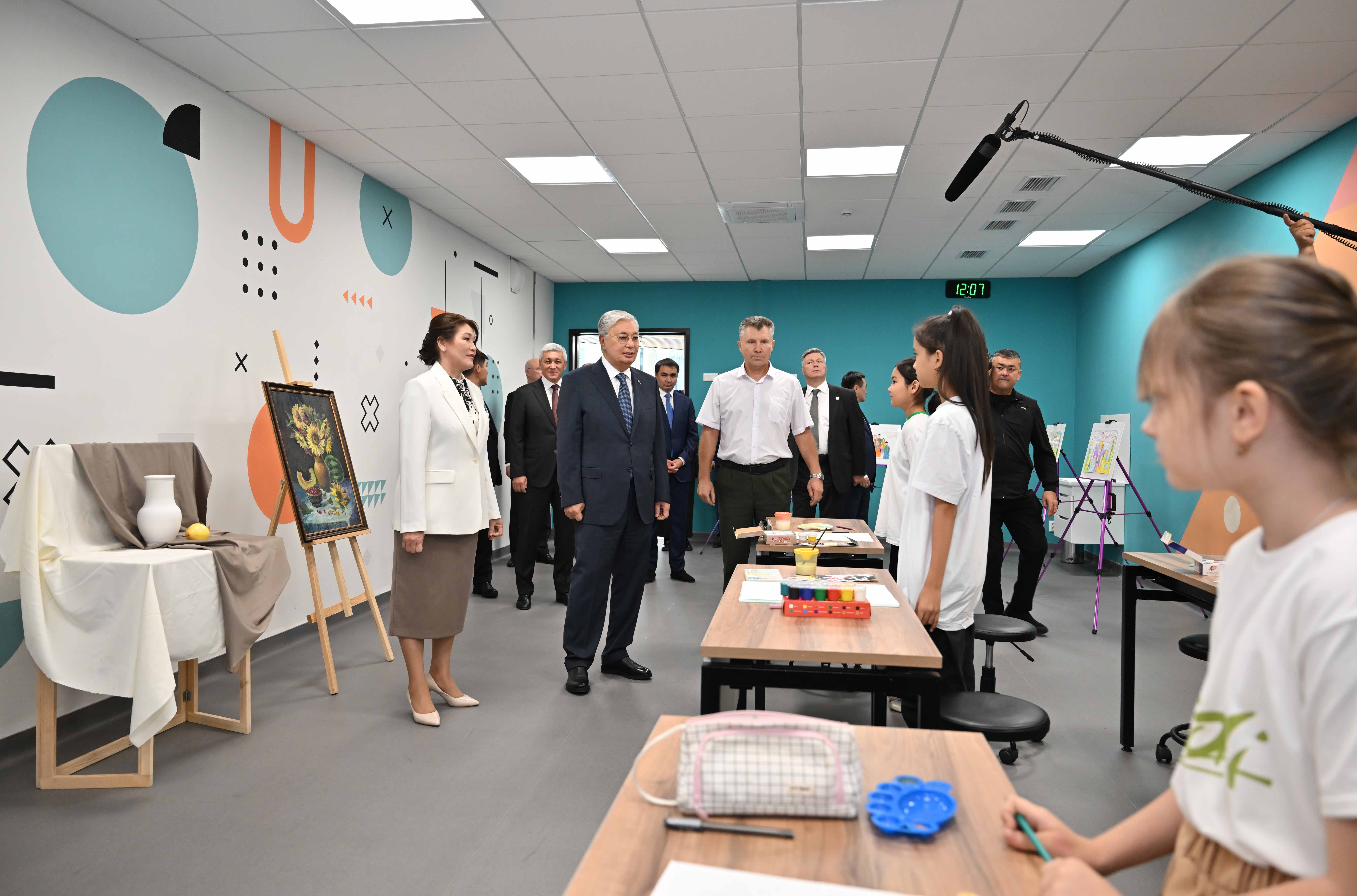 Қасым-Жомарт Тоқаев Қарағанды қаласының Пришахтинск ықшамауданында таяуда ғана ашылған «Кәусар» оқушылар сарайының қызметімен танысты.