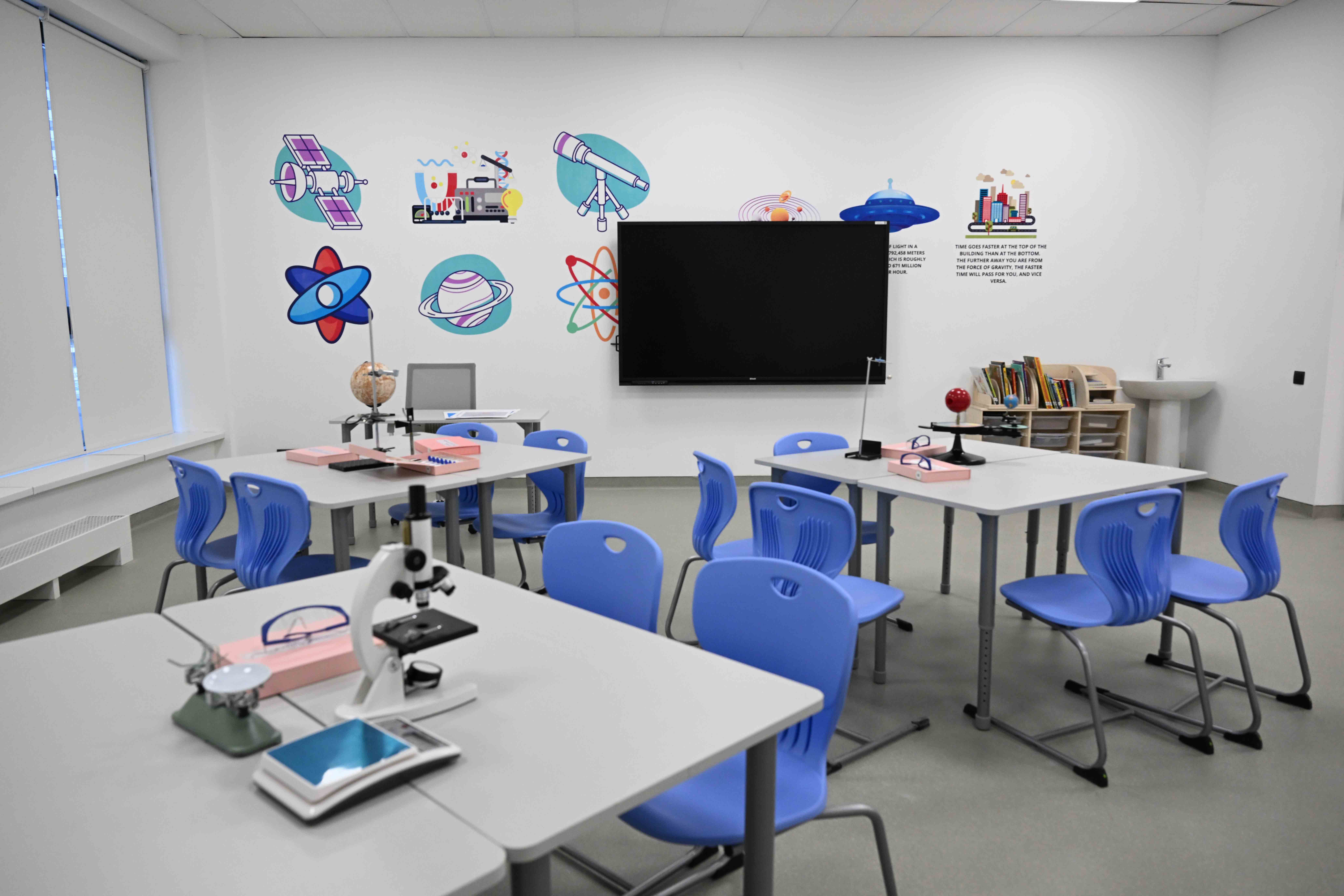 Оқу кабинеттері әрбір оқушының алаңсыз білім алуына және қарым-қабілетін ашуына қолайлы жағдай жасайтын заманауи технологиялармен жабдықталған. Сонымен қатар мектепте футбол стадионы, теннис корты, шағын футбол алаңы және бассейн секілді спорт инфрақұрылымы қарастырылған.