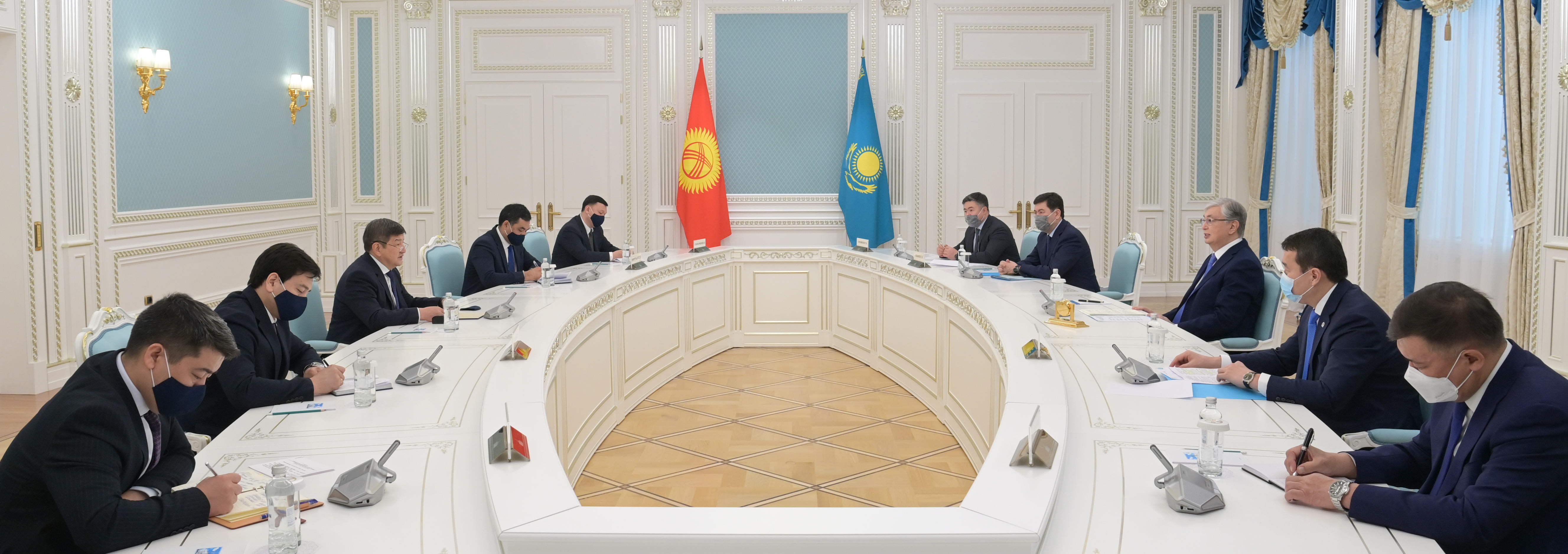 Ақылбек Жапаров өз кезегінде кездесуге мүмкіндік бергені үшін Қасым-Жомарт Тоқаевқа алғыс білдіріп, Қырғызстан Президентінің жүрекжарды сәлемін жеткізді. Сондай-ақ ол Мемлекет басшысы мен Қазақстан халқын Тәуелсіздіктің 30 жылдығымен құттықтады.