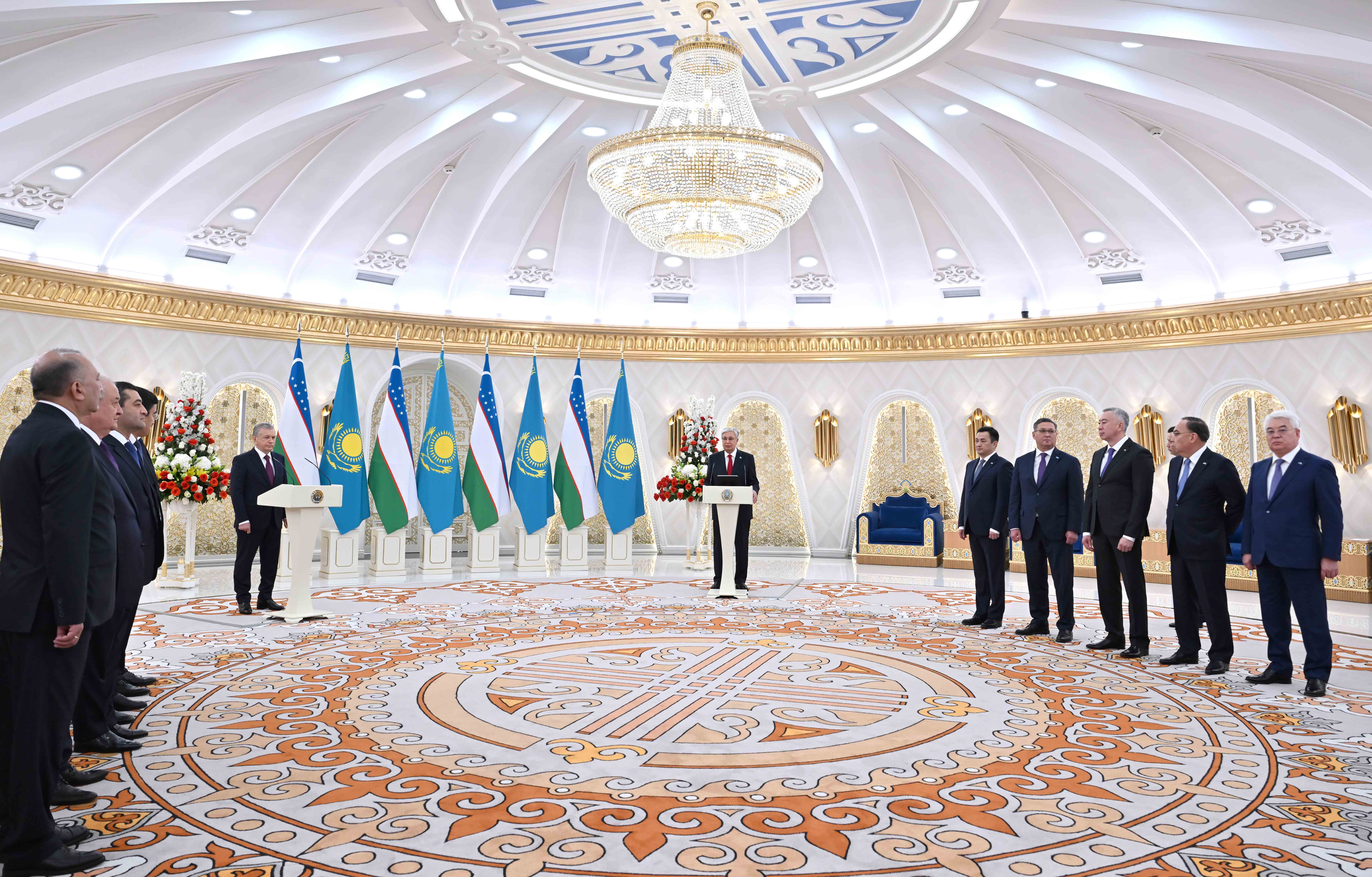 – Егемен ел ретінде даму  жылдарында екі мемлекет арасында жан-жақты серіктестік пен стратегиялық одақтастық жолға қойылды. Берік шарттық-құқықтық база қалыптасты. Шекараны толықтай шегендеп алдық. Өзара сенімді саяси диалогтың арқасында біз сауда-экономикалық және мәдени-гуманитарлық байланыстарды қарқынды түрде ілгерілетіп келеміз. Негізгі халықаралық құрылымдар аясында тығыз ықпалдастық орнаттық. Бір сөзбен айтқанда, қазіргі қазақ-өзбек қатынастары үлгі етуге тұрарлық әрі нағыз бауырластық деңгейде, – деді Президент.
