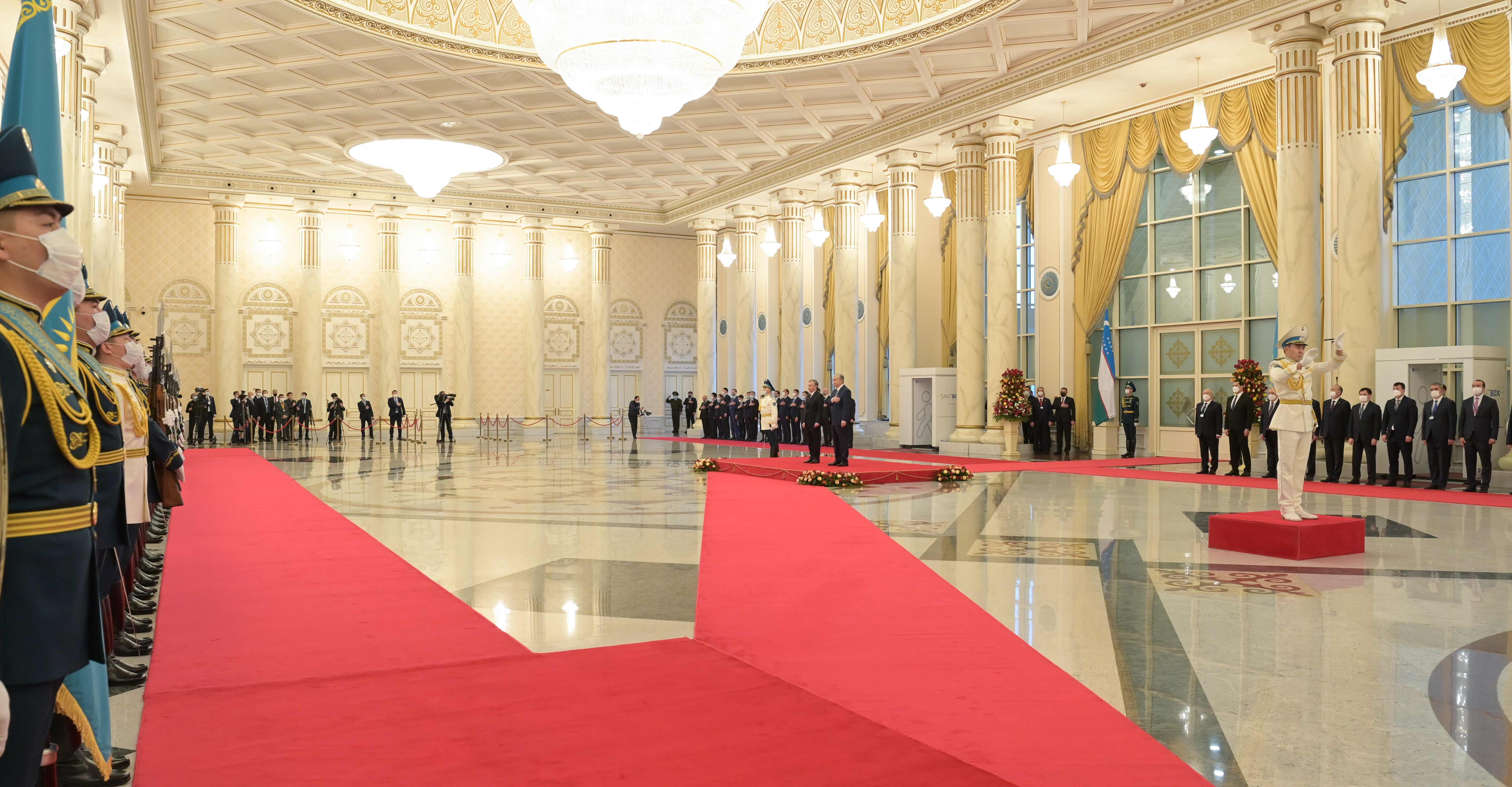 Ақорда резиденциясында Қазақстан астанасына мемлекеттік сапармен келген Өзбекстан Президенті Шавкат Мирзиёевті салтанатты қарсы алу рәсімі өтті. Құрмет қарауылы ротасының бастығы мемлекеттер басшыларына рапорт бергеннен кейін екі елдің әнұрандары орындалды. Бұдан кейін Қасым-Жомарт Тоқаев пен Шавкат Мирзиёев Шығыс залында шағын құрамда келіссөз өткізді.